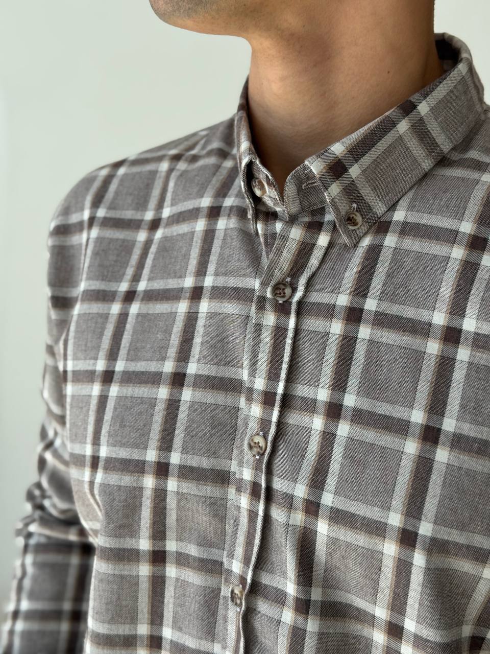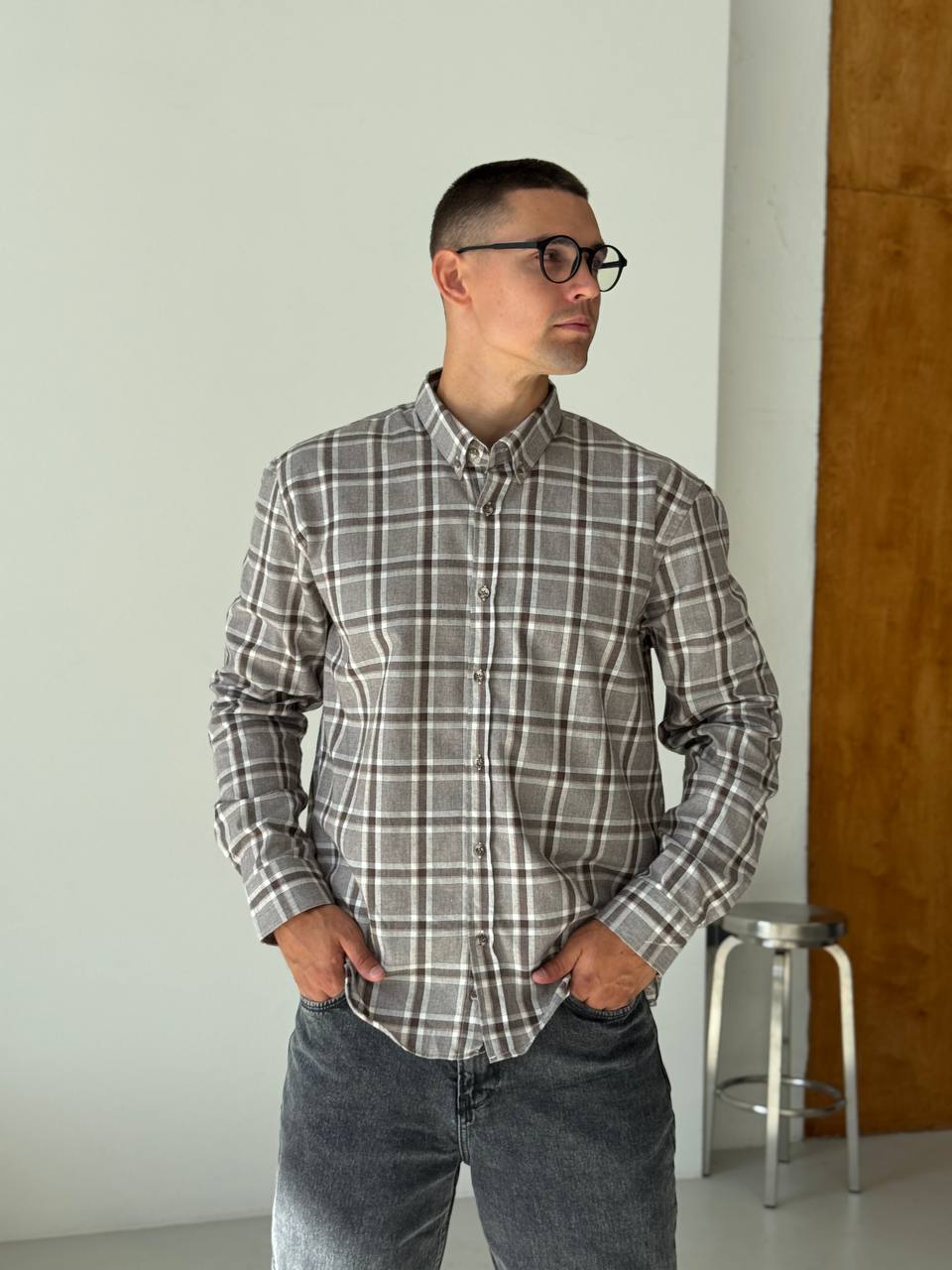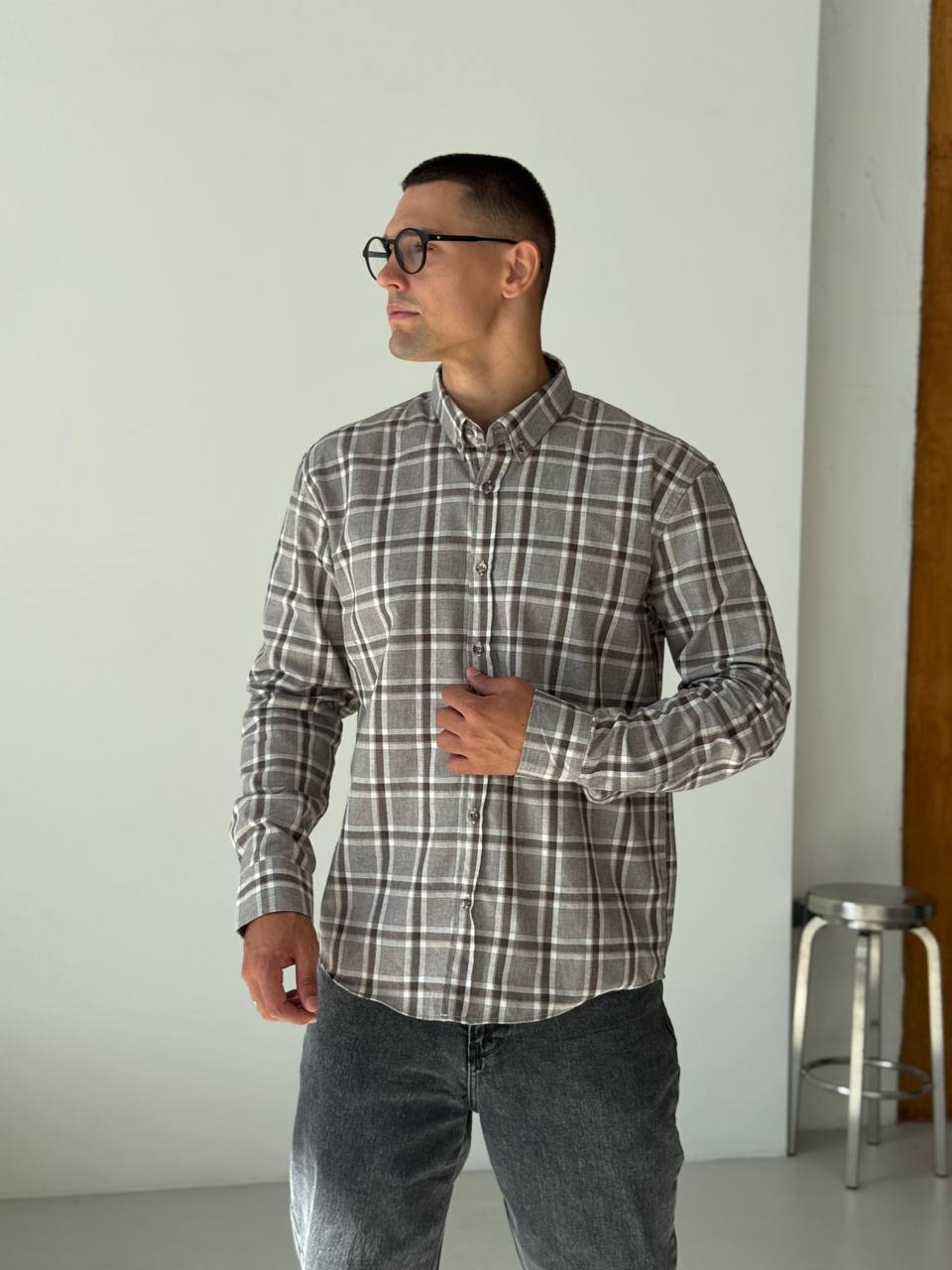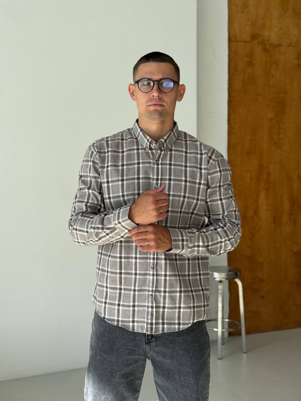 Чоловіча Бавовняна Картата Сіра Сорочка База