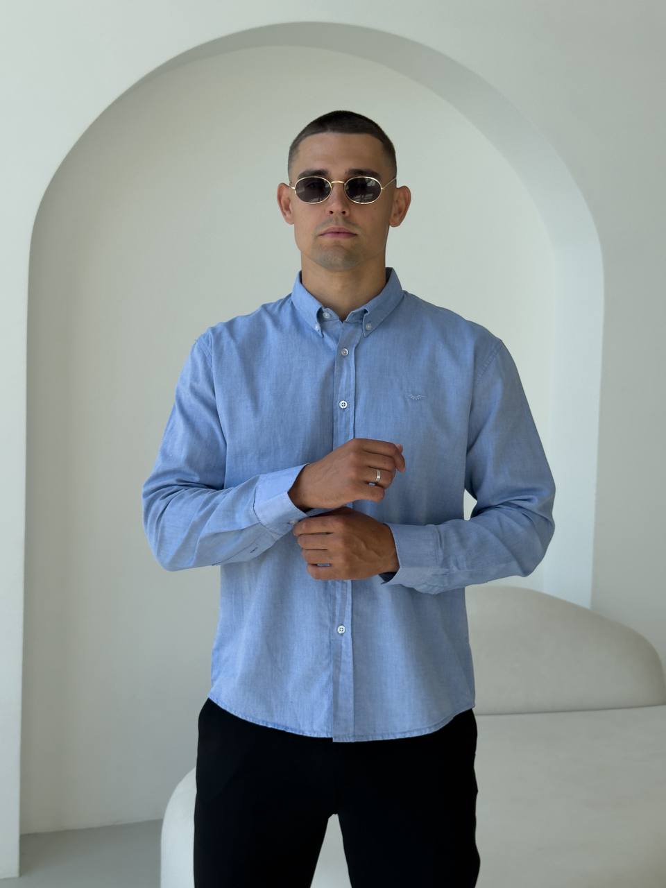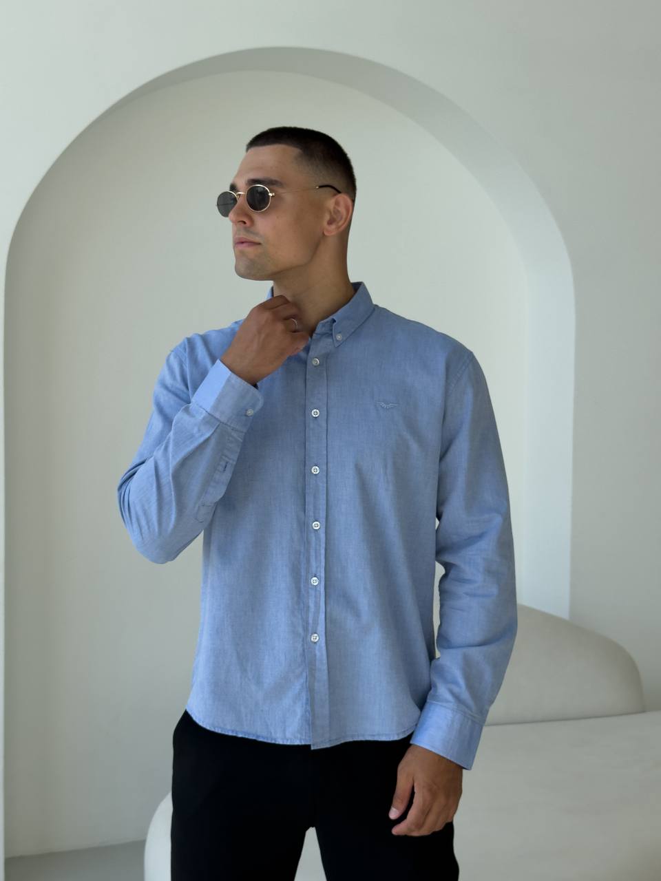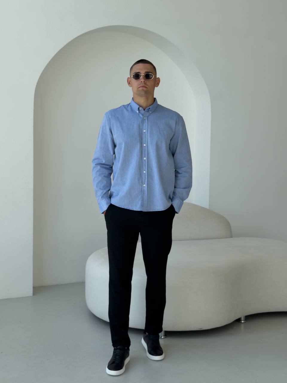 Чоловіча Базова Бавовняна Блакитна Сорочка Прямого Крою – Класична з Маленькою Вишивкою