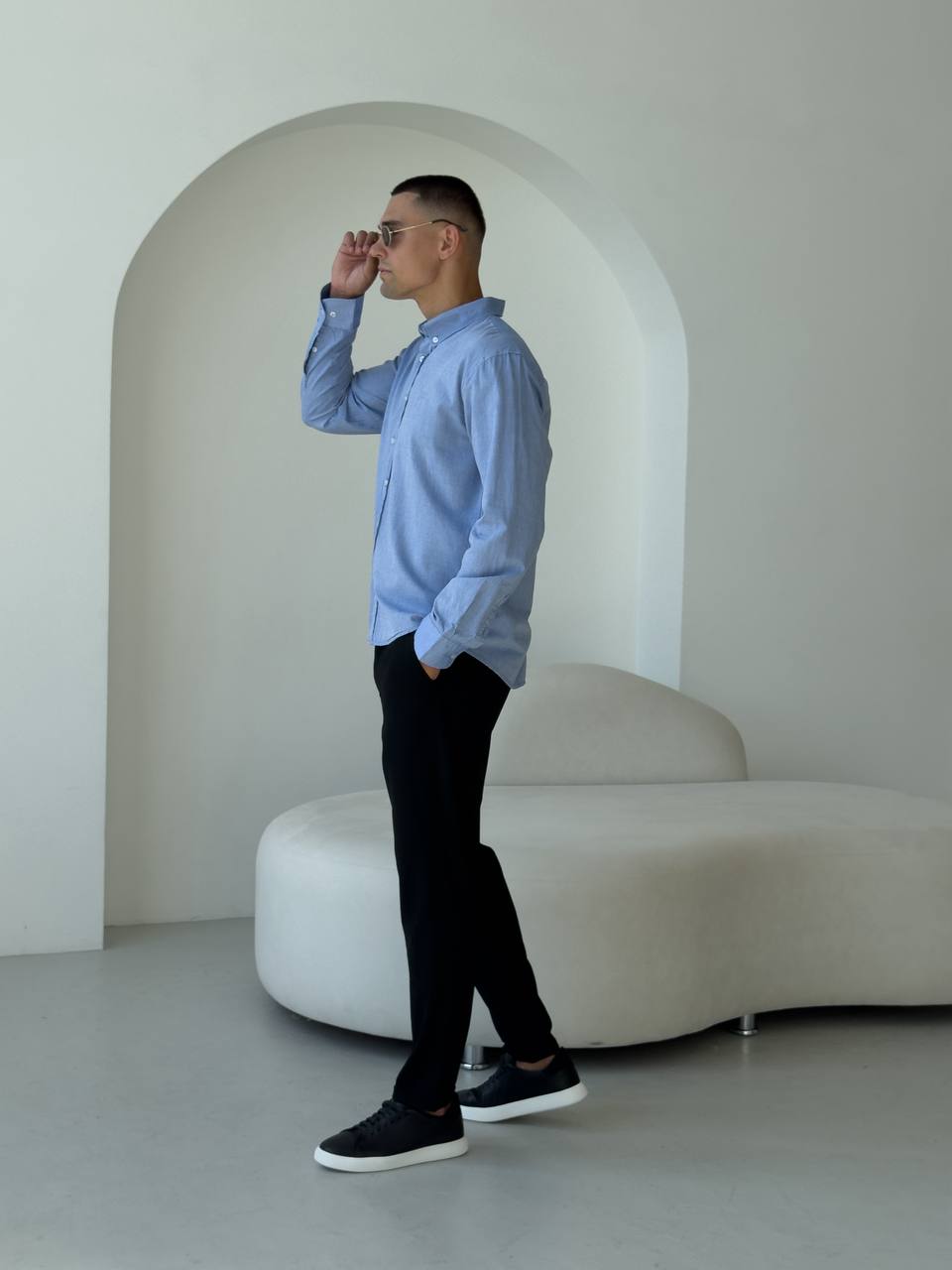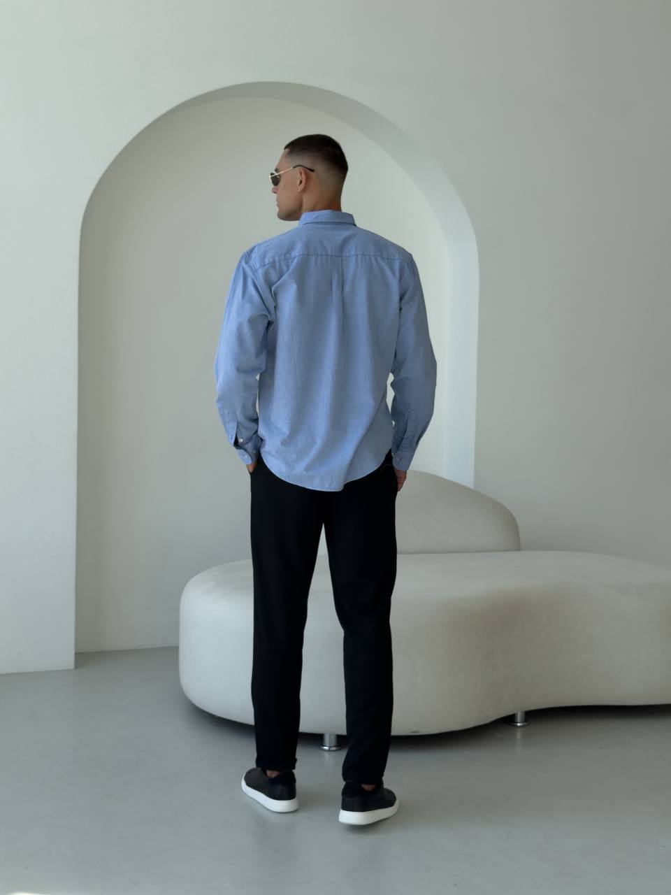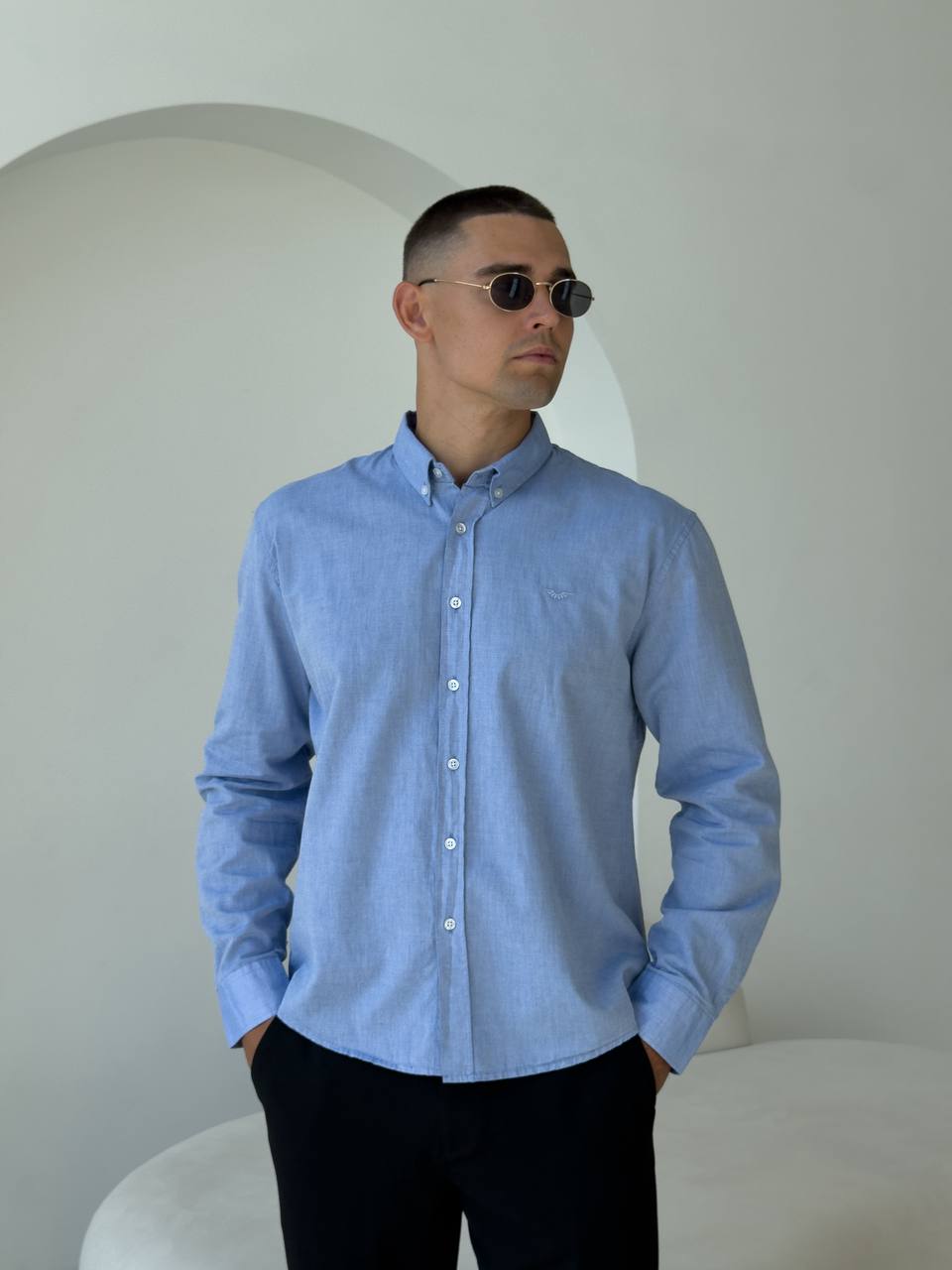 Чоловіча Базова Бавовняна Блакитна Сорочка Прямого Крою – Класична з Маленькою Вишивкою