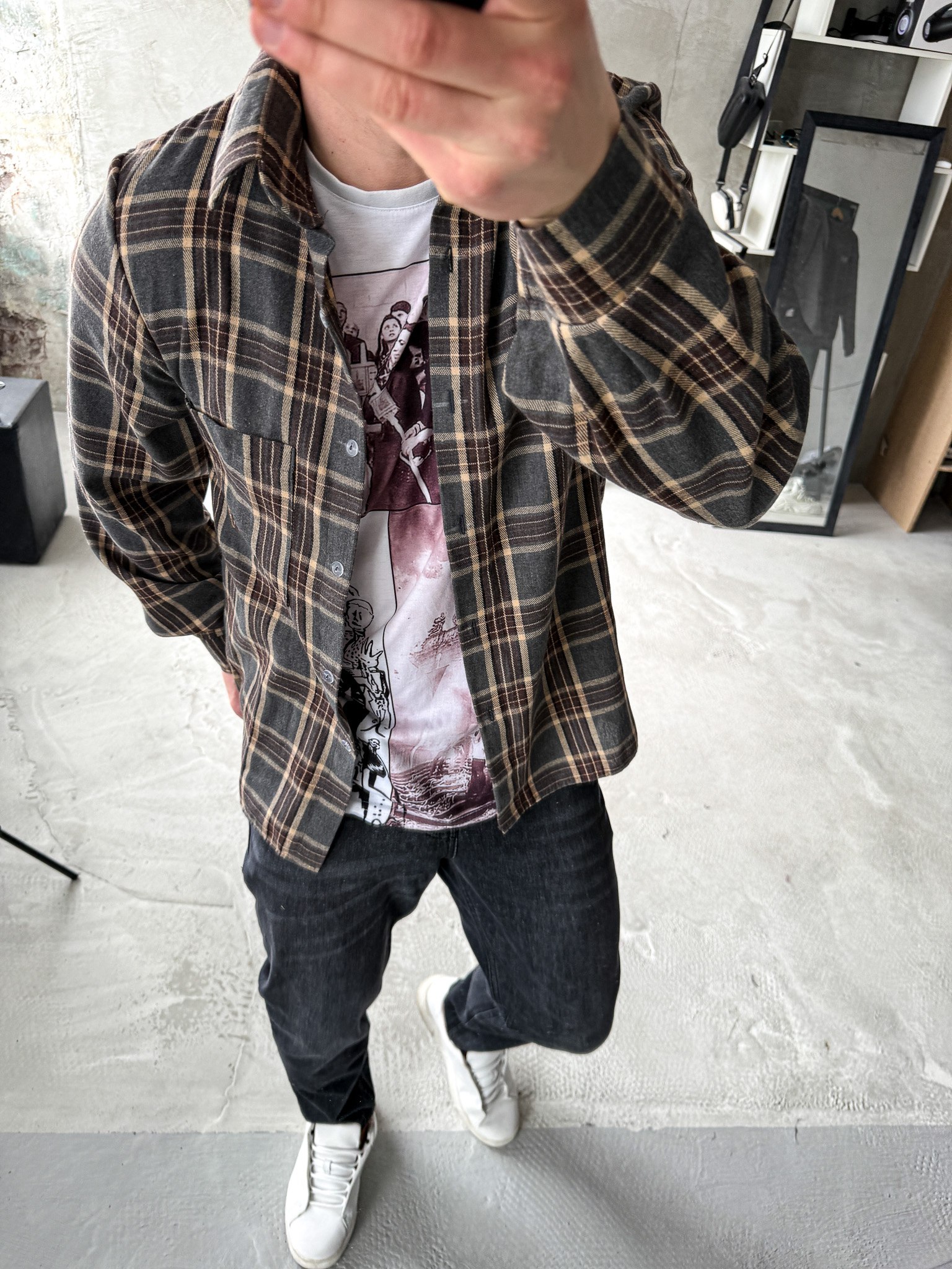 Чоловіча Картата Графітова Сорочка Вільного Крою – Байкова Тепла