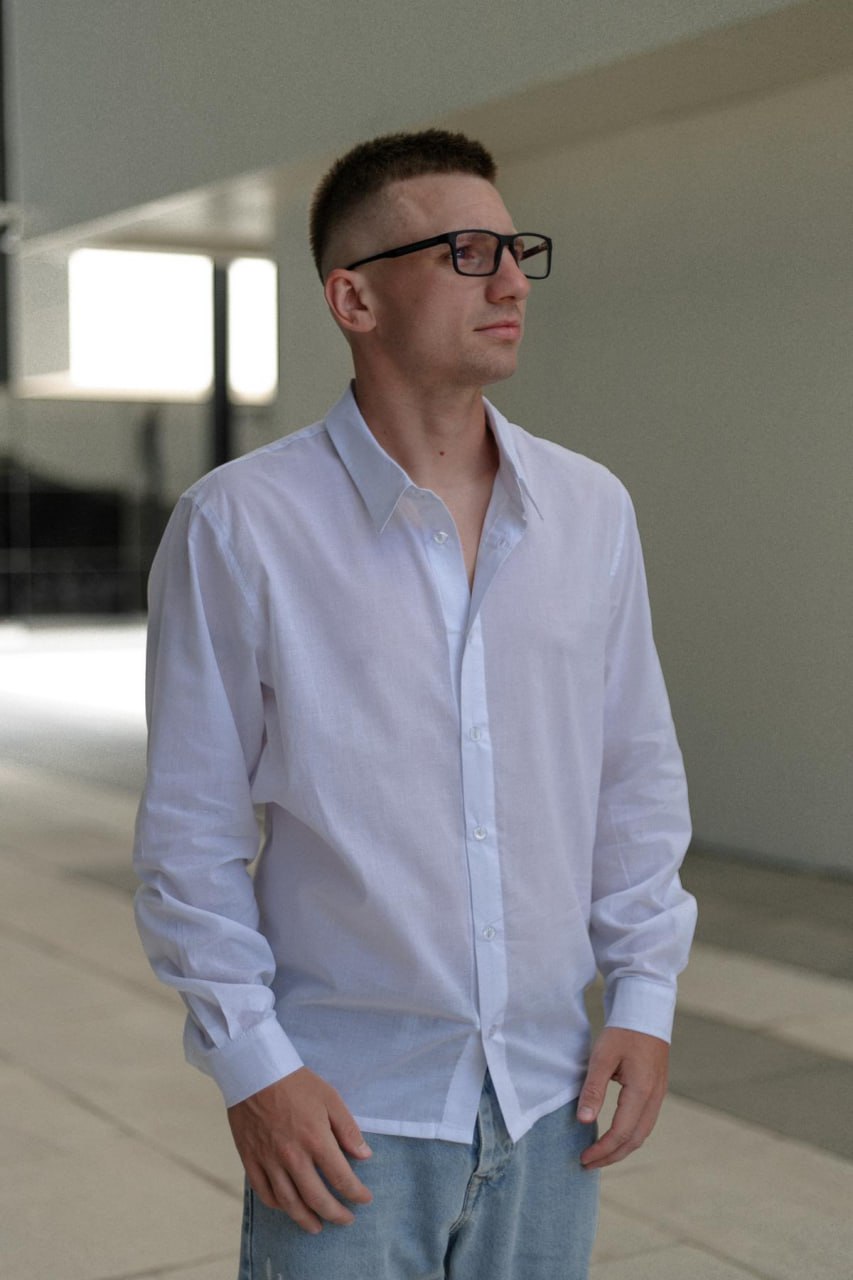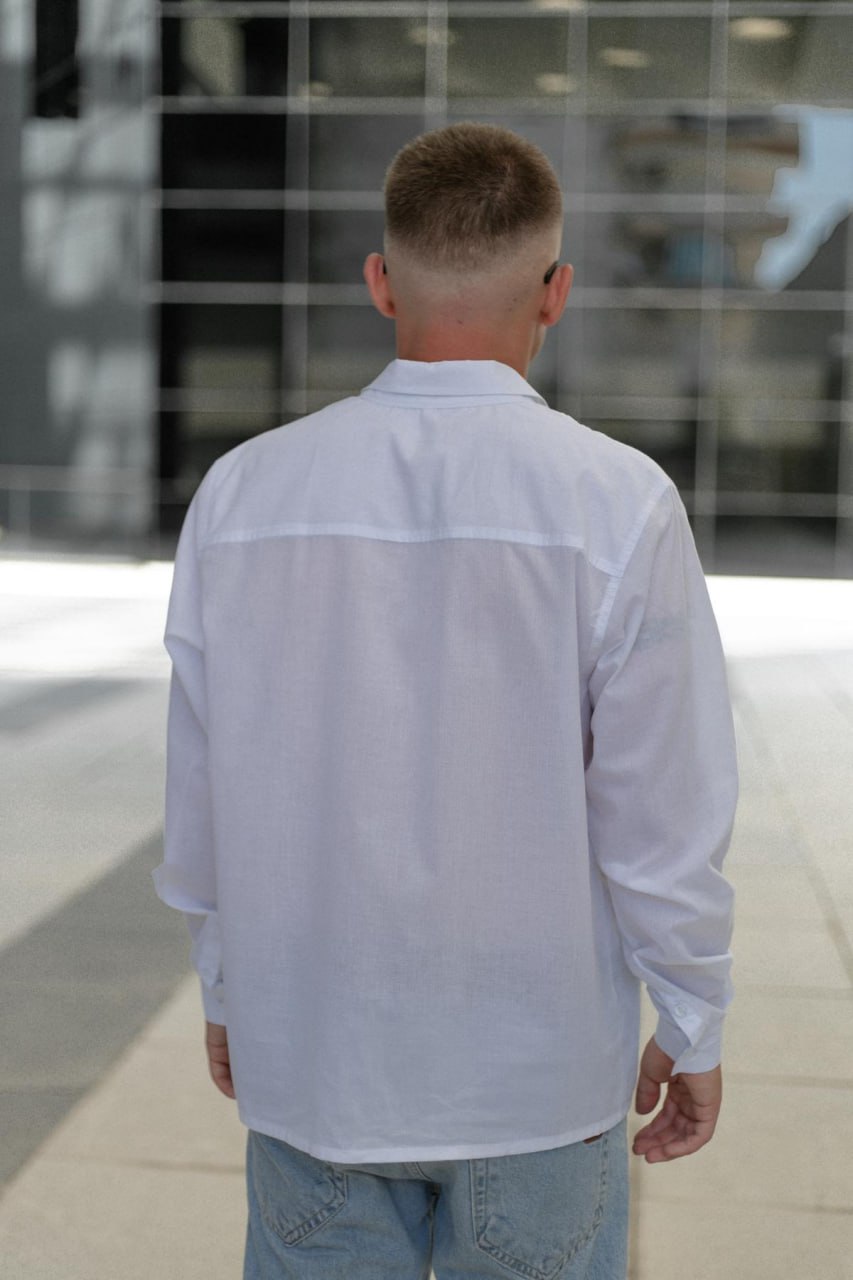Чоловіча Класична Бавовняна Біла Сорочка Вільного Прямого Крою