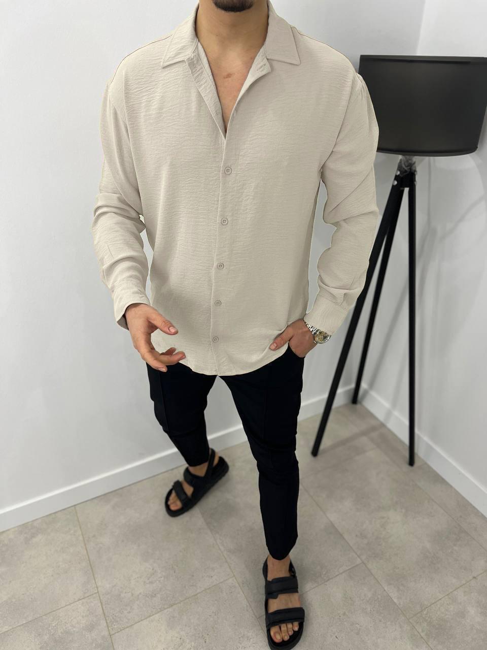 Чоловіча Легка Літня Бежева Сорочка Вільного Крою Льон Жатка