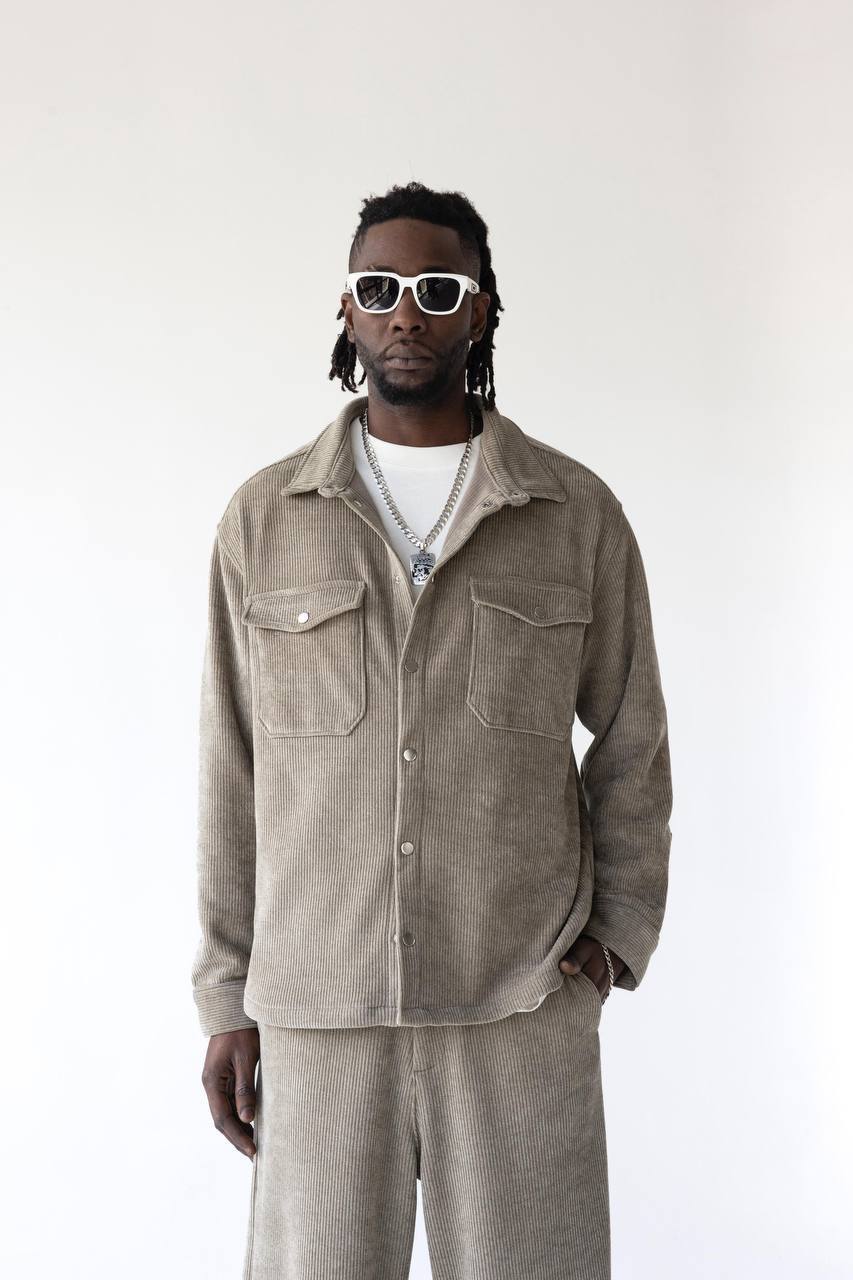 Чоловіча Оливкова Вельветова Сорочка Оверсайз на Кнопках