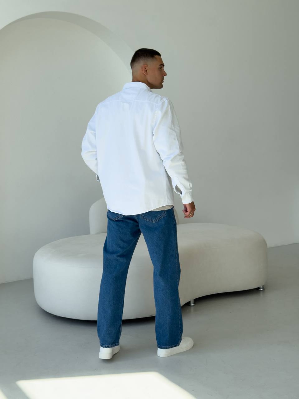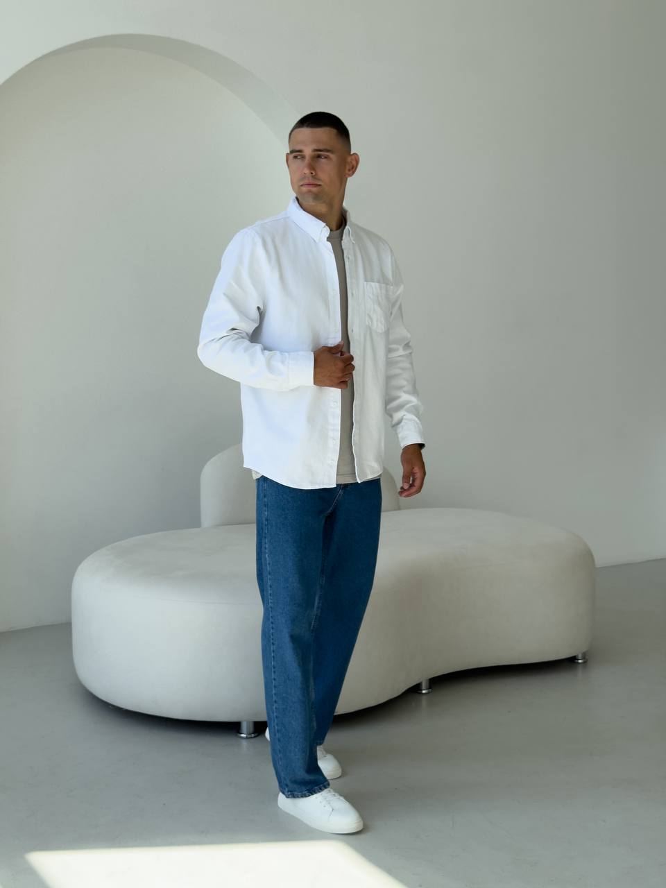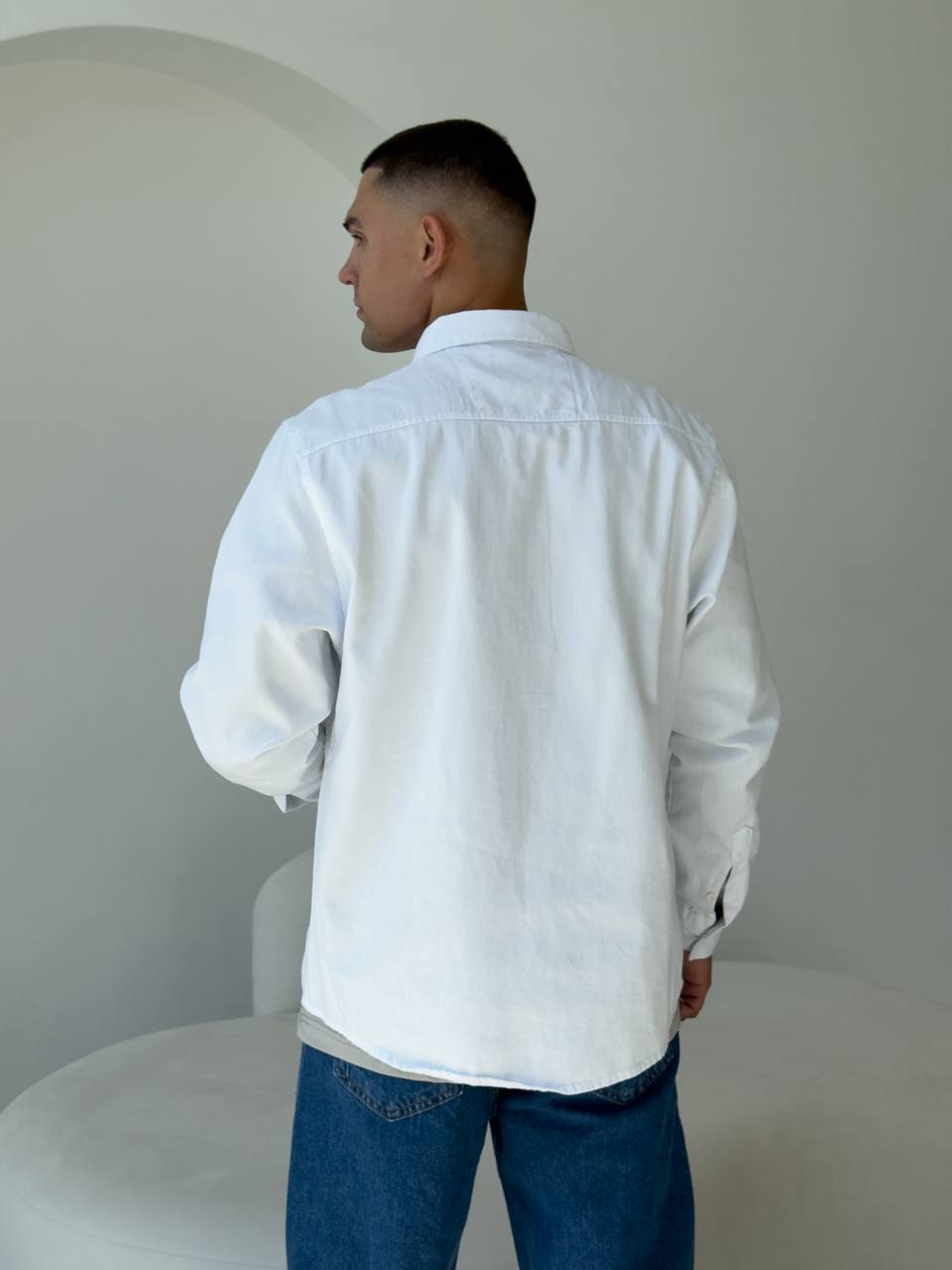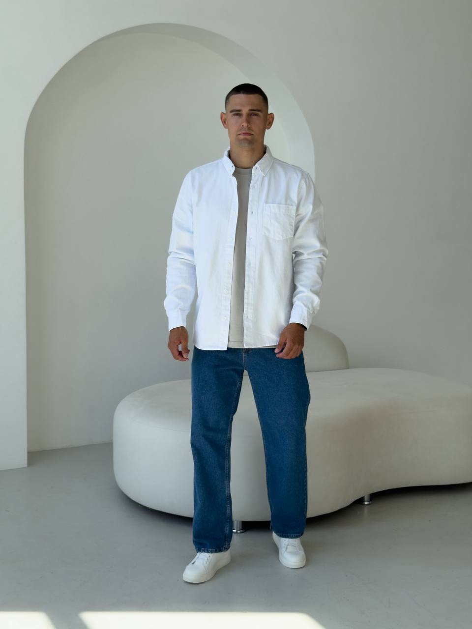 Чоловіча Щільна Бавовняна Біла Сорочка Прямого Крою з Кишенею на Грудях