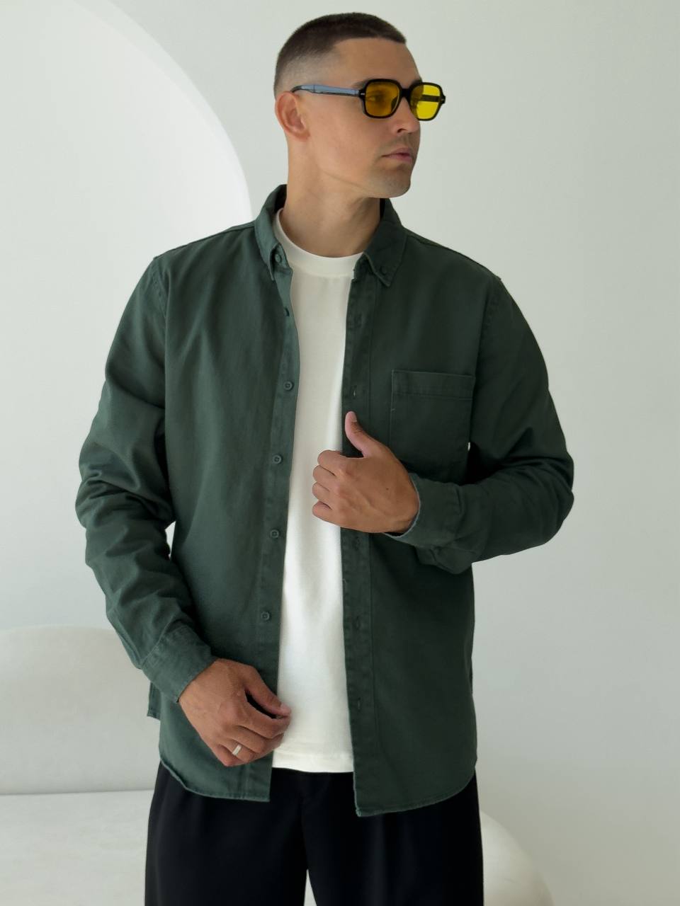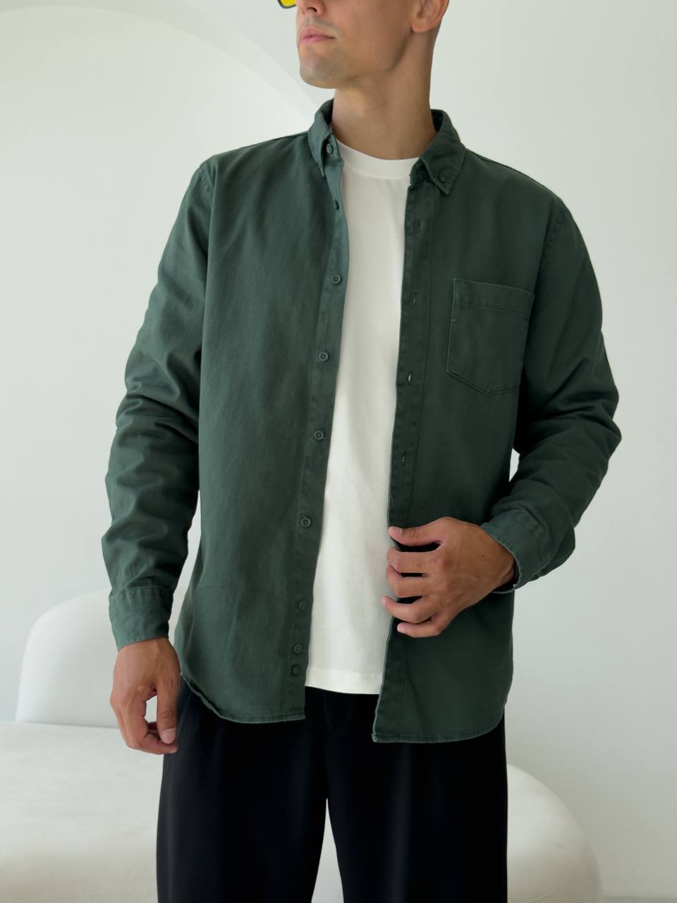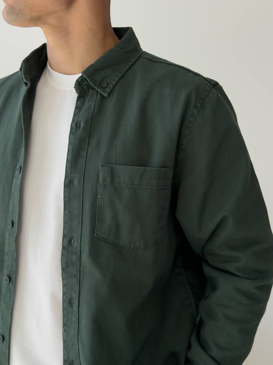 Чоловіча Щільна Бавовняна Зелена Сорочка Прямого Крою з Кишенею на Грудях