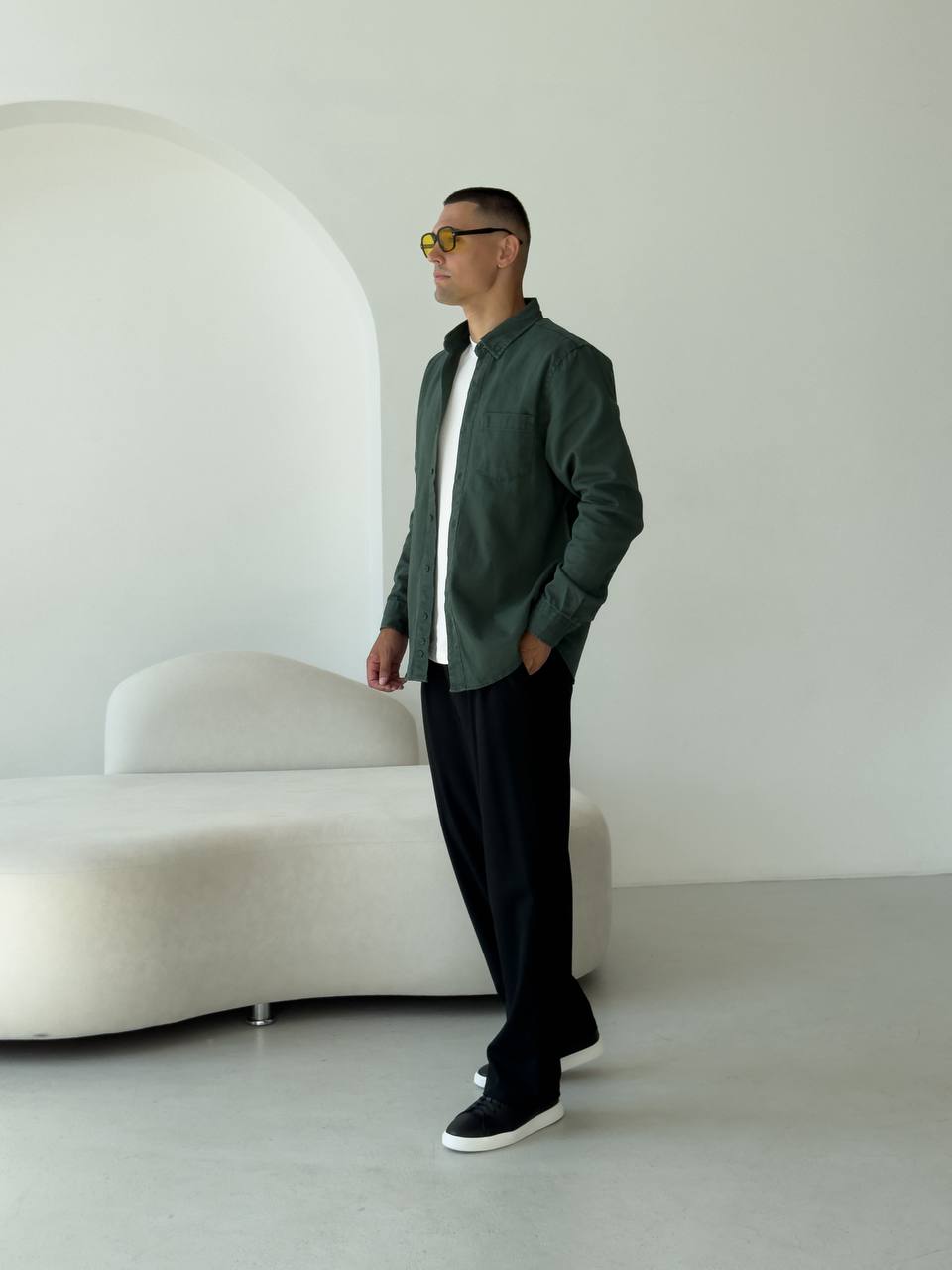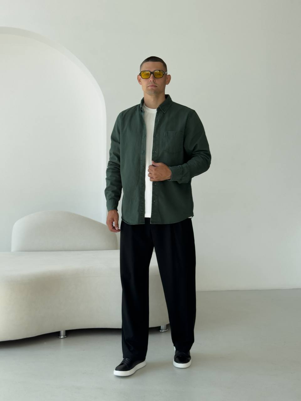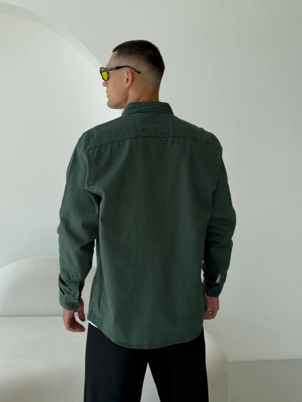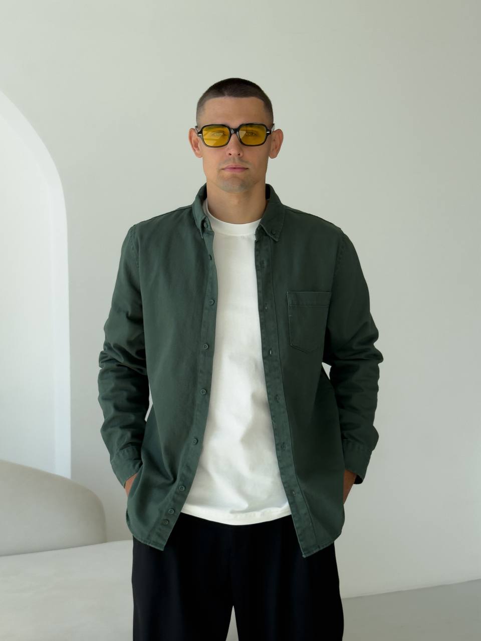Чоловіча Щільна Бавовняна Зелена Сорочка Прямого Крою з Кишенею на Грудях