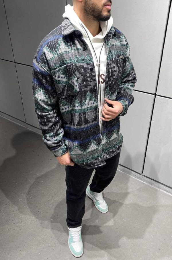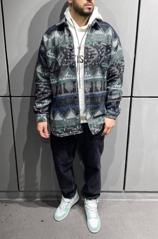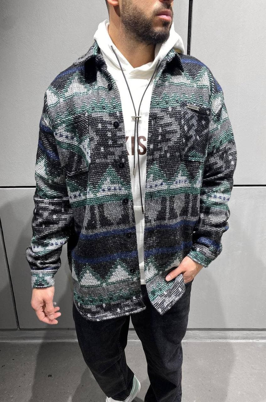 Чоловіча Сіра Байкова Сорочка з Візерунком на Ґудзиках