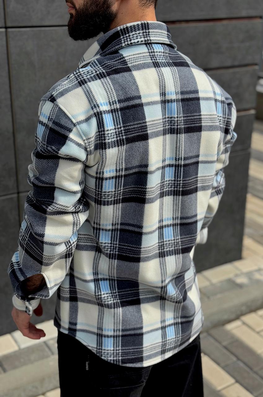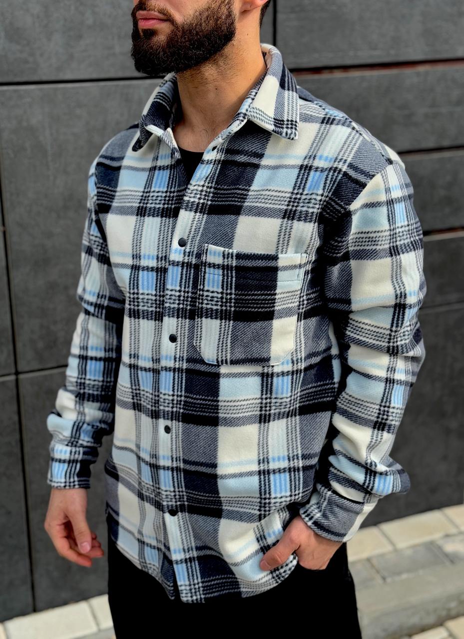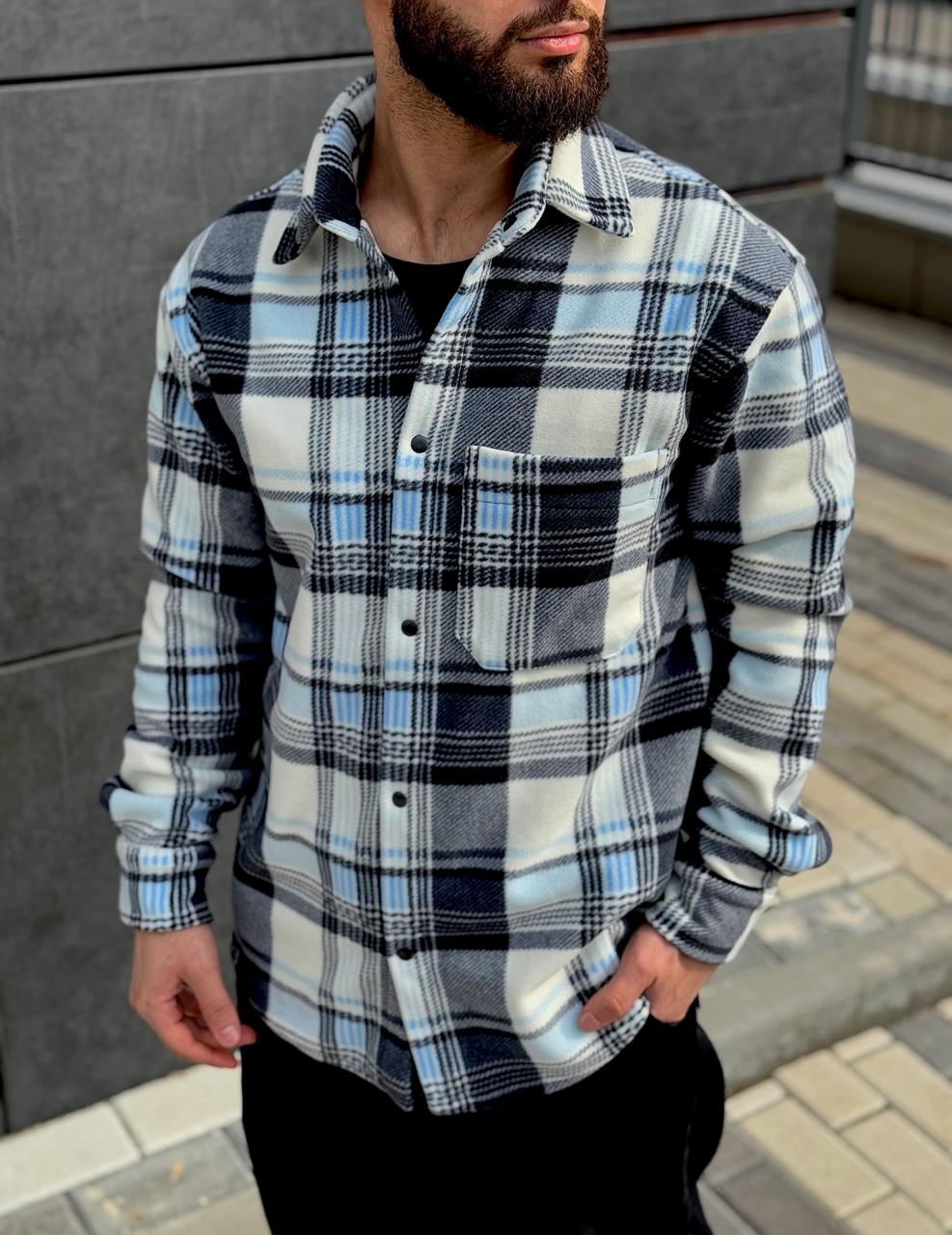 Чоловіча Тепла Флісова Біла Сорочка Вільного Крою в Клітинку