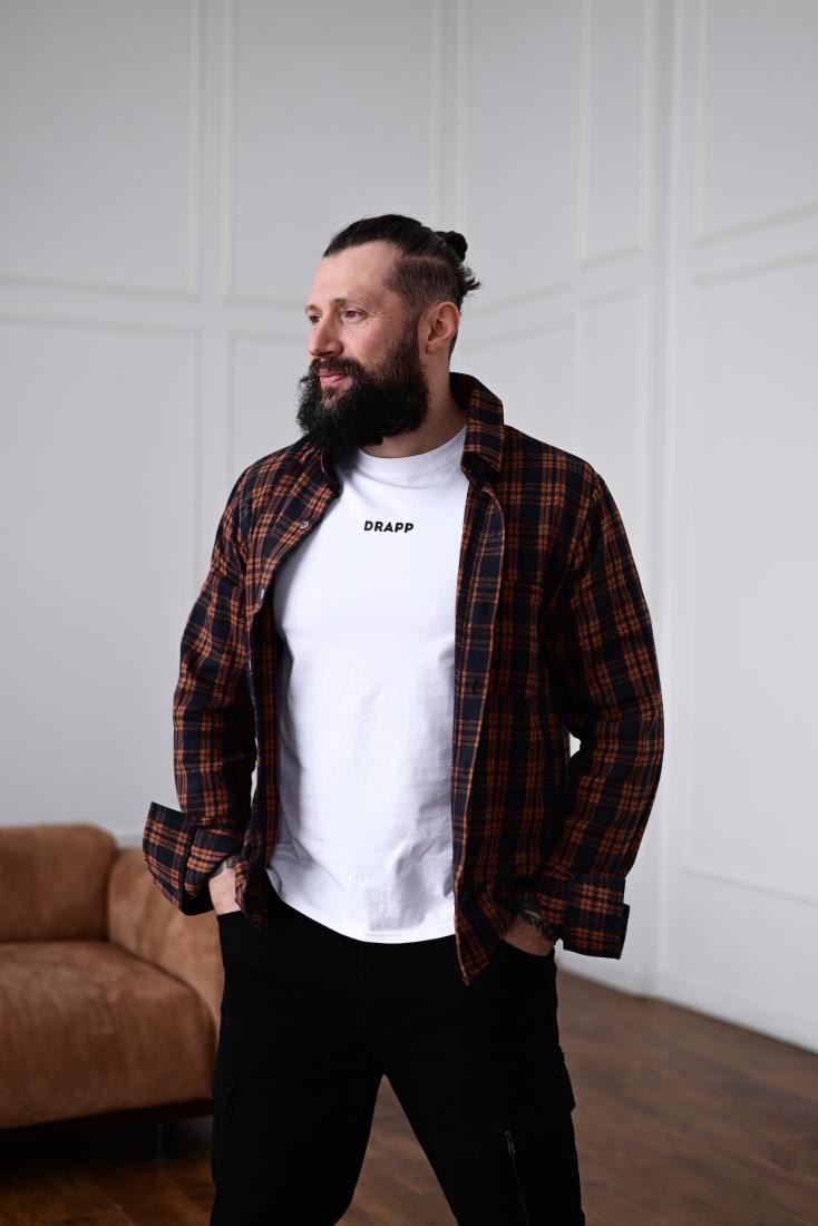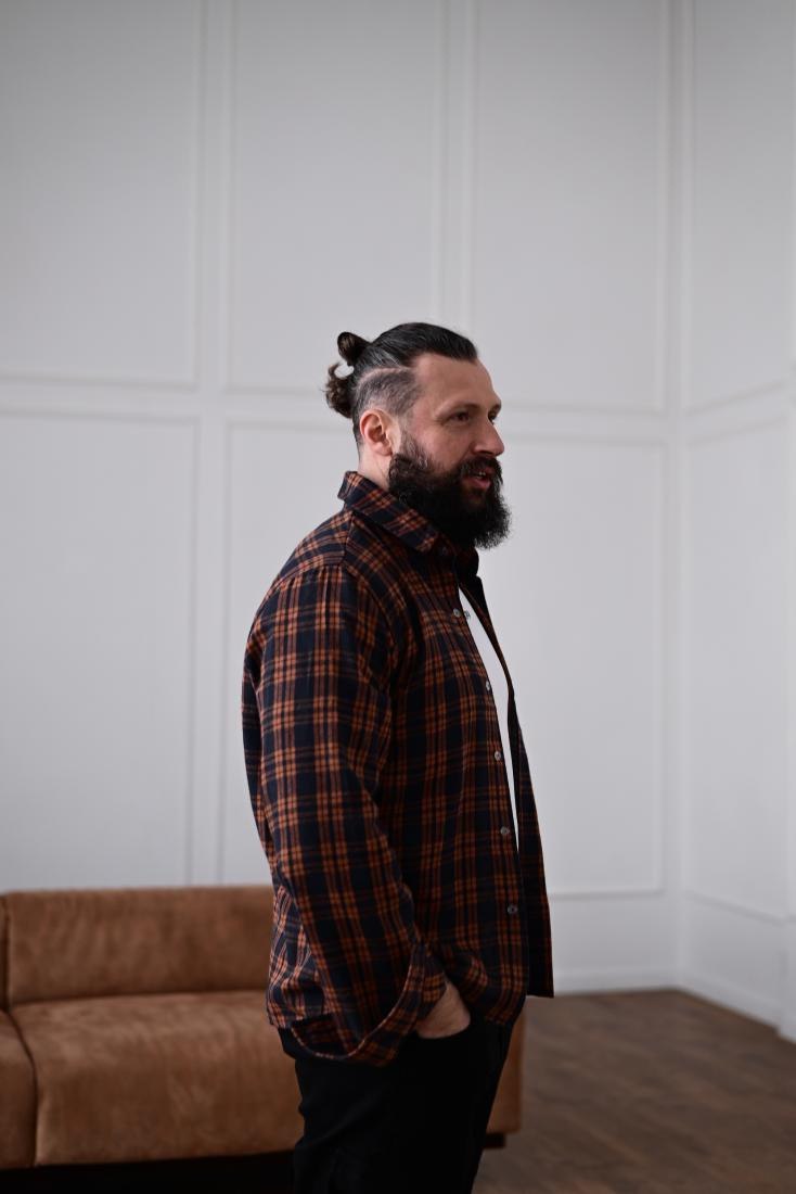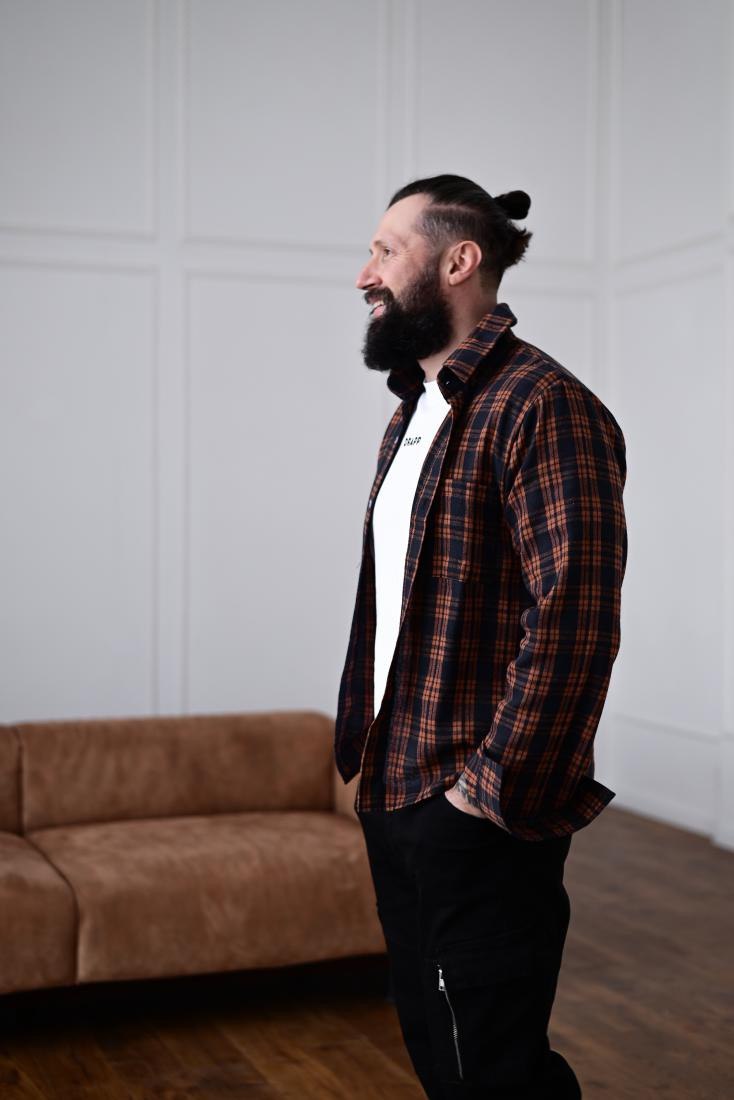 Чоловіча Вільна Теракотова Сорочка у Клітинку – Байкова Тепла