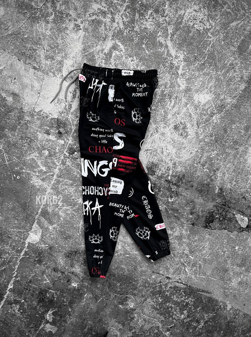 Чоловічі Чорні Штани Джоггери – Вільні у Принтах Написи з Манжетами на Резинках