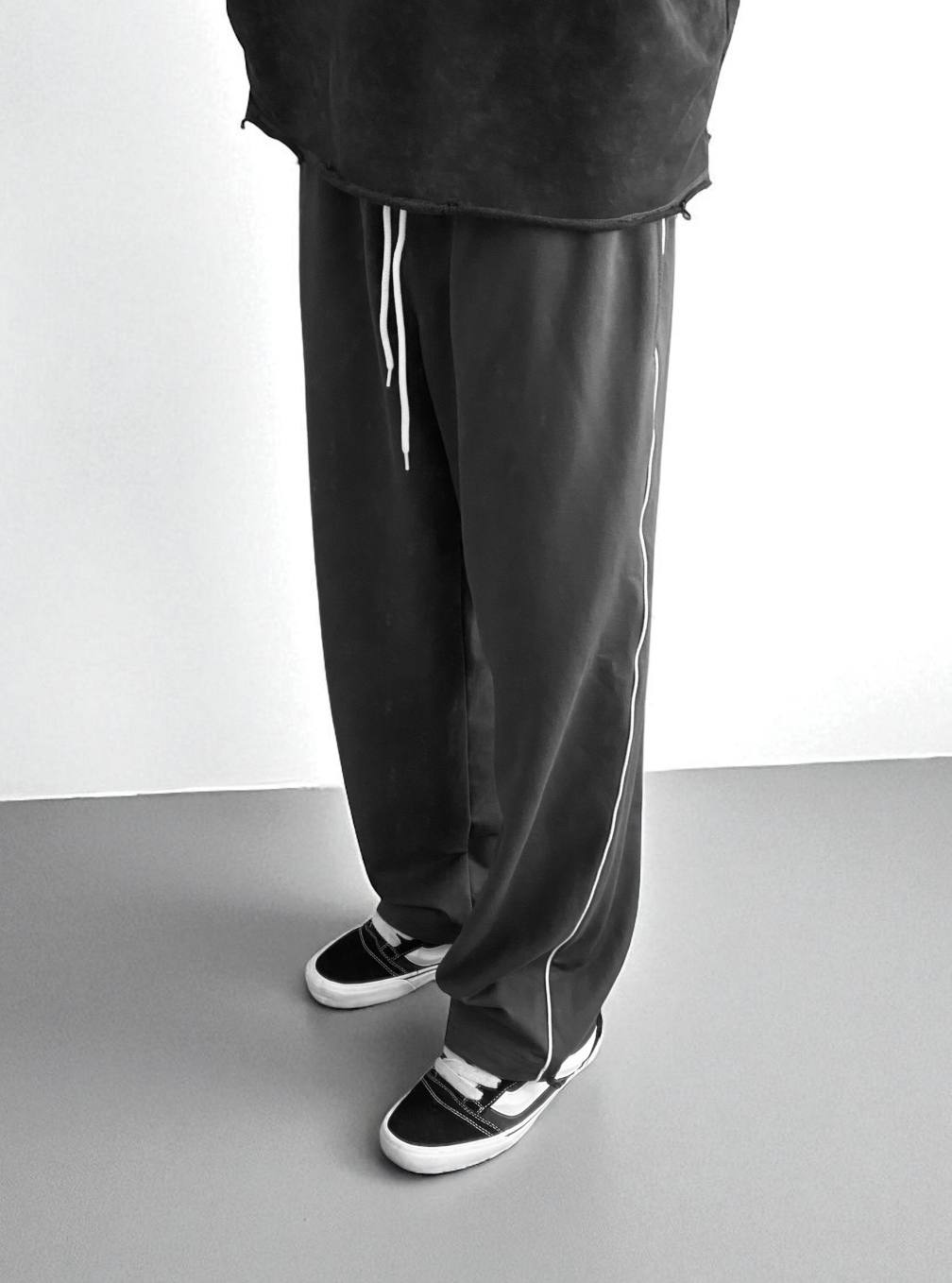 Чоловічі Графітові Спортивні Штани – Широкі Прямого Крою з Кантом та Затяжками