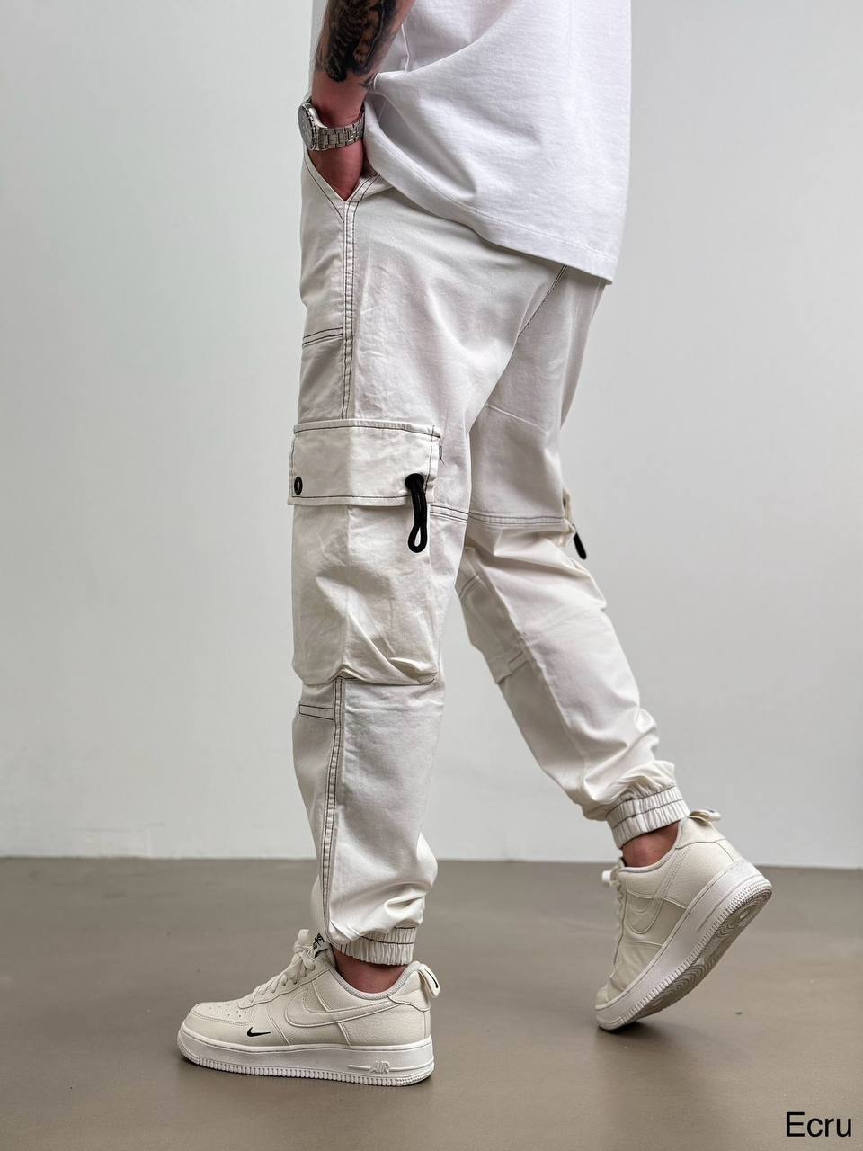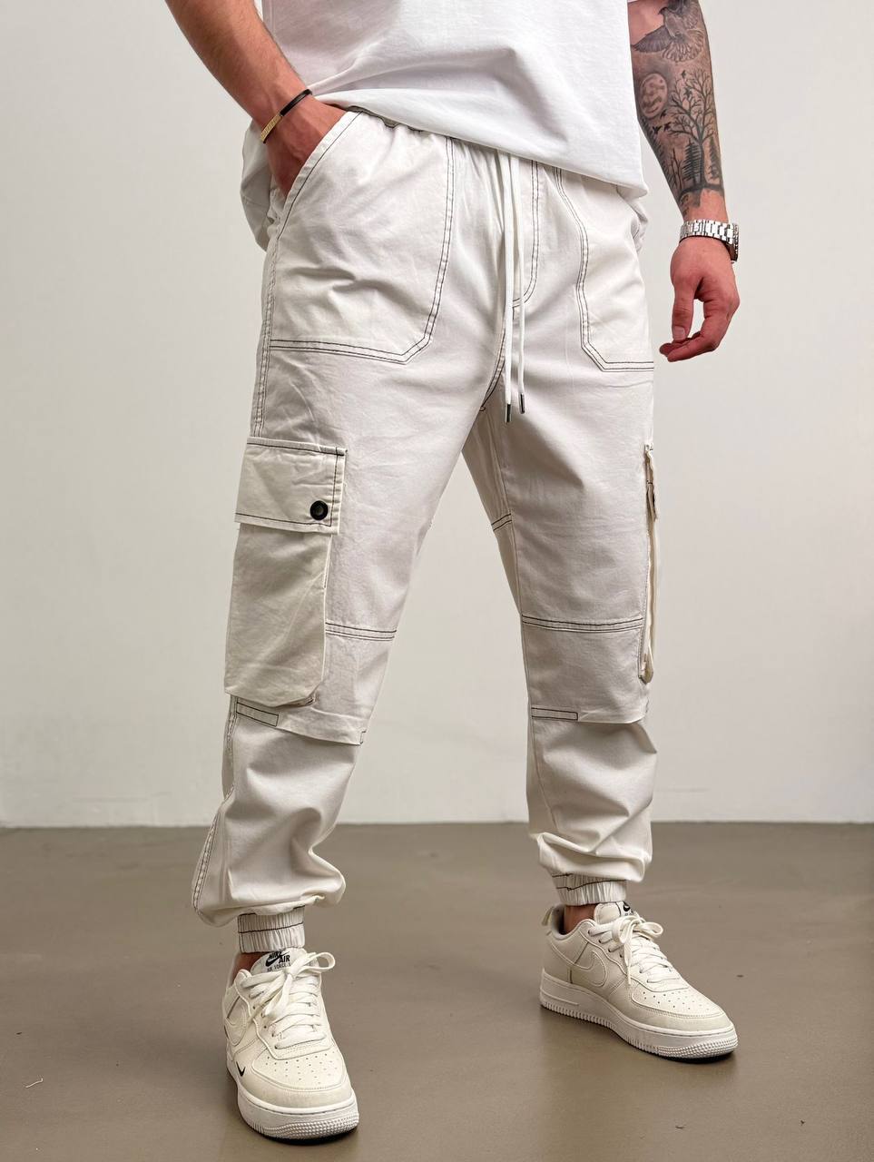 Чоловічі Кремові Спортивні Штани Карго з Акцентними Контрастними Швами