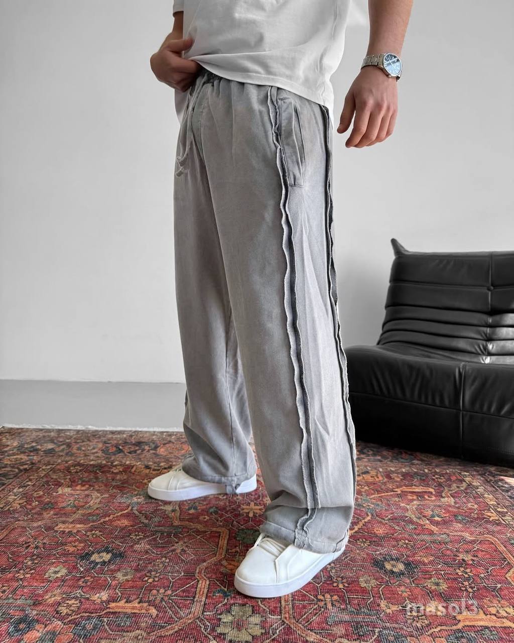 Чоловічі Широкі Сірі Спортивні Штани Варені зі Швами Назовні