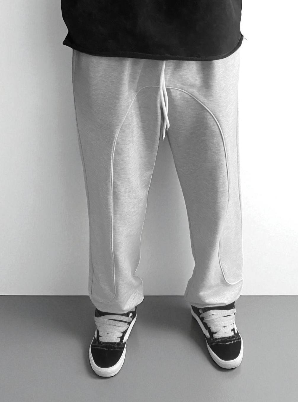 Чоловічі Спортивні Штани Сірі Меланж – Широкі Прямого Крою з Кантом та Затяжками
