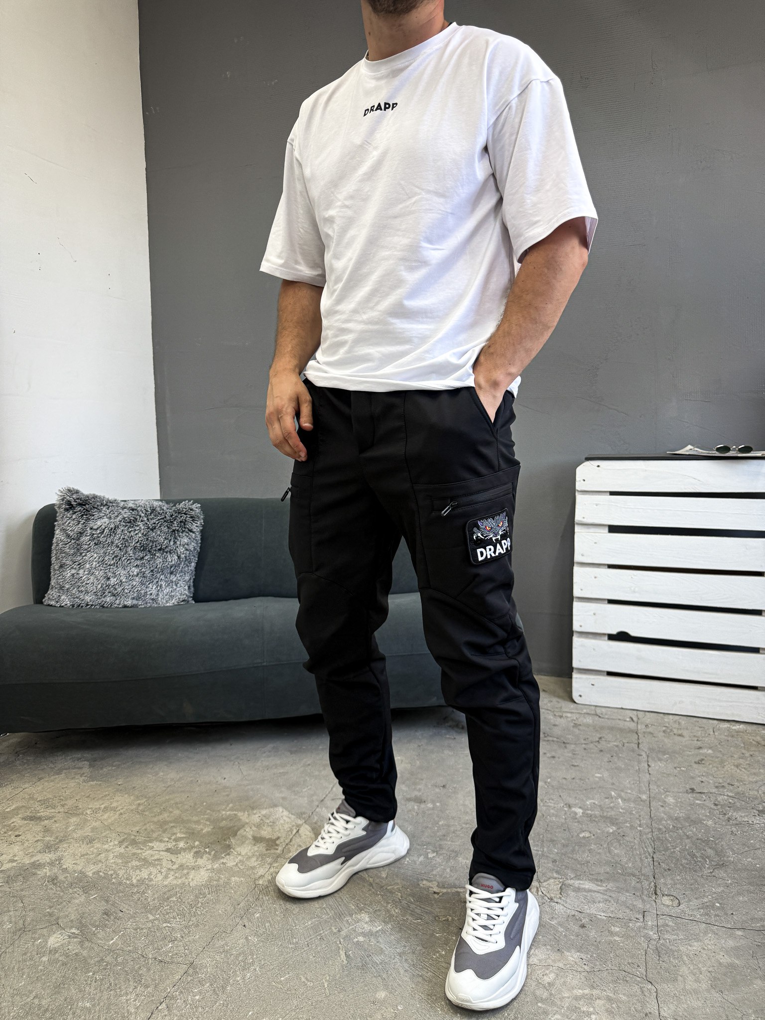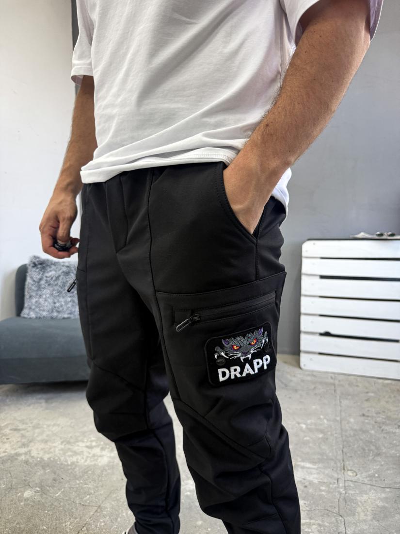 Чоловічі Теплі Чорні Штани з Нашивкою – Софтшелл на Флісі