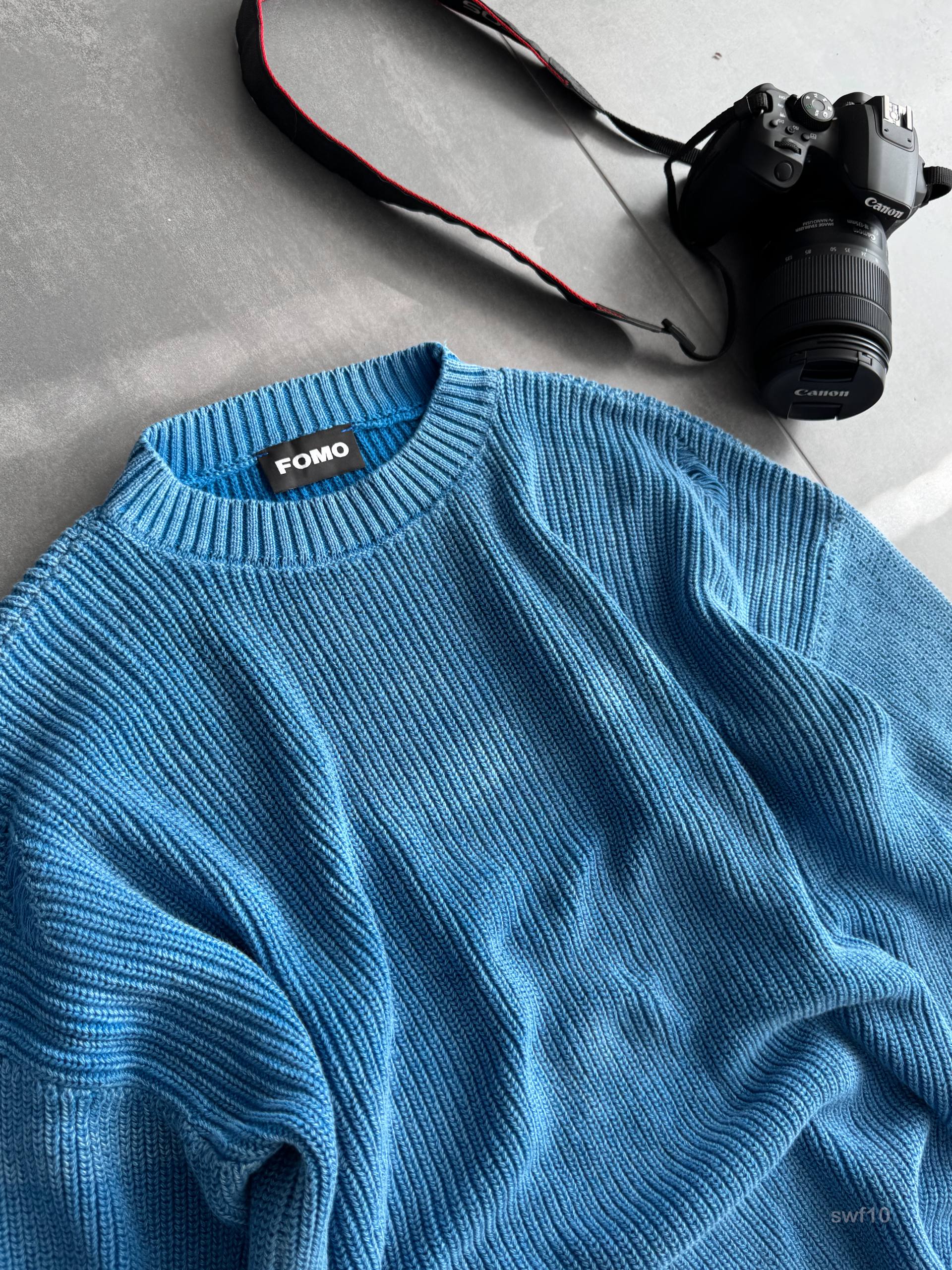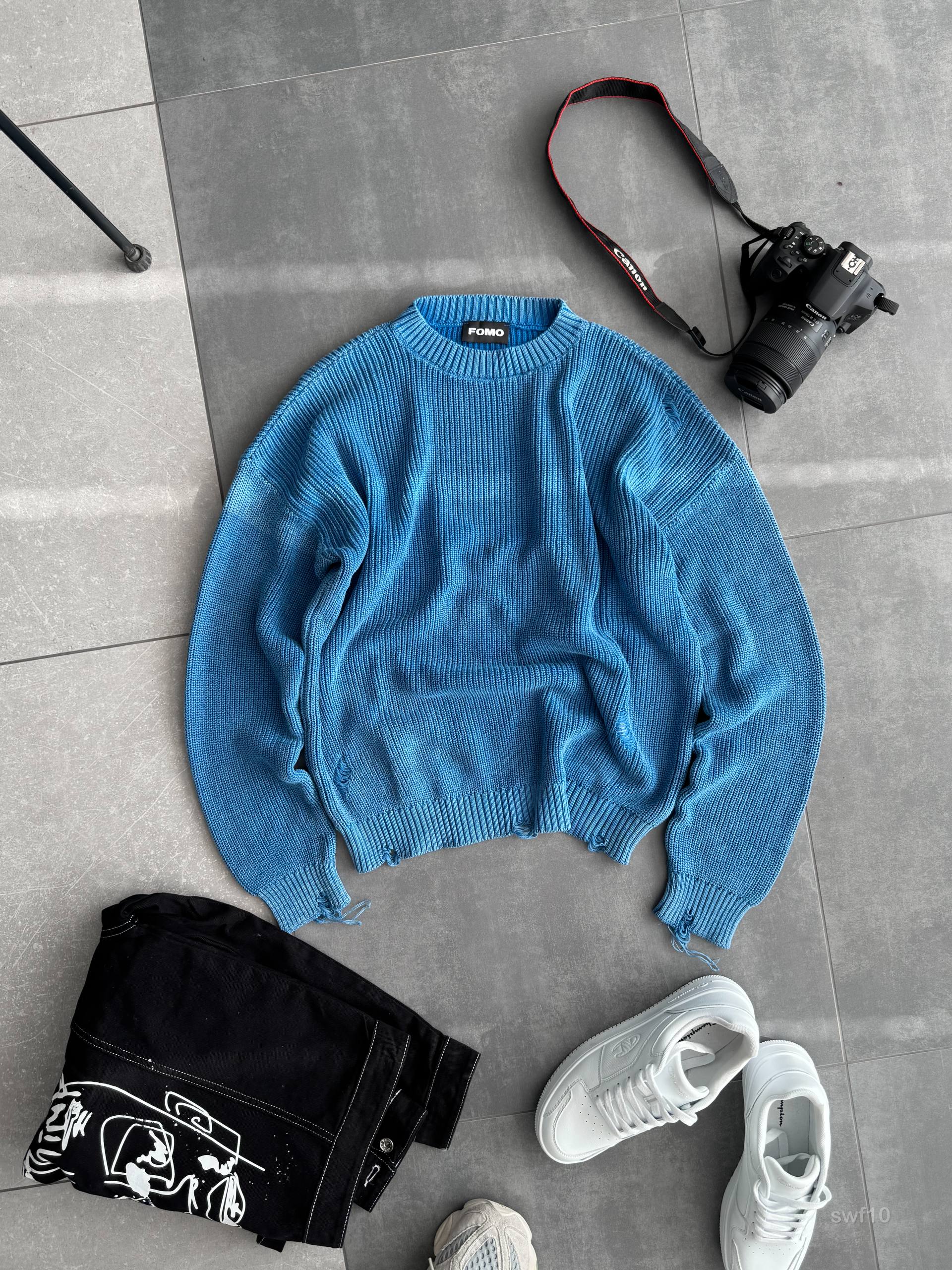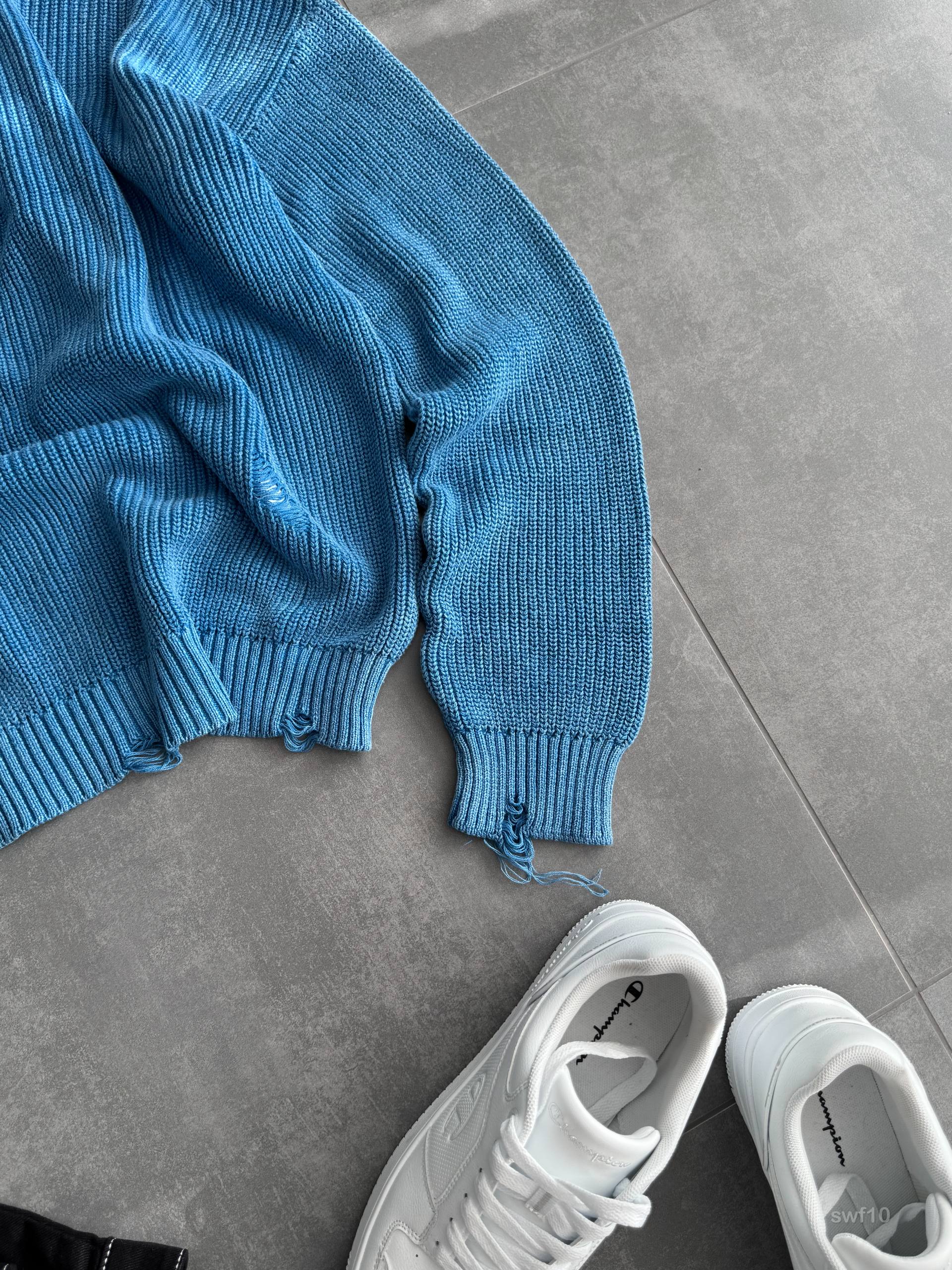 Чоловічий Бавовняний Блакитний Рваний Светр Варений