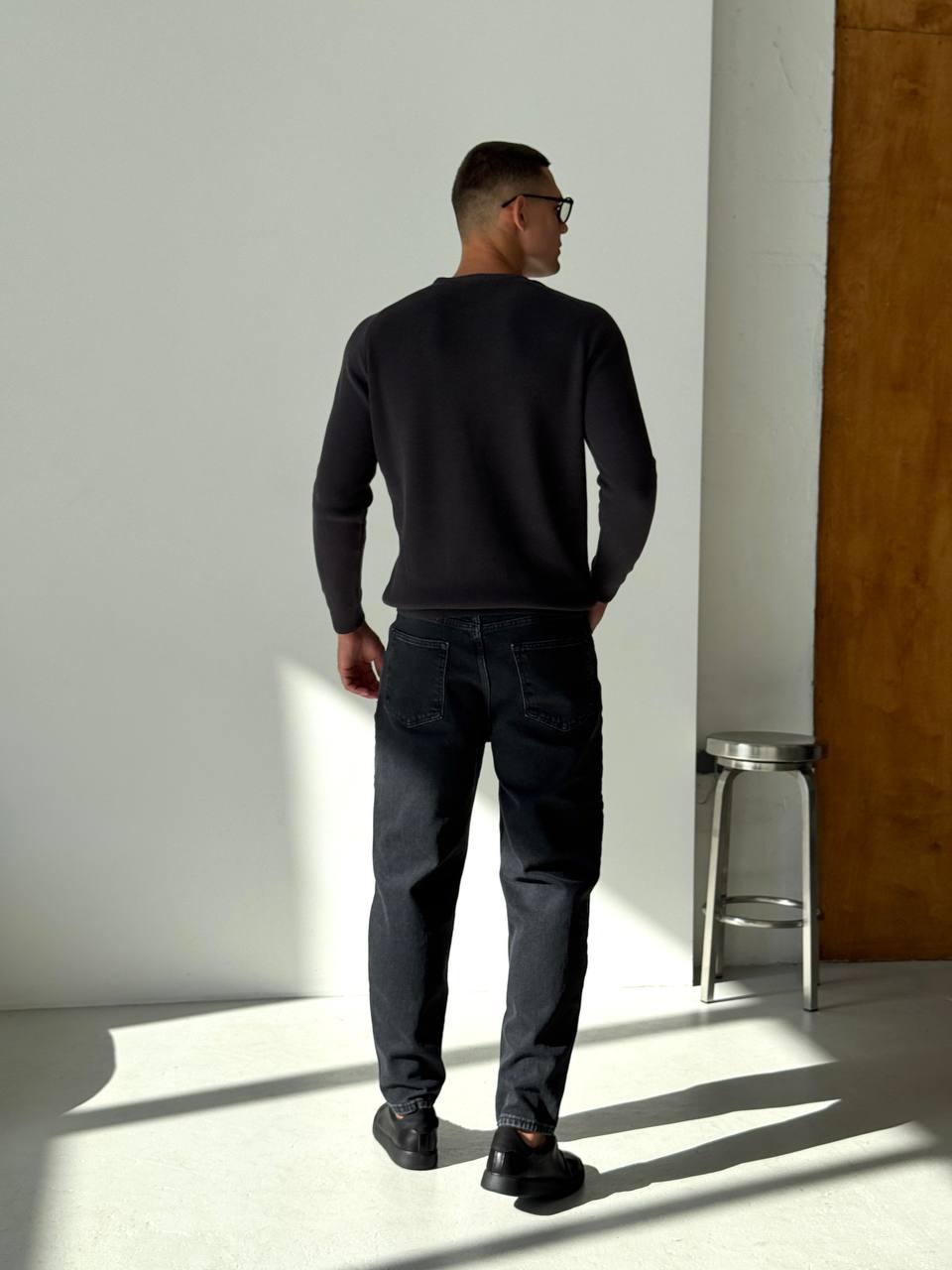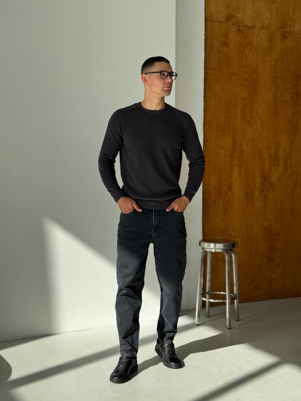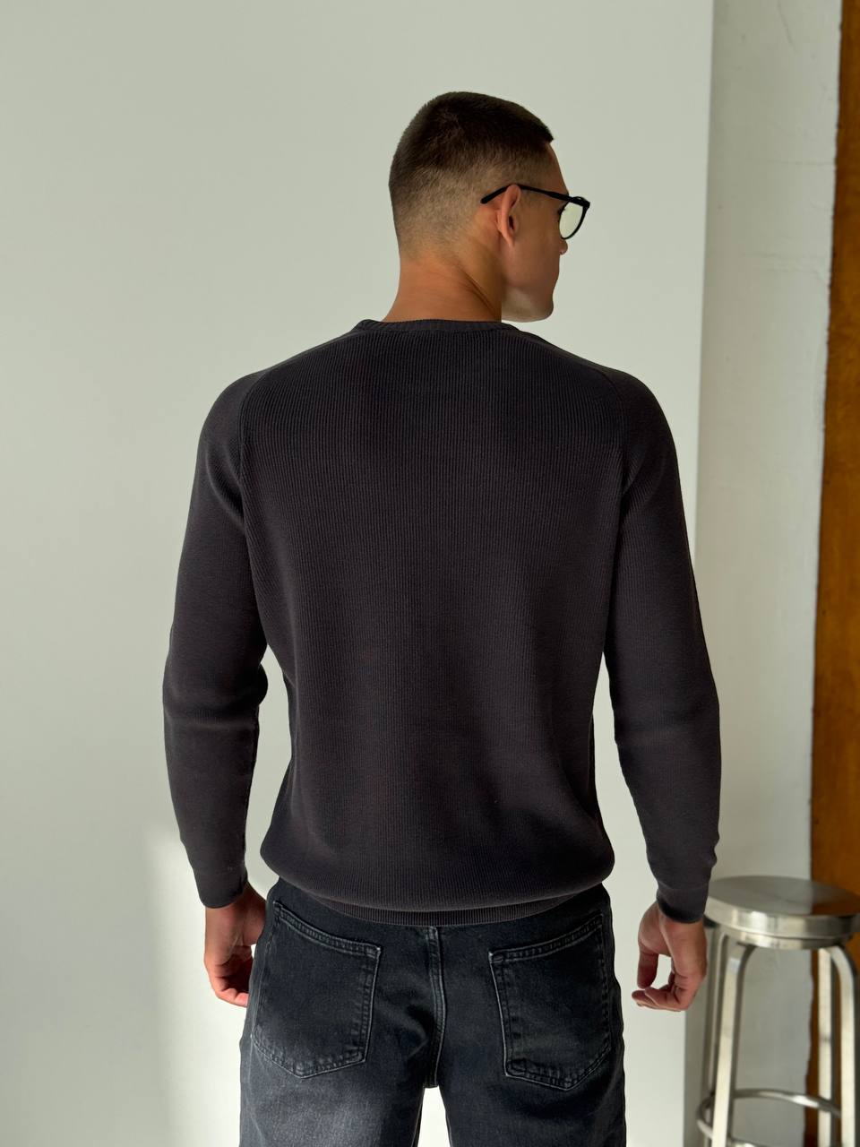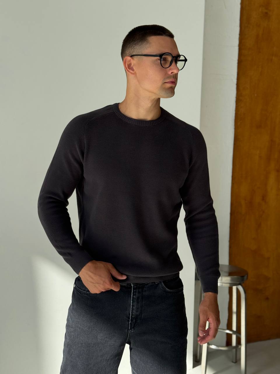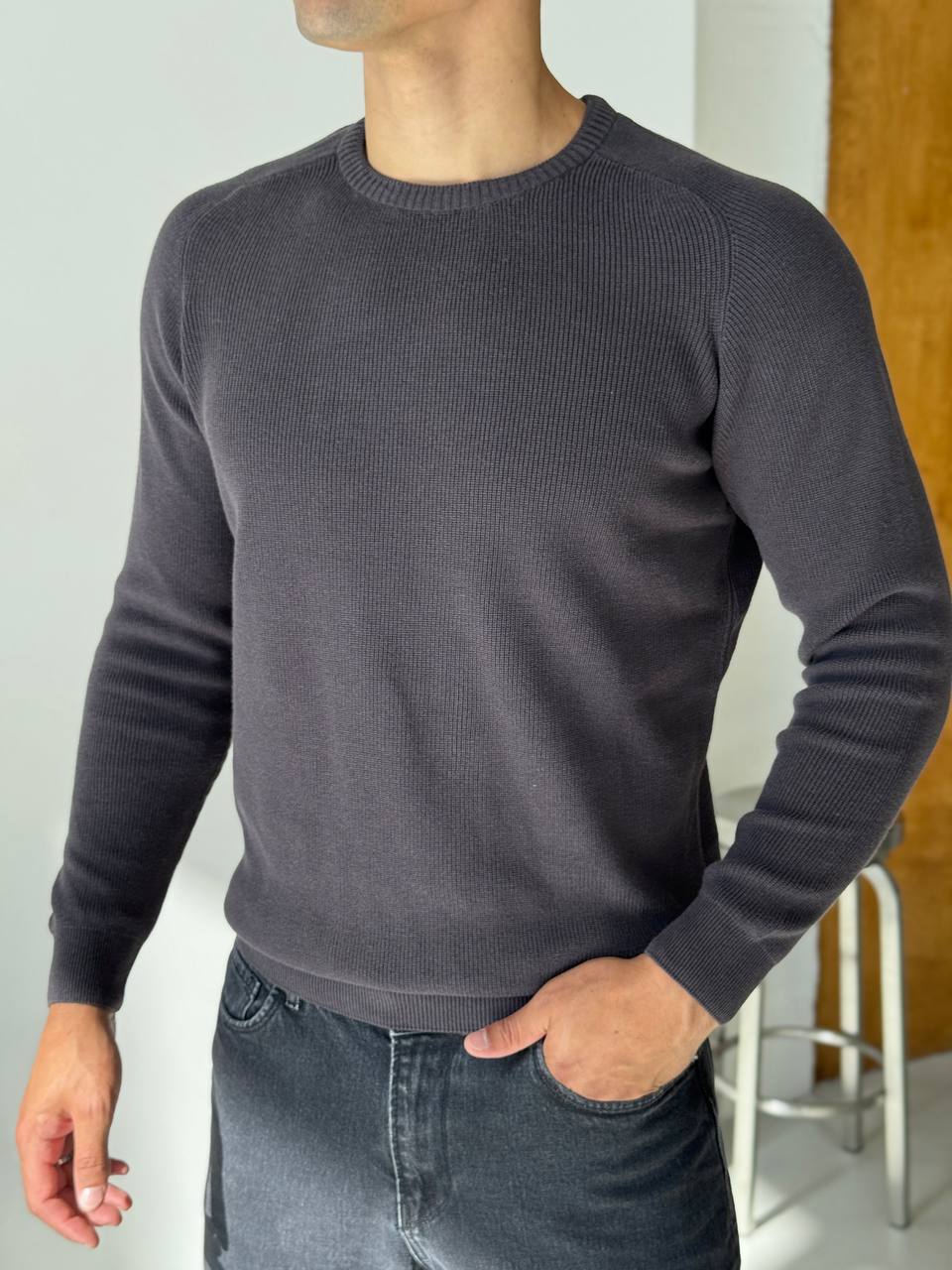Чоловічий Базовий Графітовий Светр з Круглим Вирізом Горловини