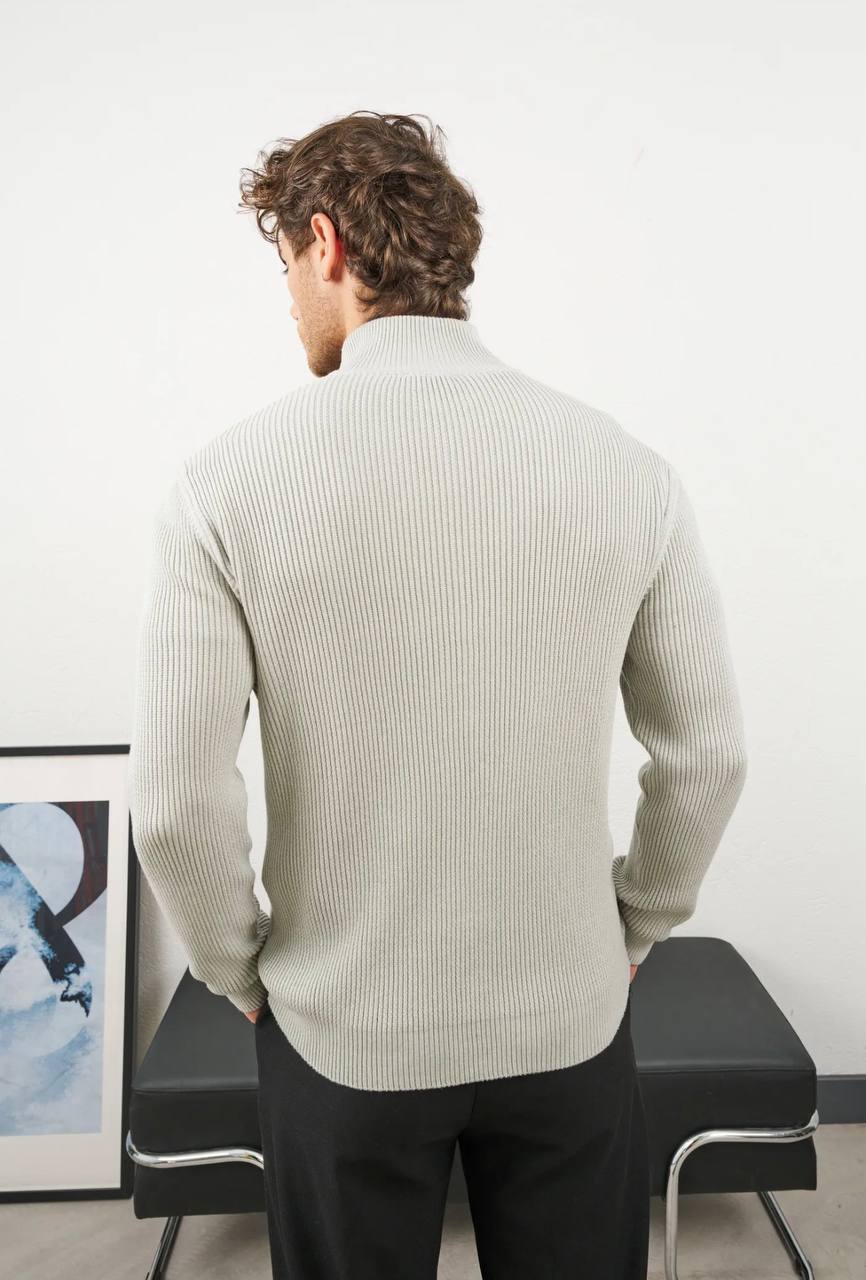 Чоловічий Базовий Сірий Светр в Рубчик на Блискавці з Високою Горловиною