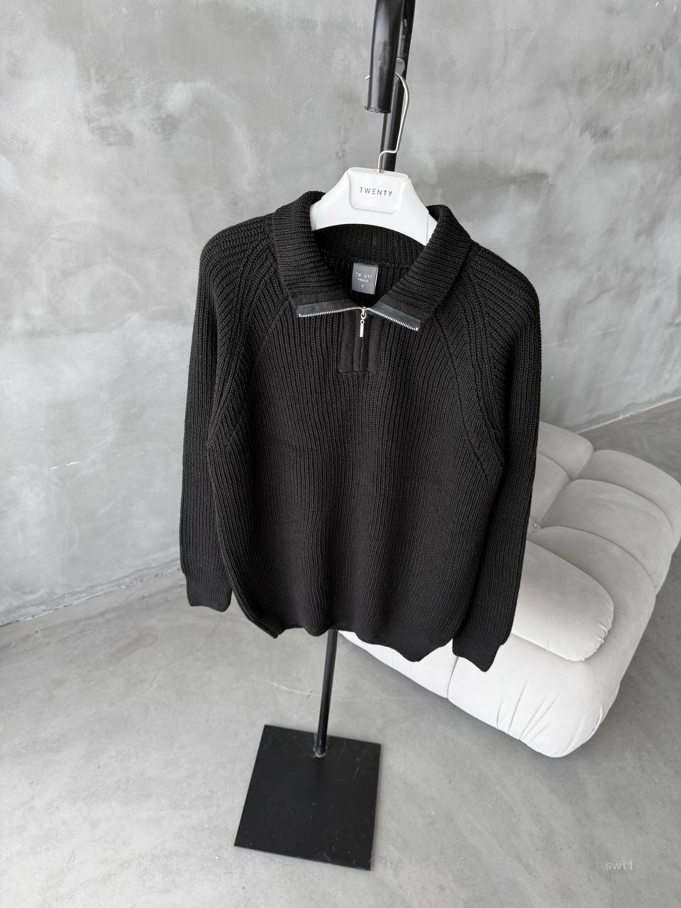 Чоловічий Базовий В’язаний Чорний Светр з Зіп Коміром