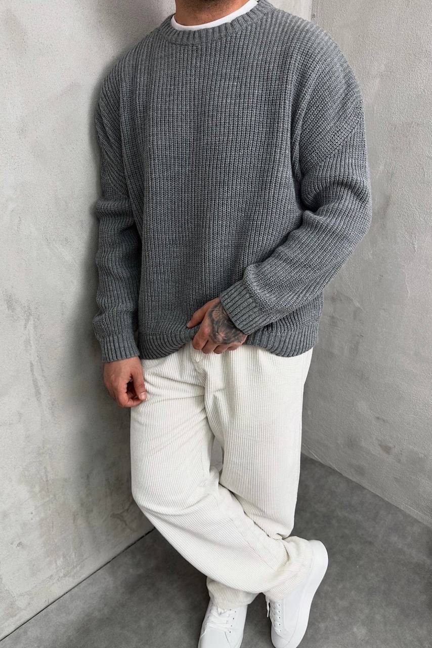 Чоловічий Базовий В’язаний Сірий Светр Бавовна Оверсайз