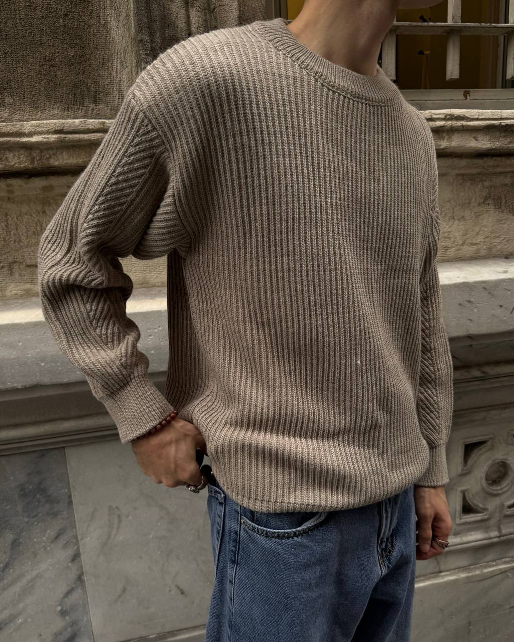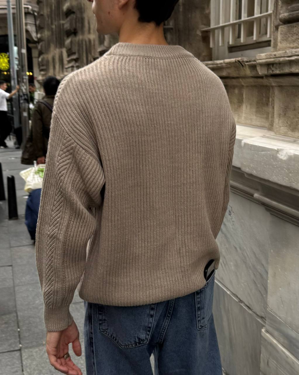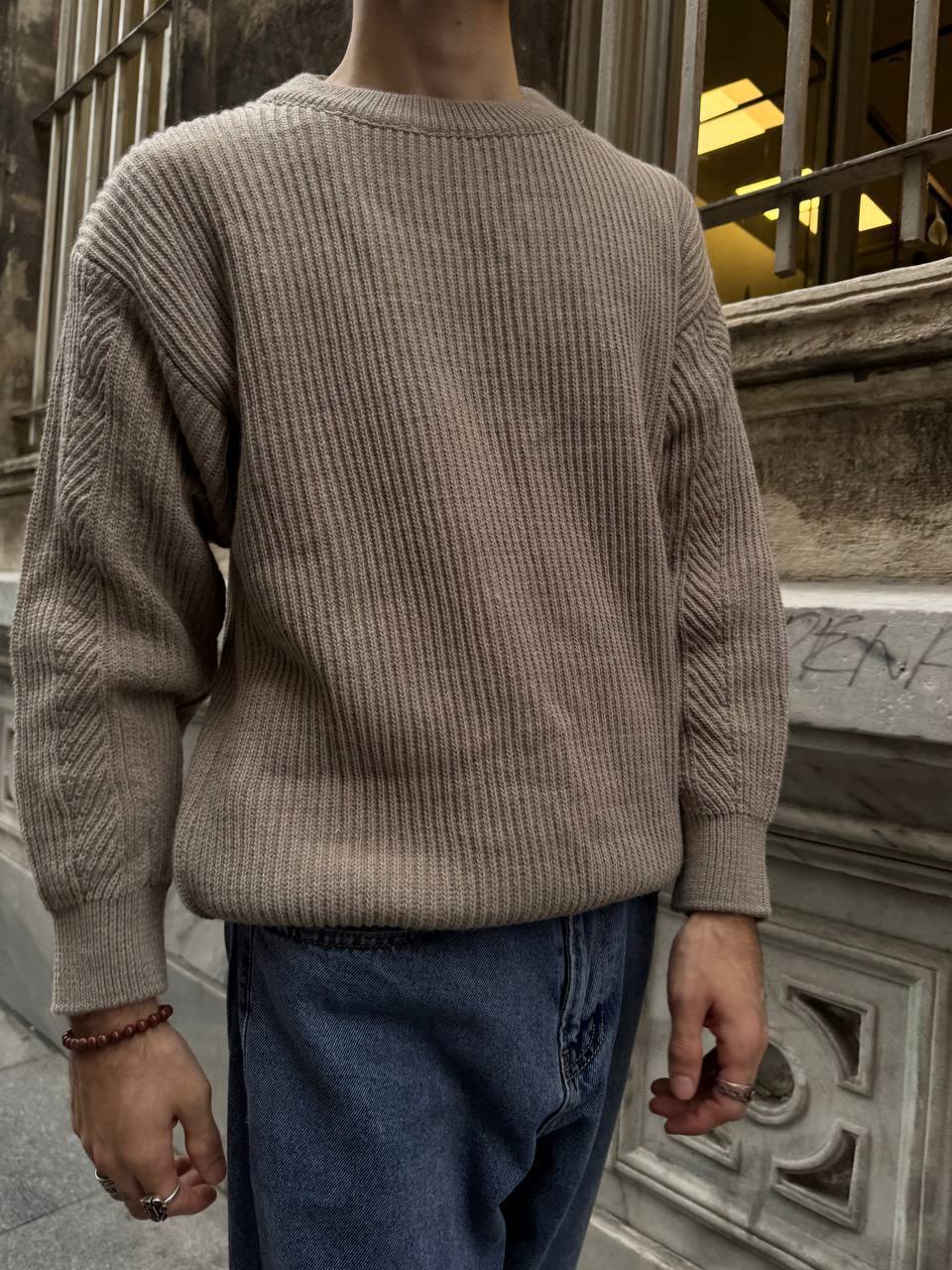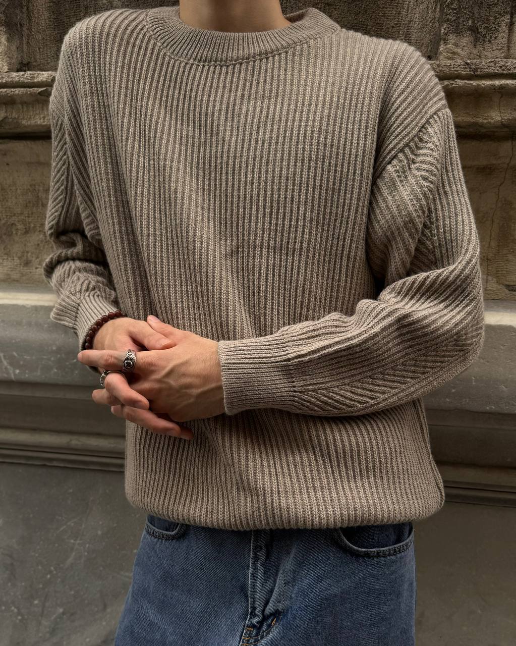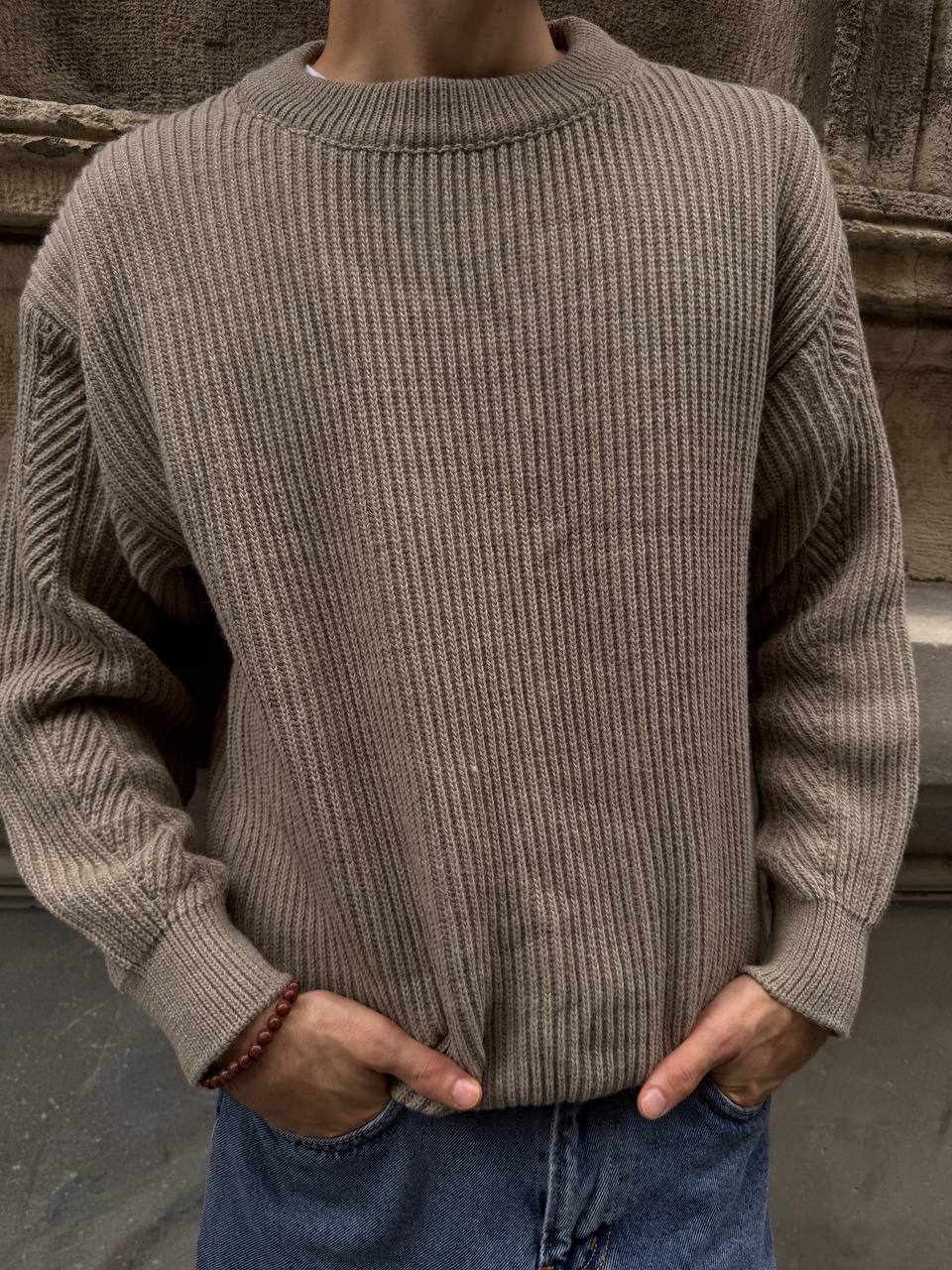 Чоловічий Базовий В’язаний Светр Мокко Оверсайз з Круглим Вирізом