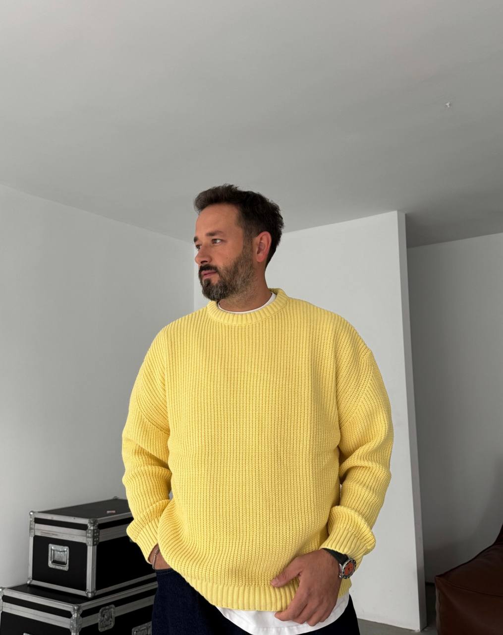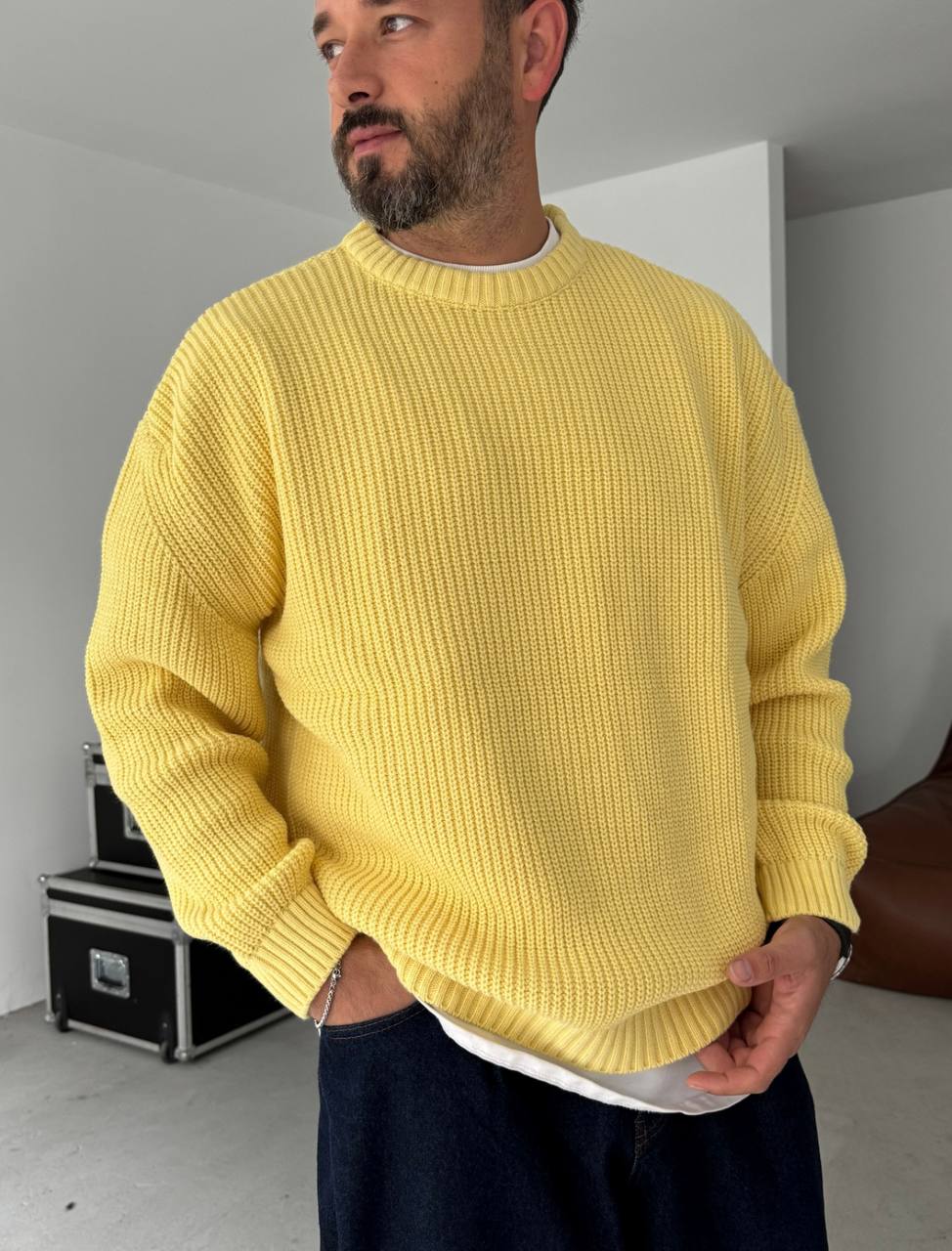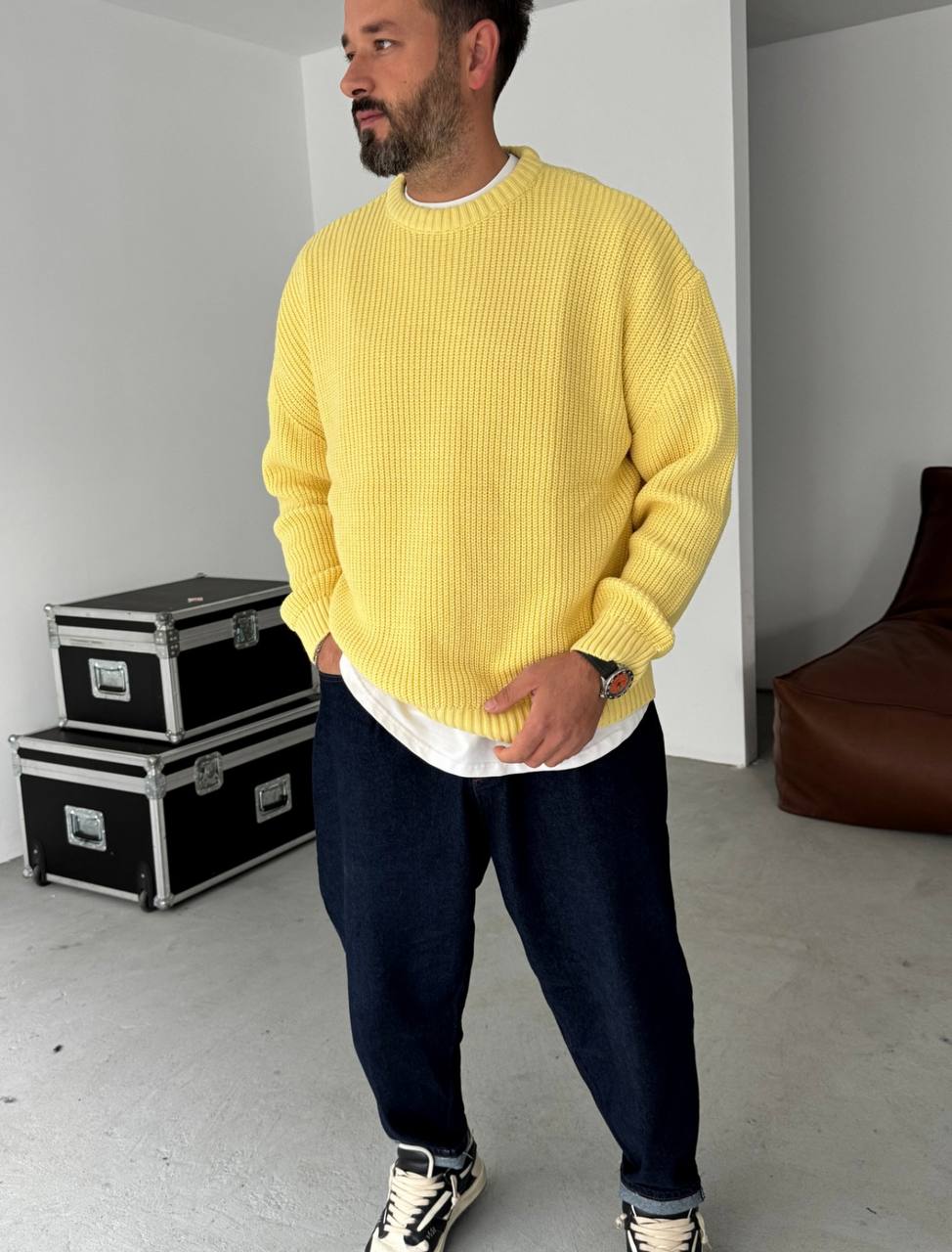 Чоловічий Базовий В’язаний Жовтий Светр Бавовна Оверсайз