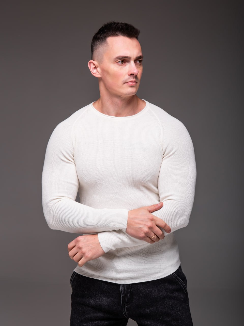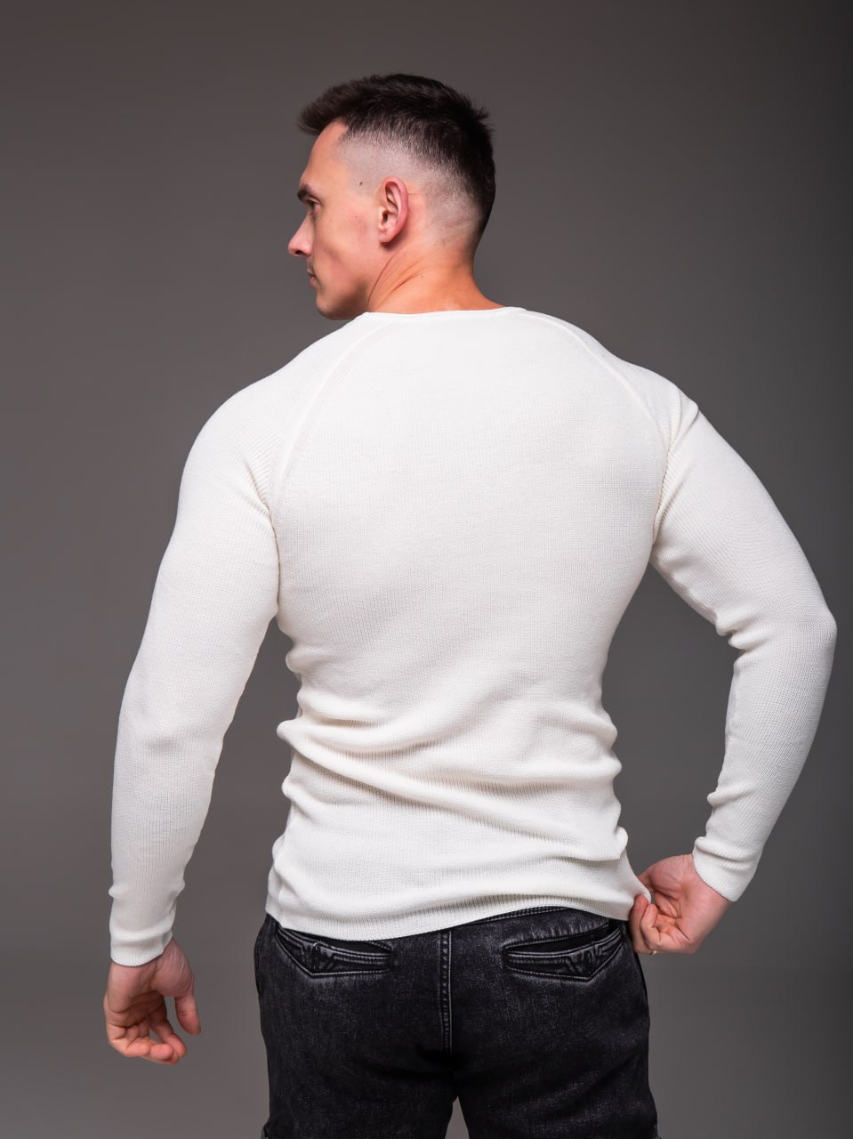 Чоловічий Класичний Білий Светр Приталеного Крою