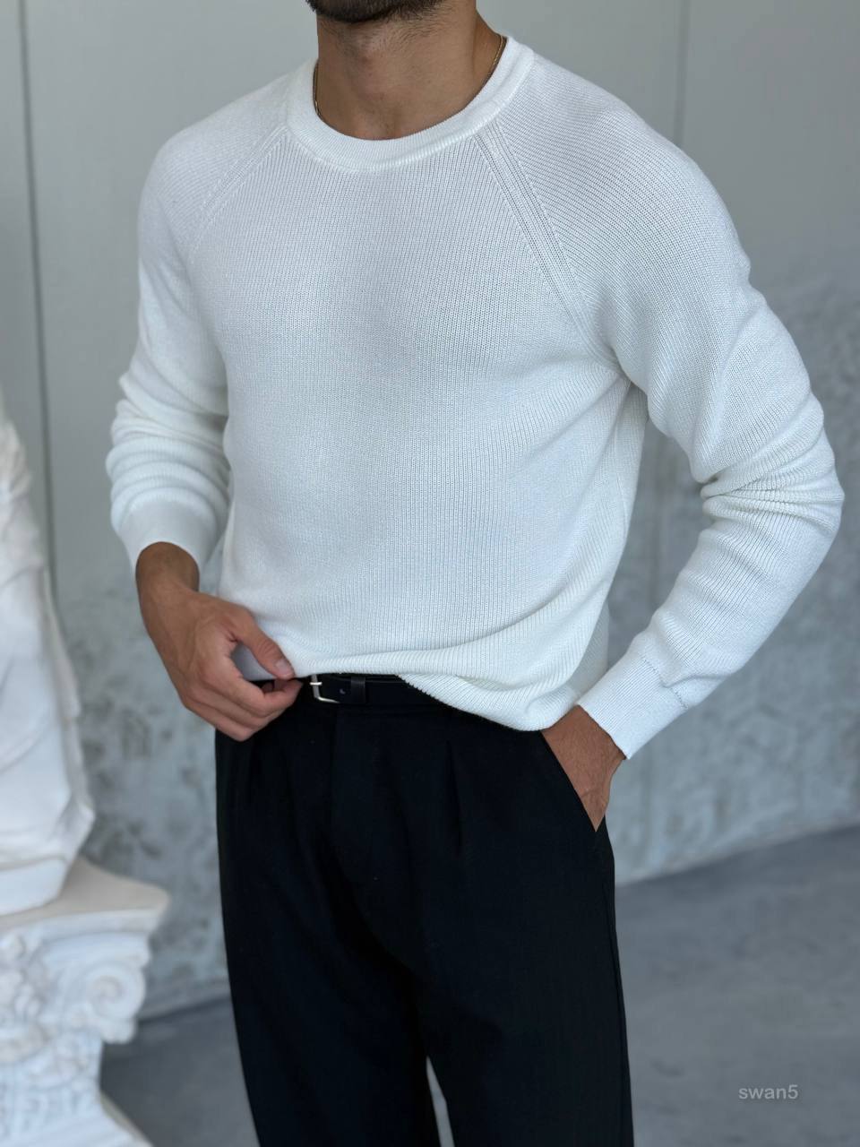Чоловічий Класичний Білий Светр з Круглим Вирізом – Базовий Джемпер