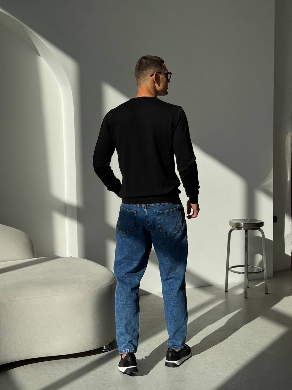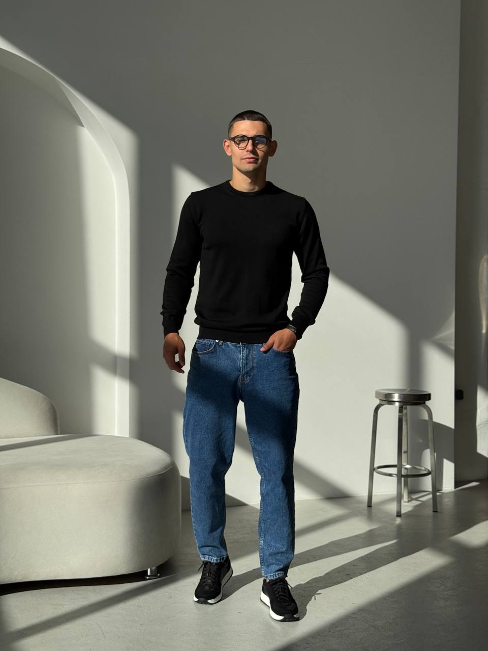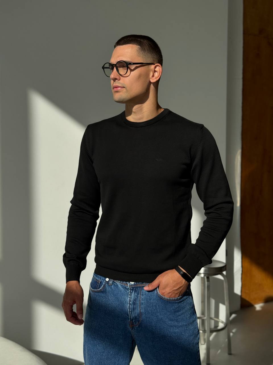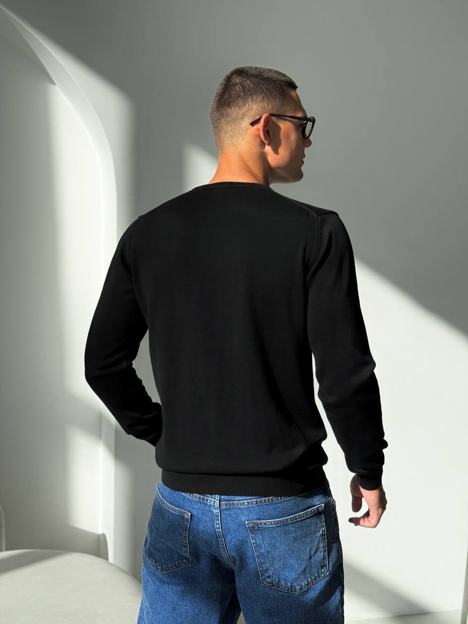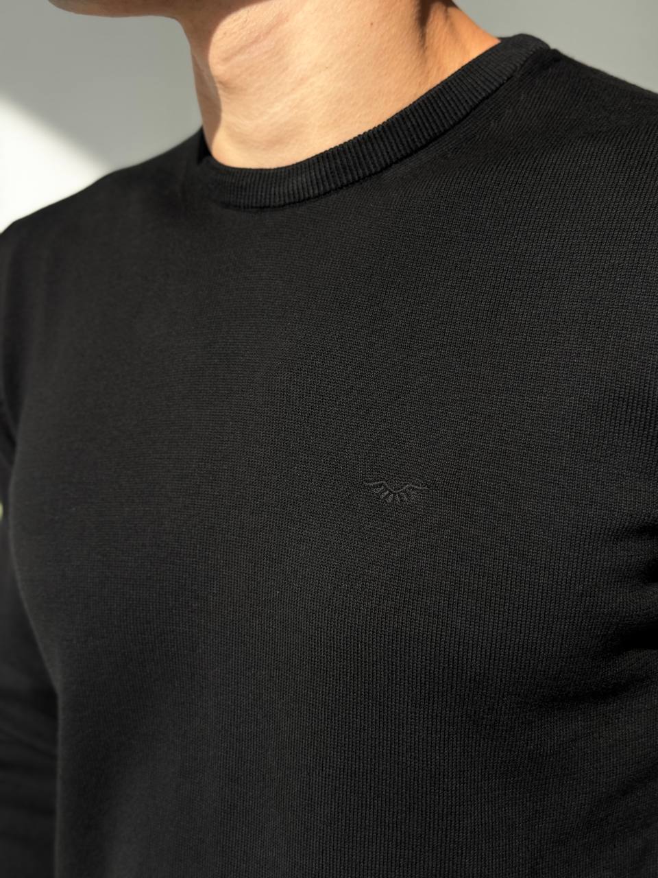 Чоловічий Класичний Чорний Светр з Круглим Вирізом та Маленькою Вишивкою