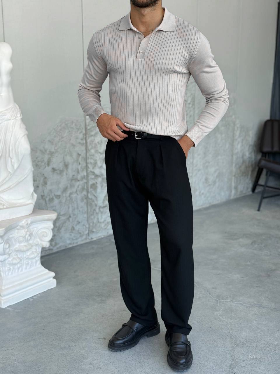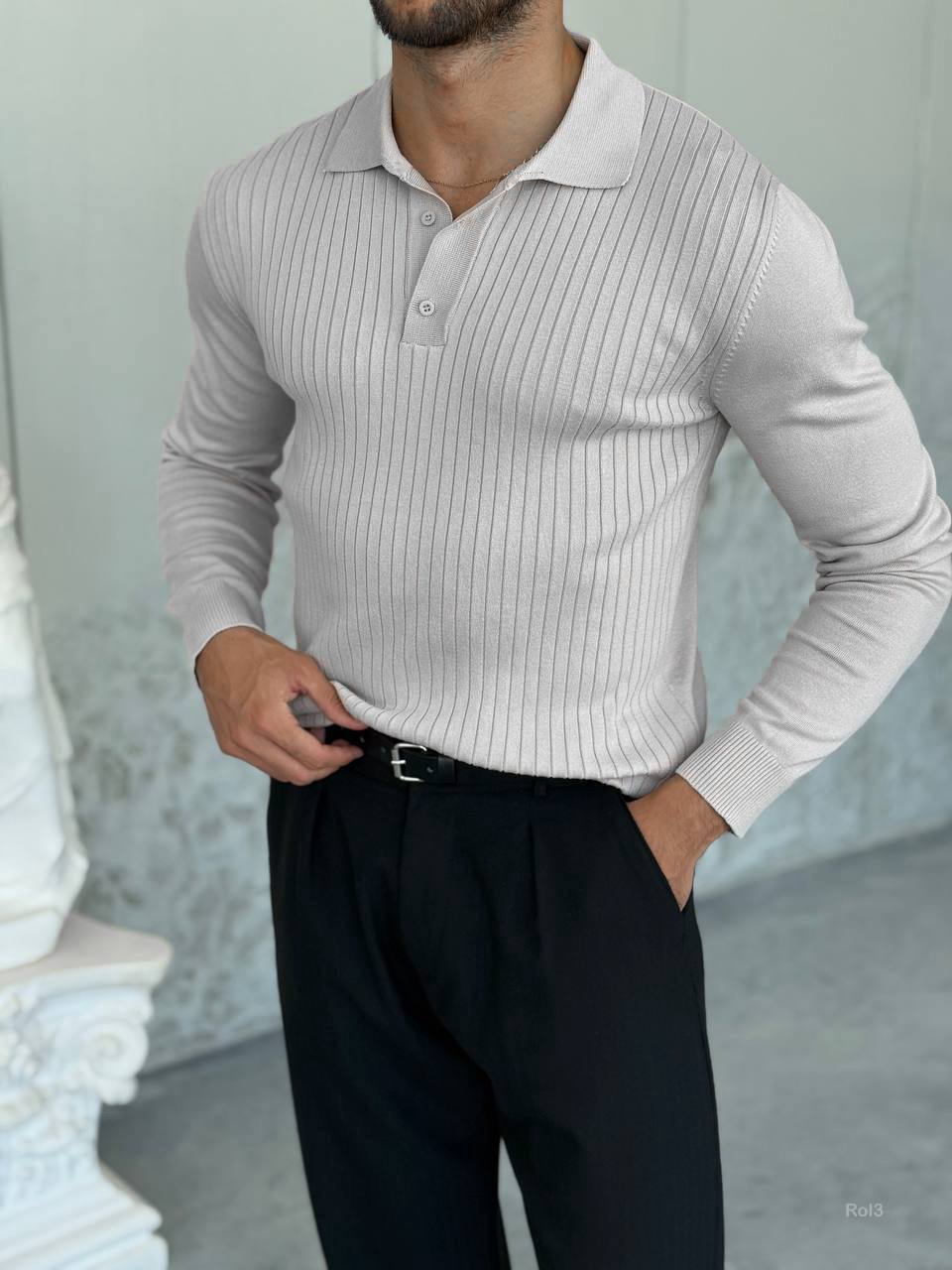 Чоловічий Класичний Сірий Светр Поло в Широкий Рубчик