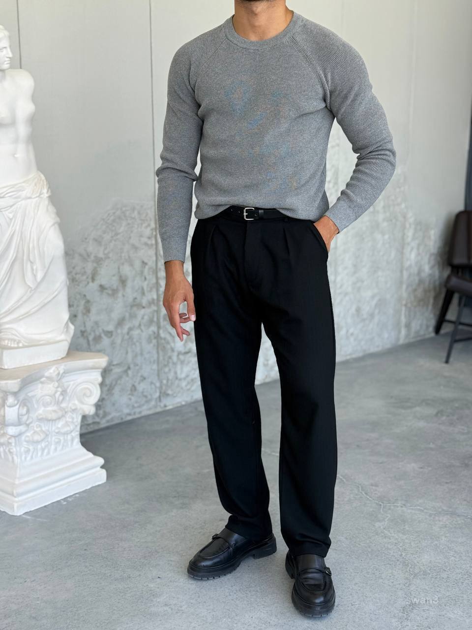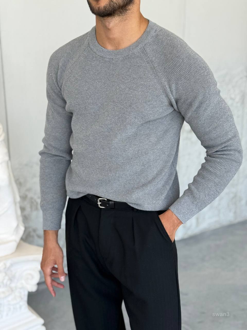 Чоловічий Класичний Сірий Светр з Круглим Вирізом – Базовий Джемпер