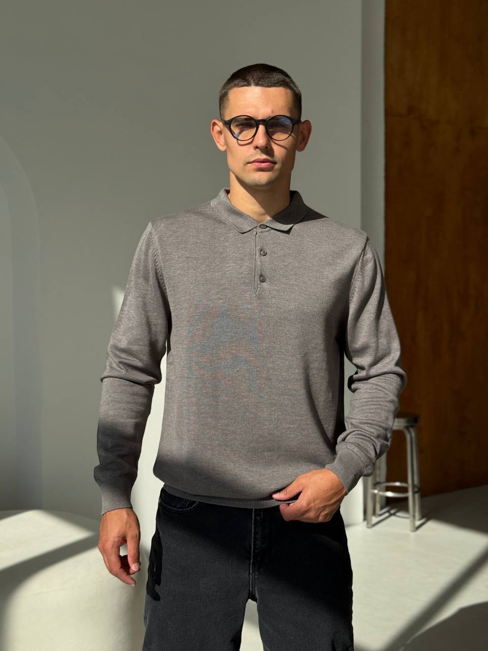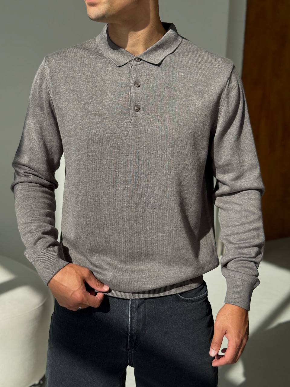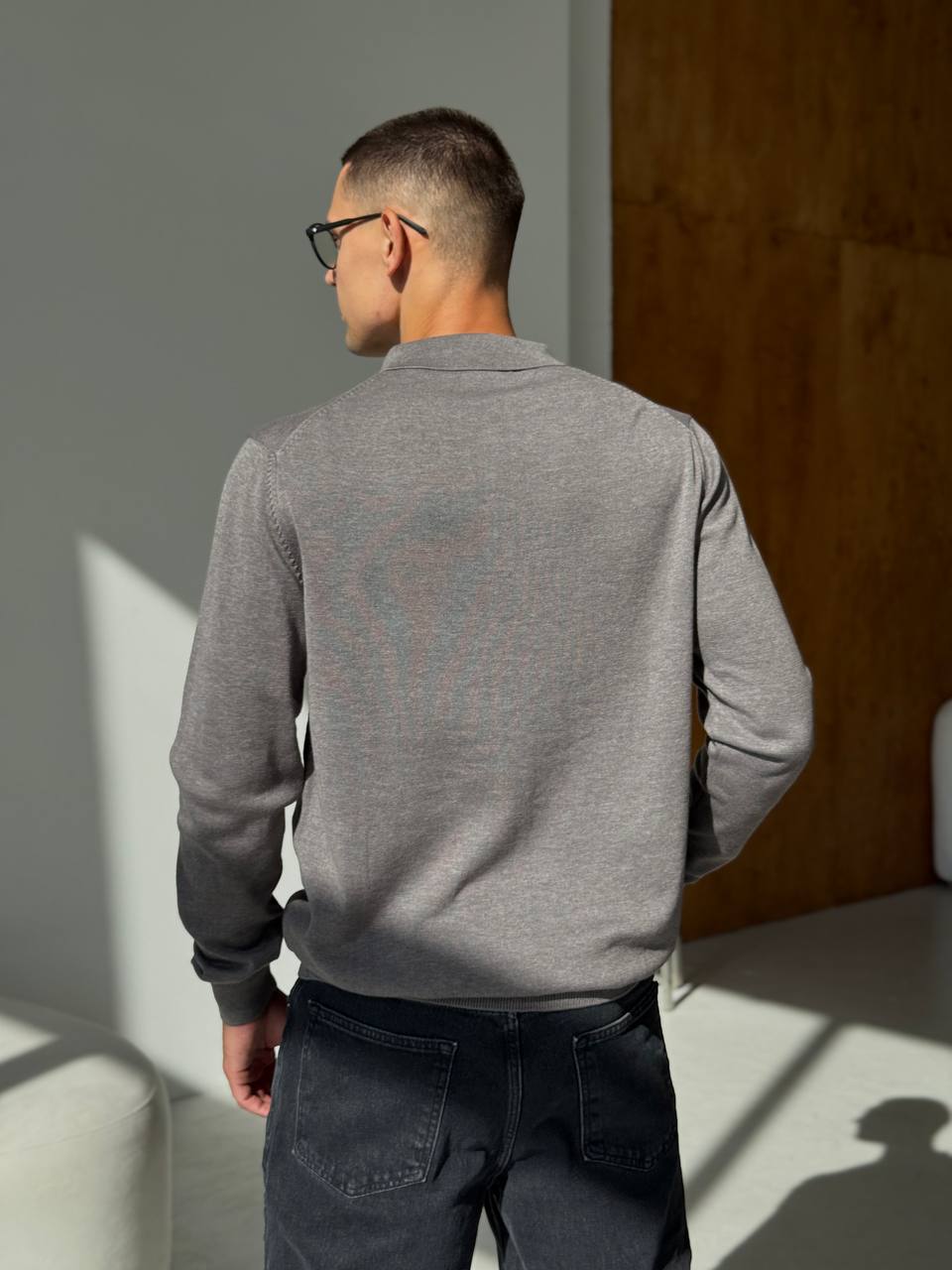 Чоловічий Класичний Темно-Сірий Светр з Коміром Поло