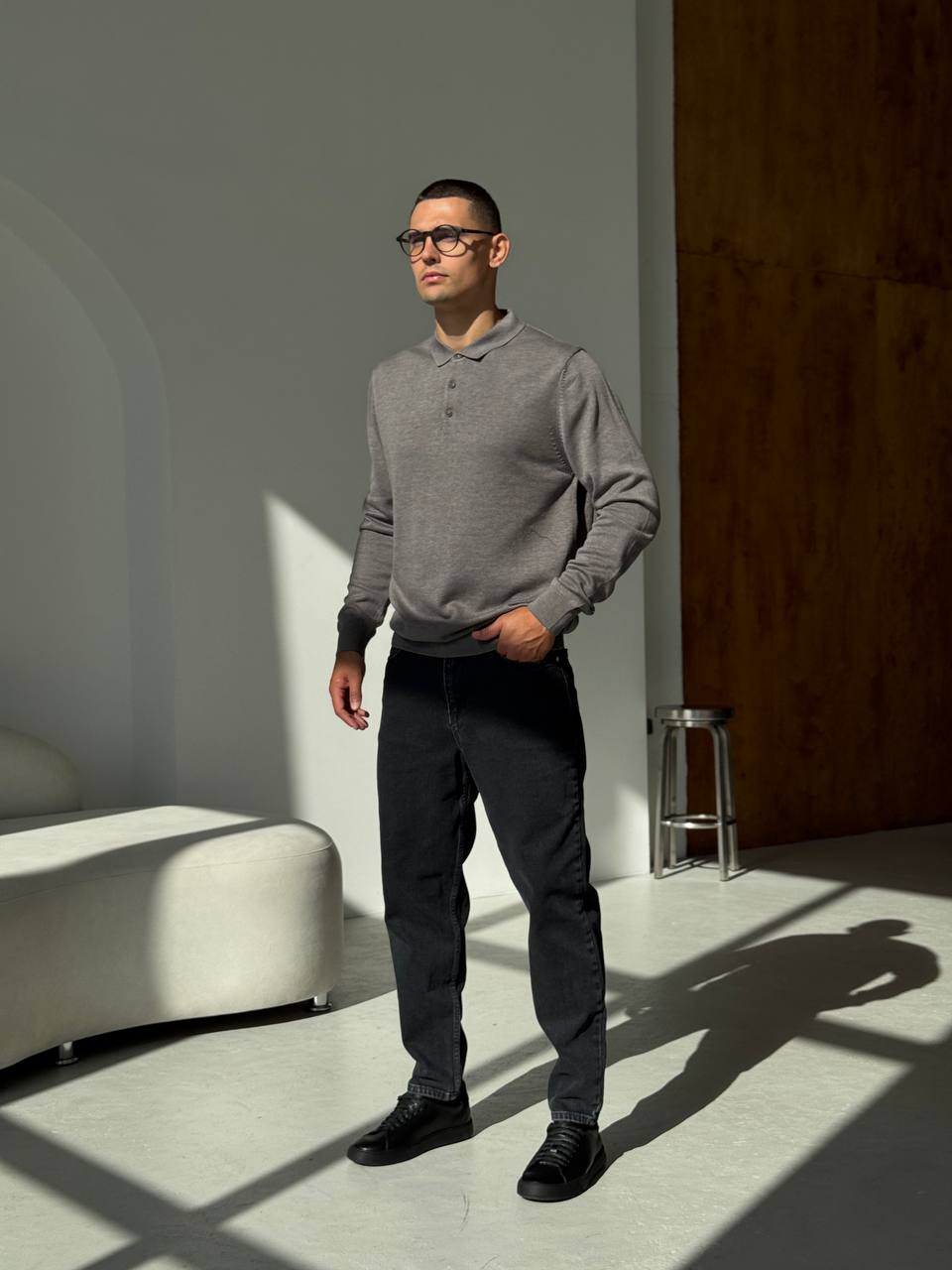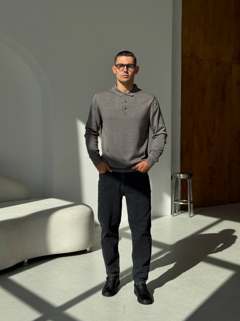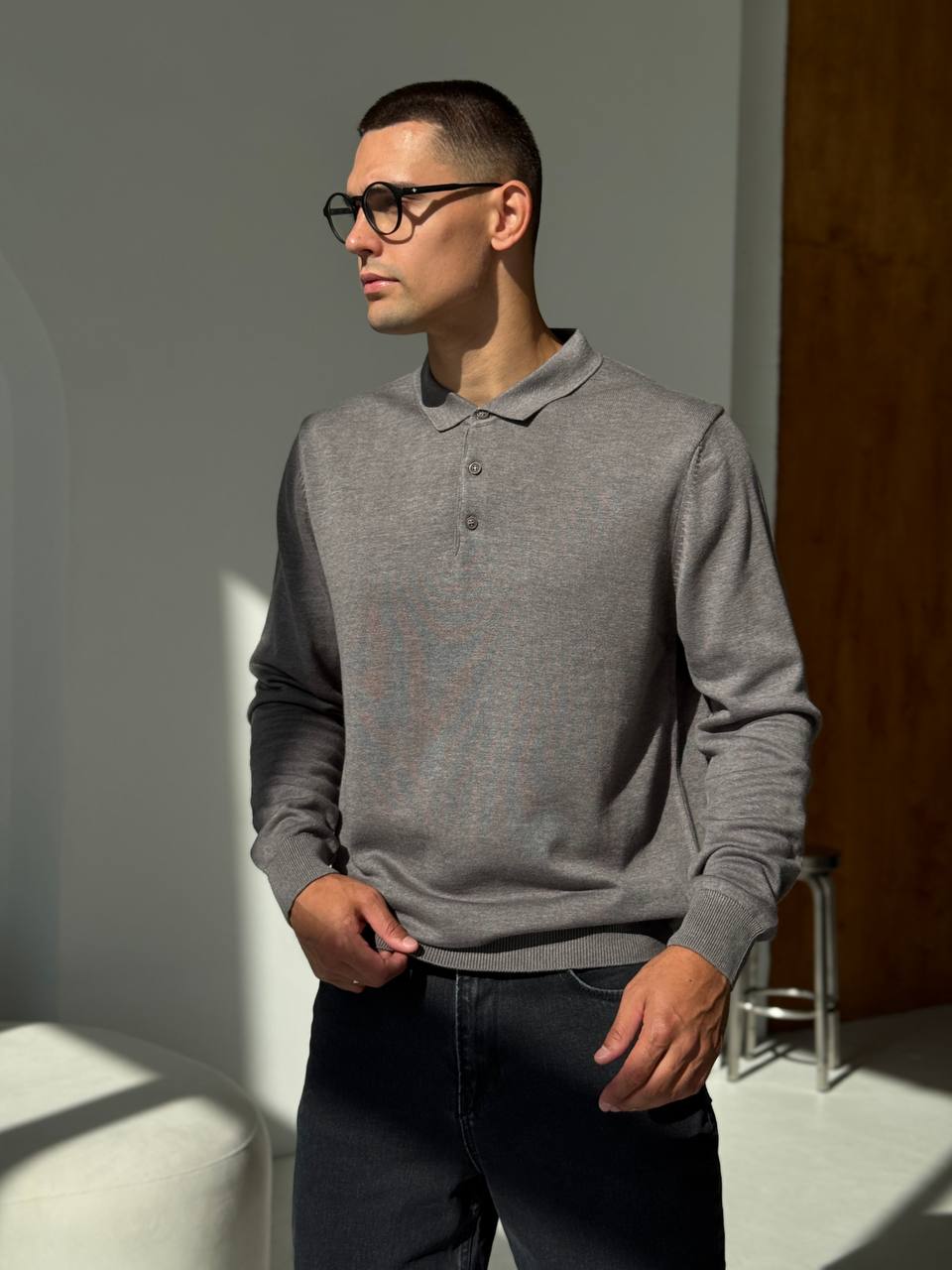 Чоловічий Класичний Темно-Сірий Светр з Коміром Поло