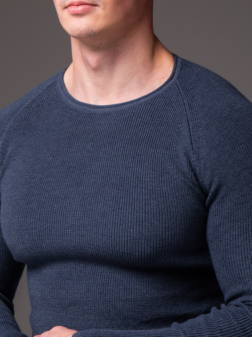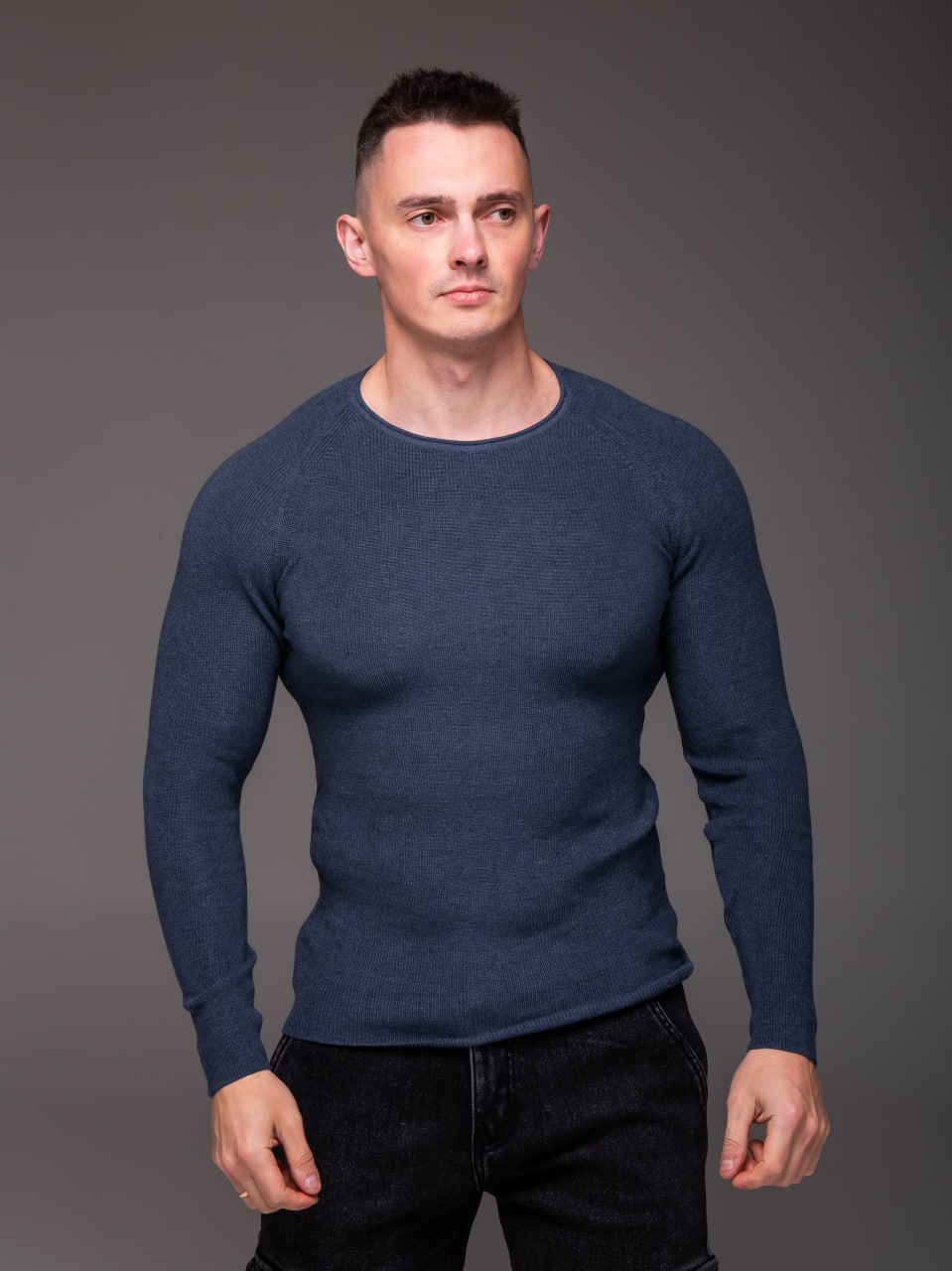 Чоловічий Класичний Темно-Синій Светр Приталеного Крою