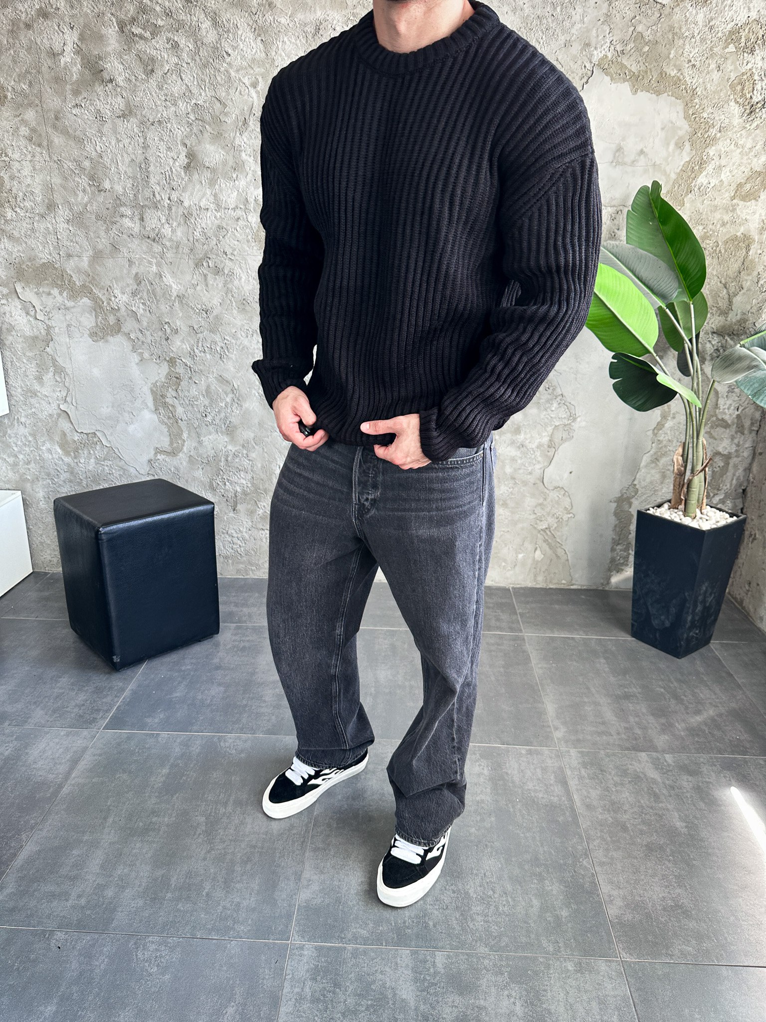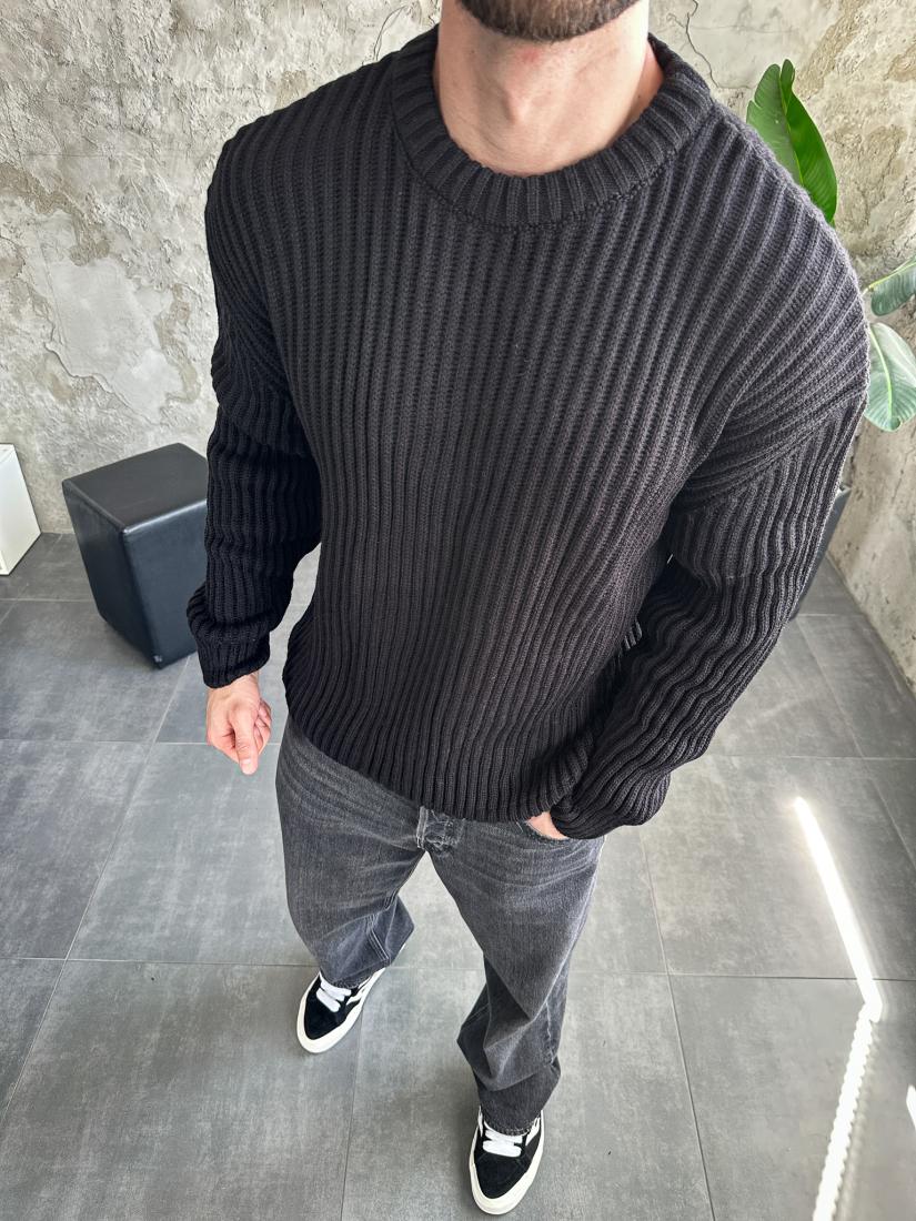 Чоловічий Теплий Базовий Графітовий Светр Вільного Крою зі Спущеним Плечем
