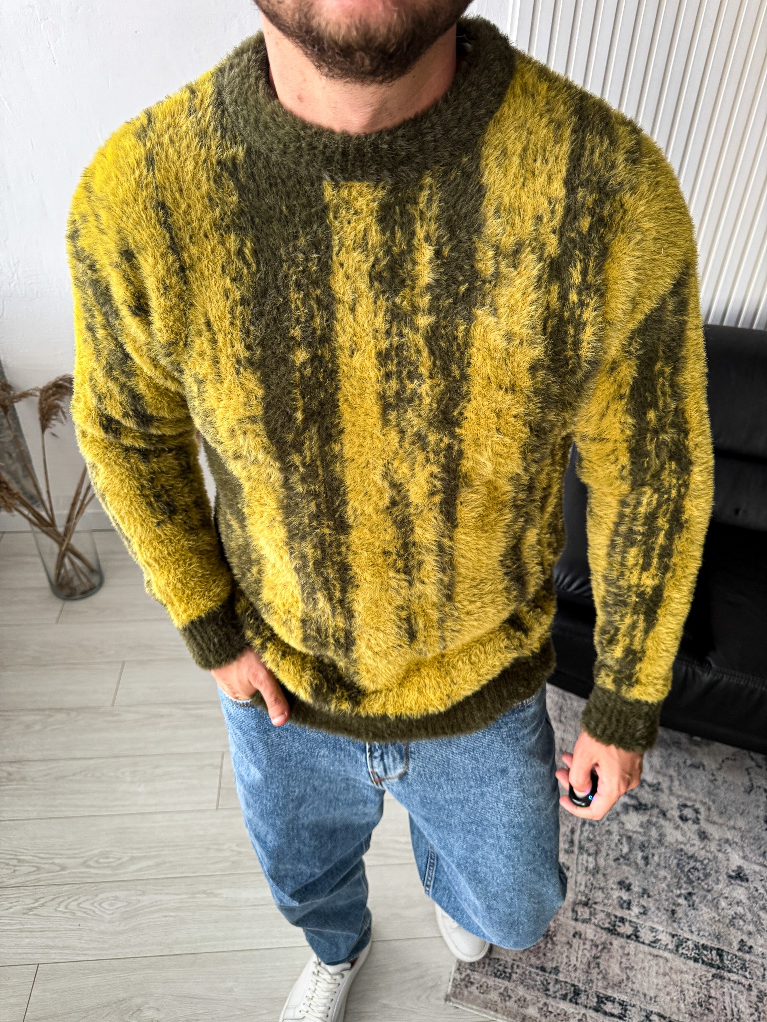 Чоловічий Теплий Пухнастий Гірчичний Светр з Візерунком