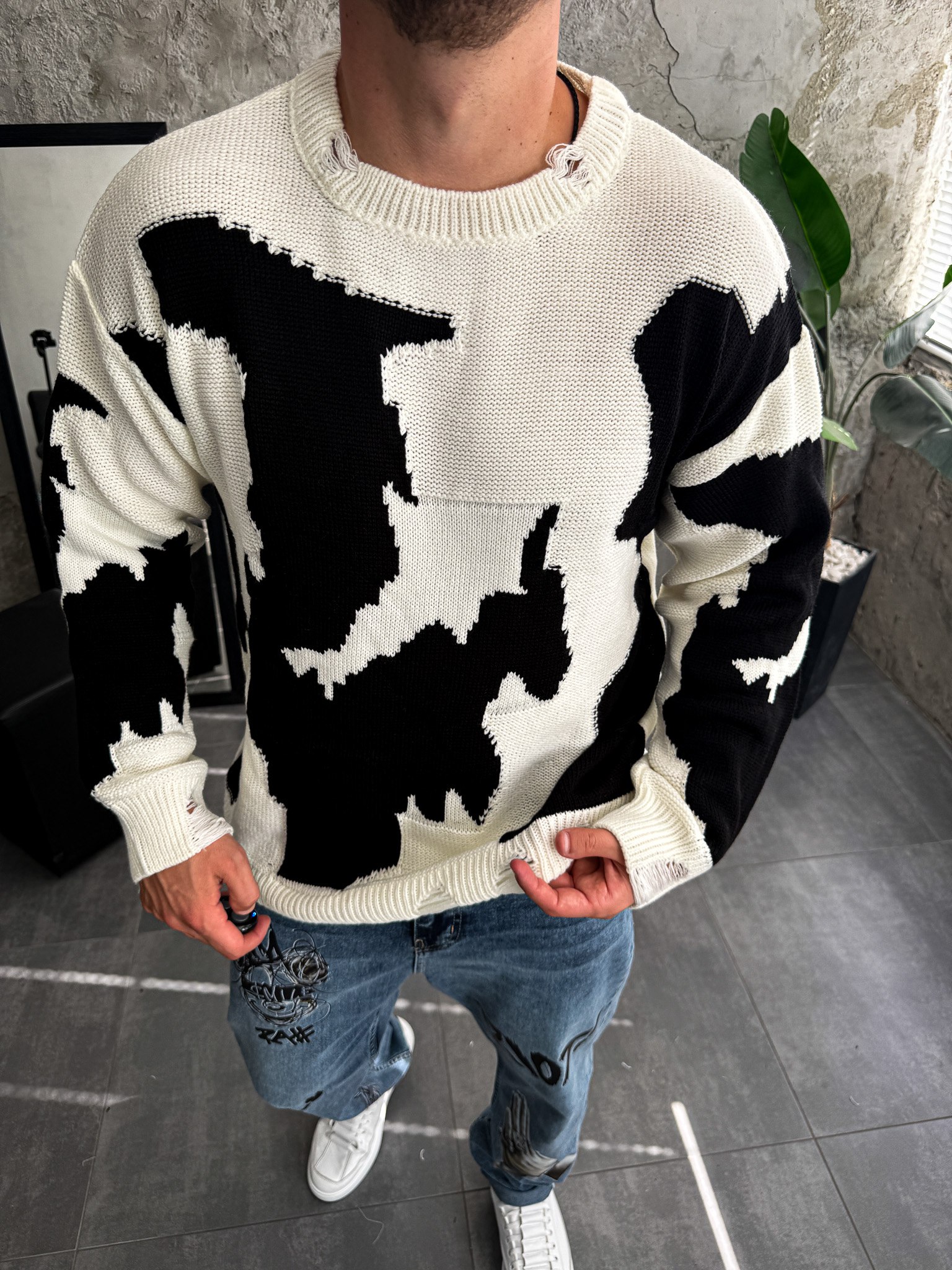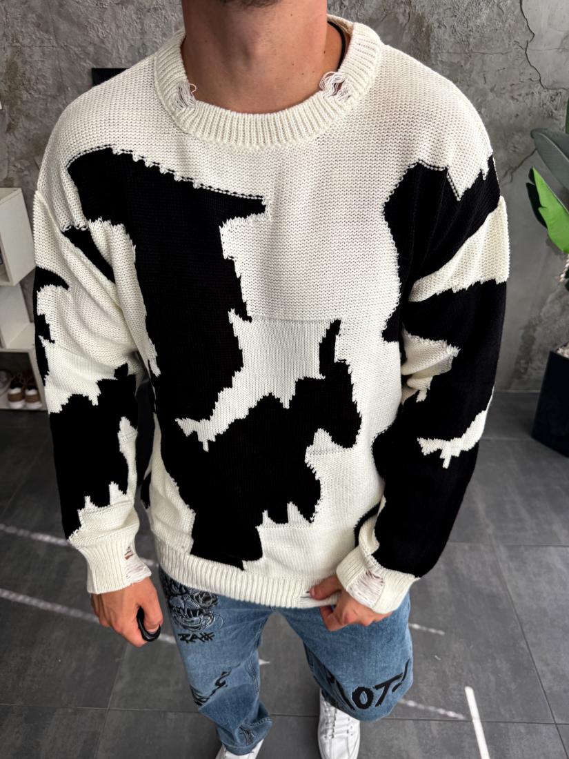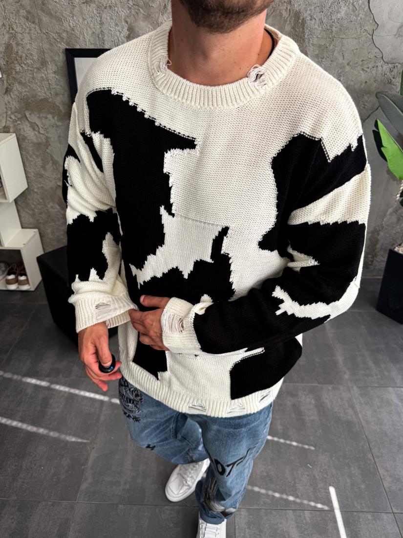 Чоловічий Вільний Біло-Чорний Светр Оверсайз в Принт
