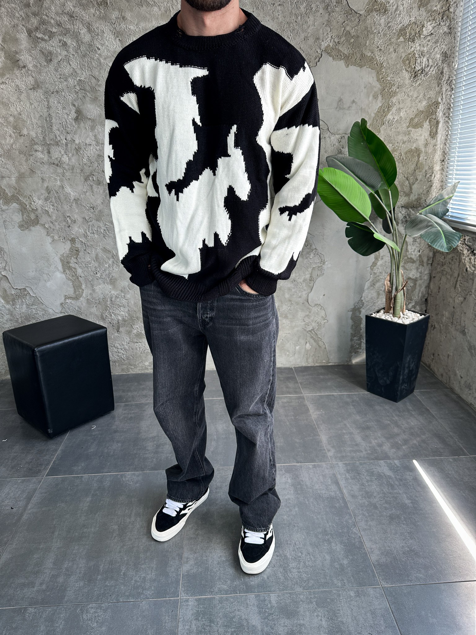 Чоловічий Вільний Чорно-Білий Светр Оверсайз в Принт