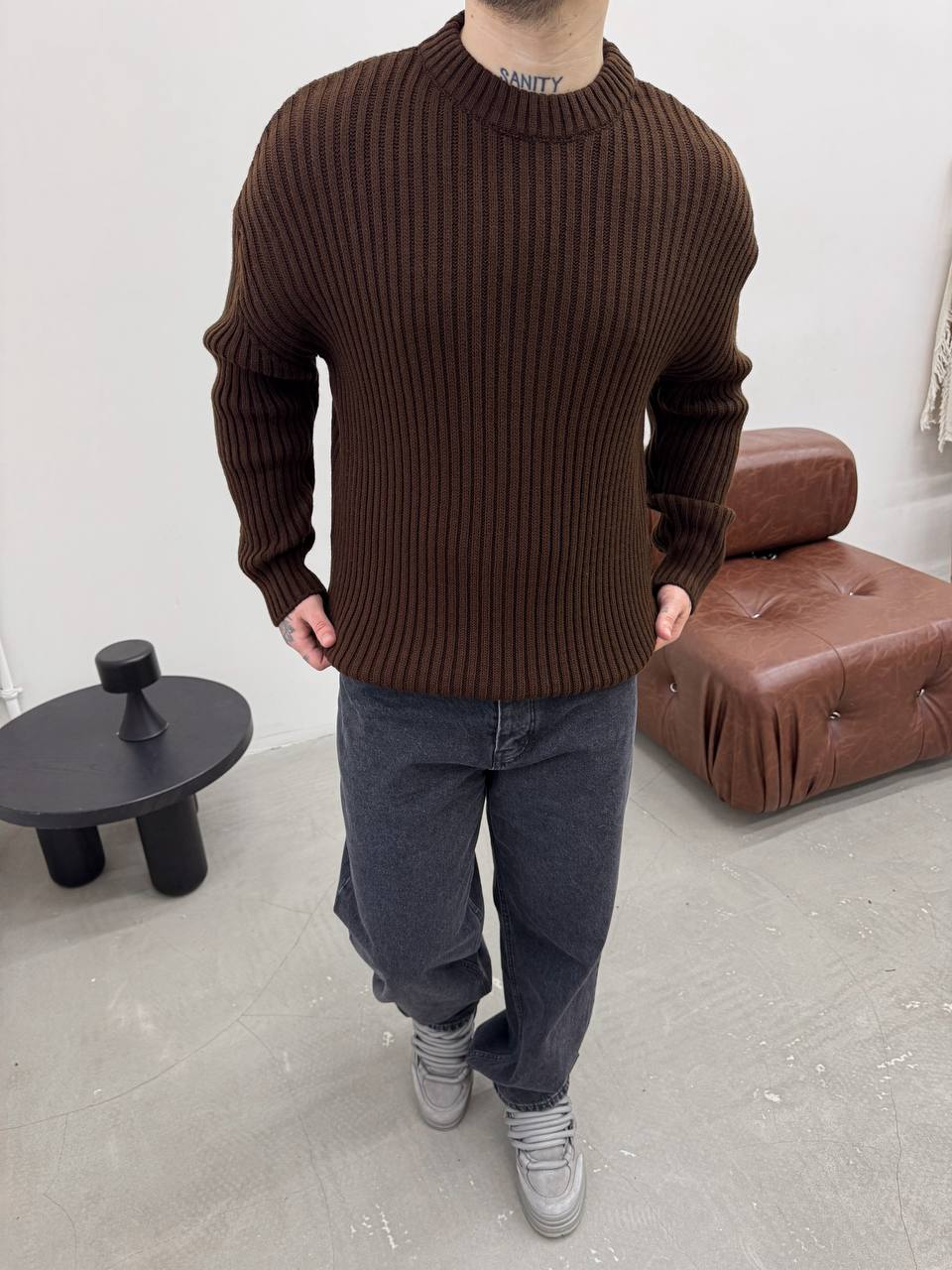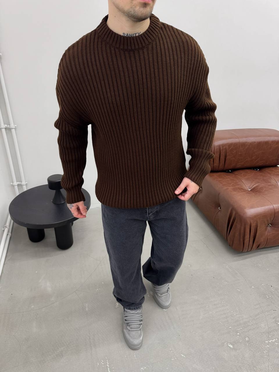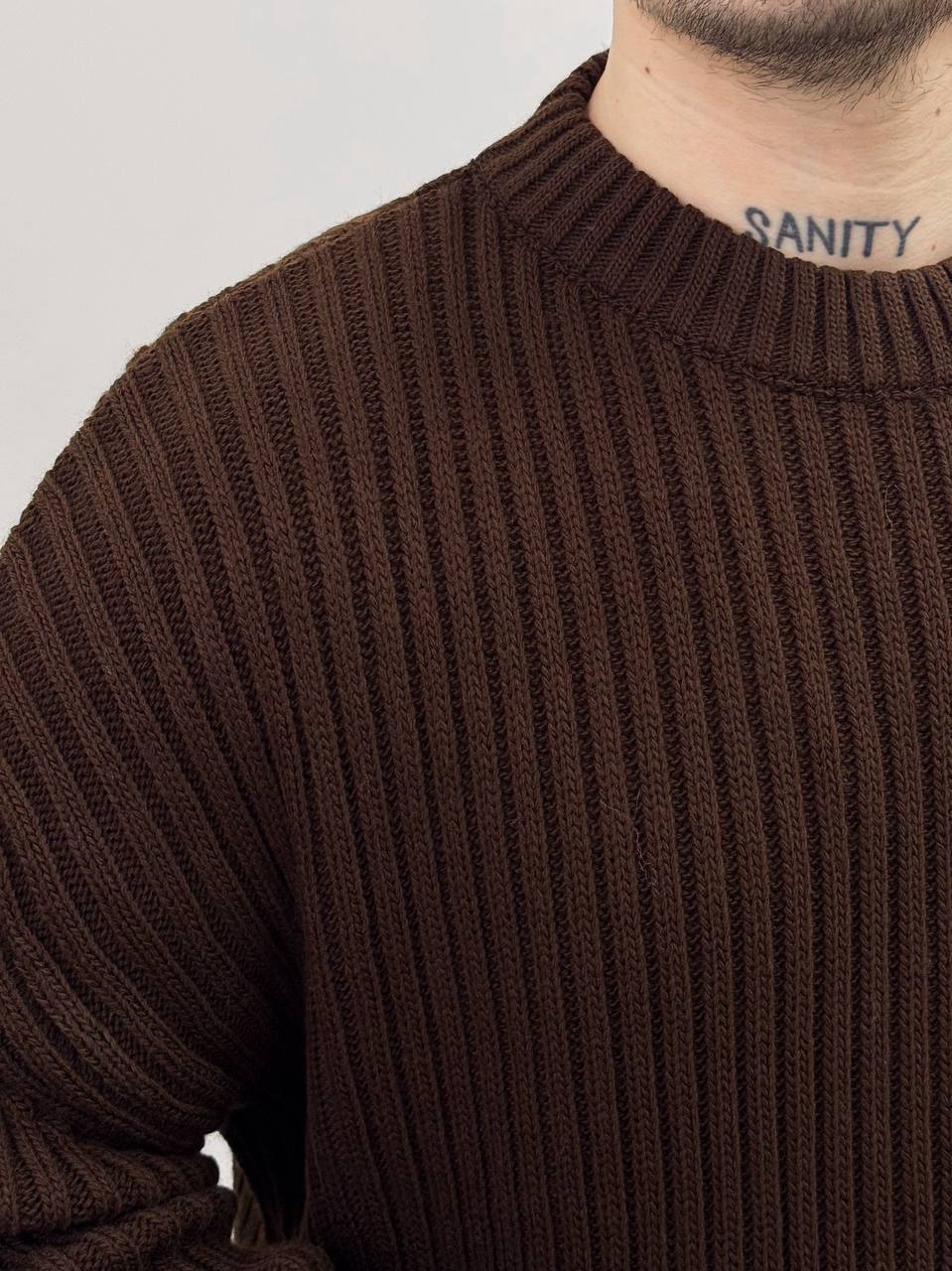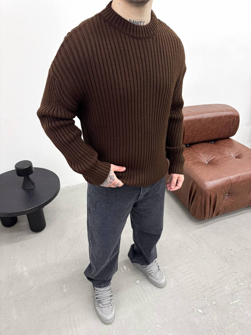 Чоловічий В’язаний Коричневий Светр Джемпер Оверсайз з Круглим Вирізом