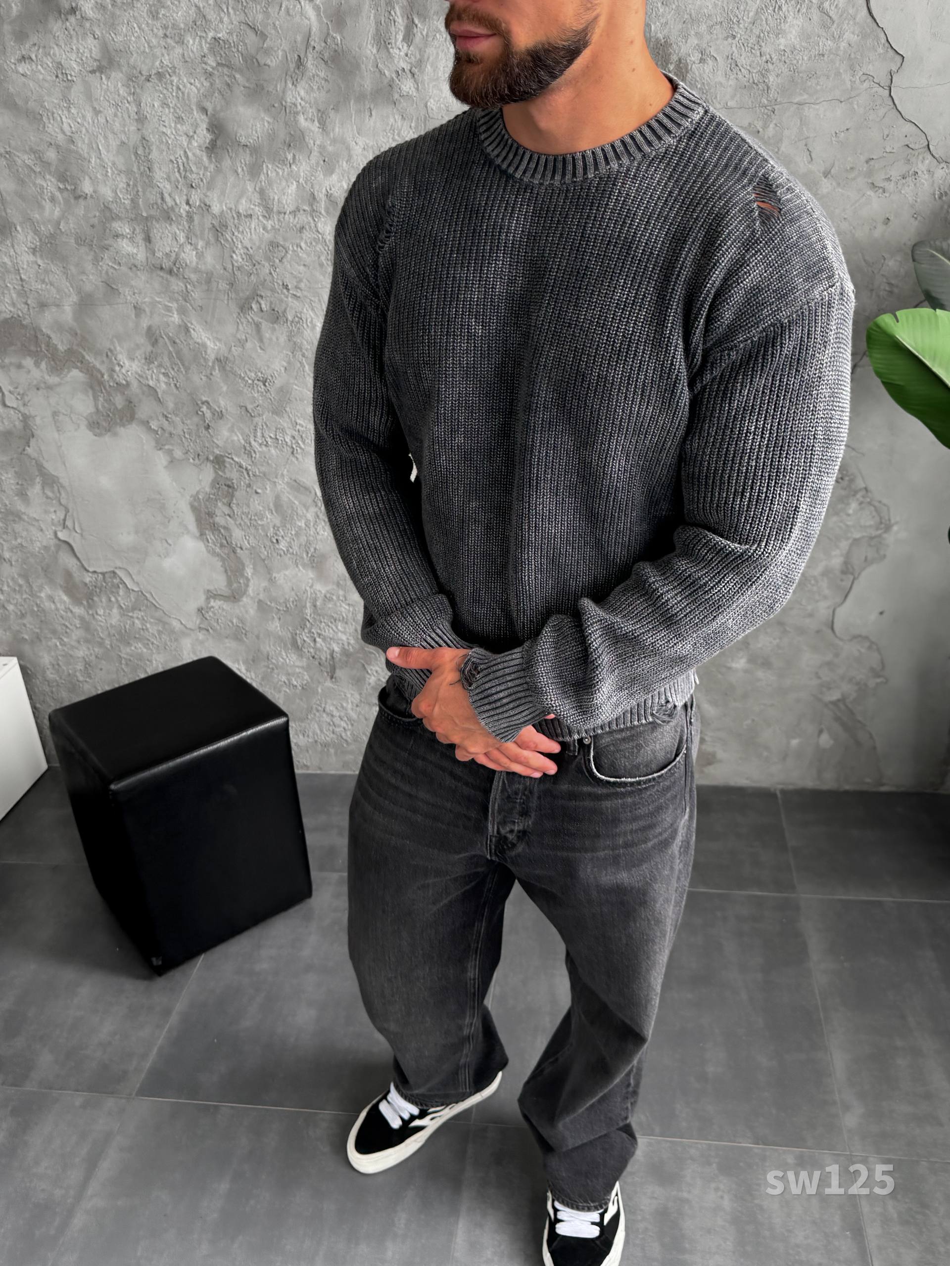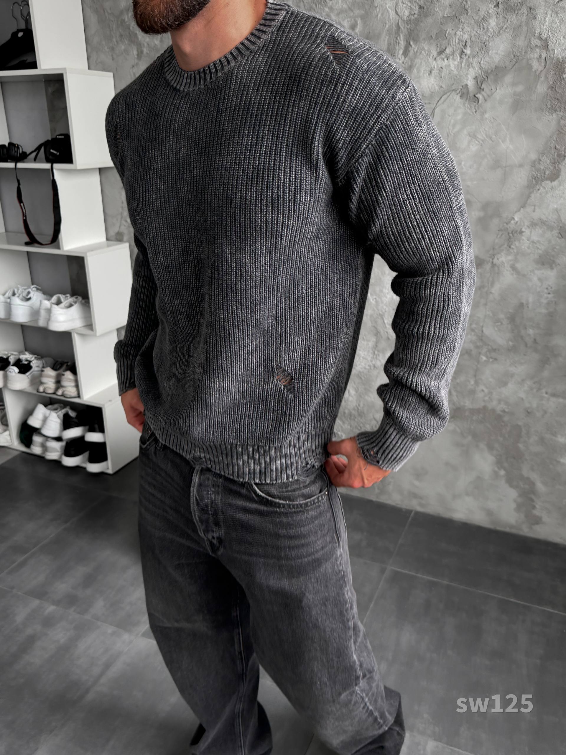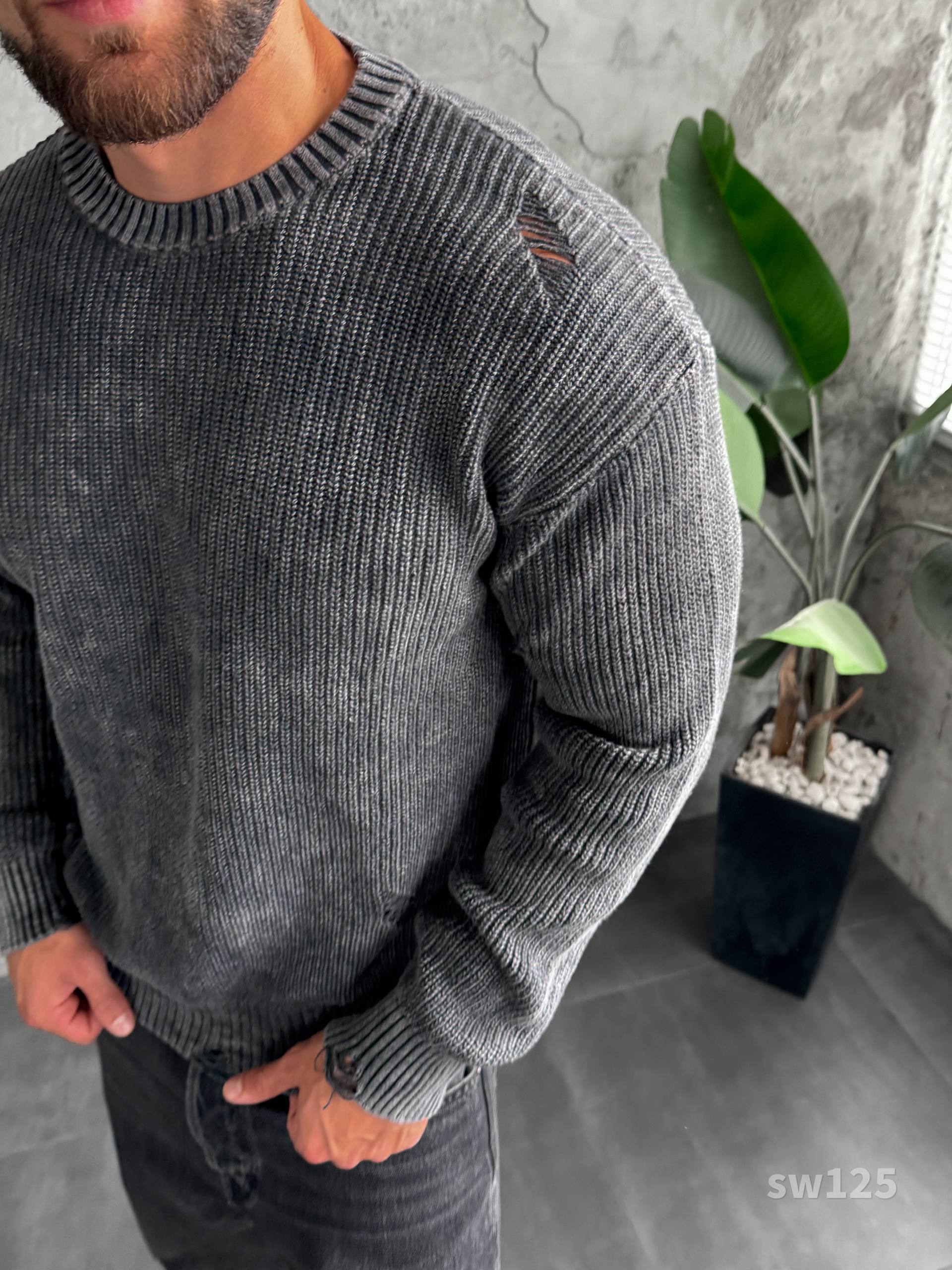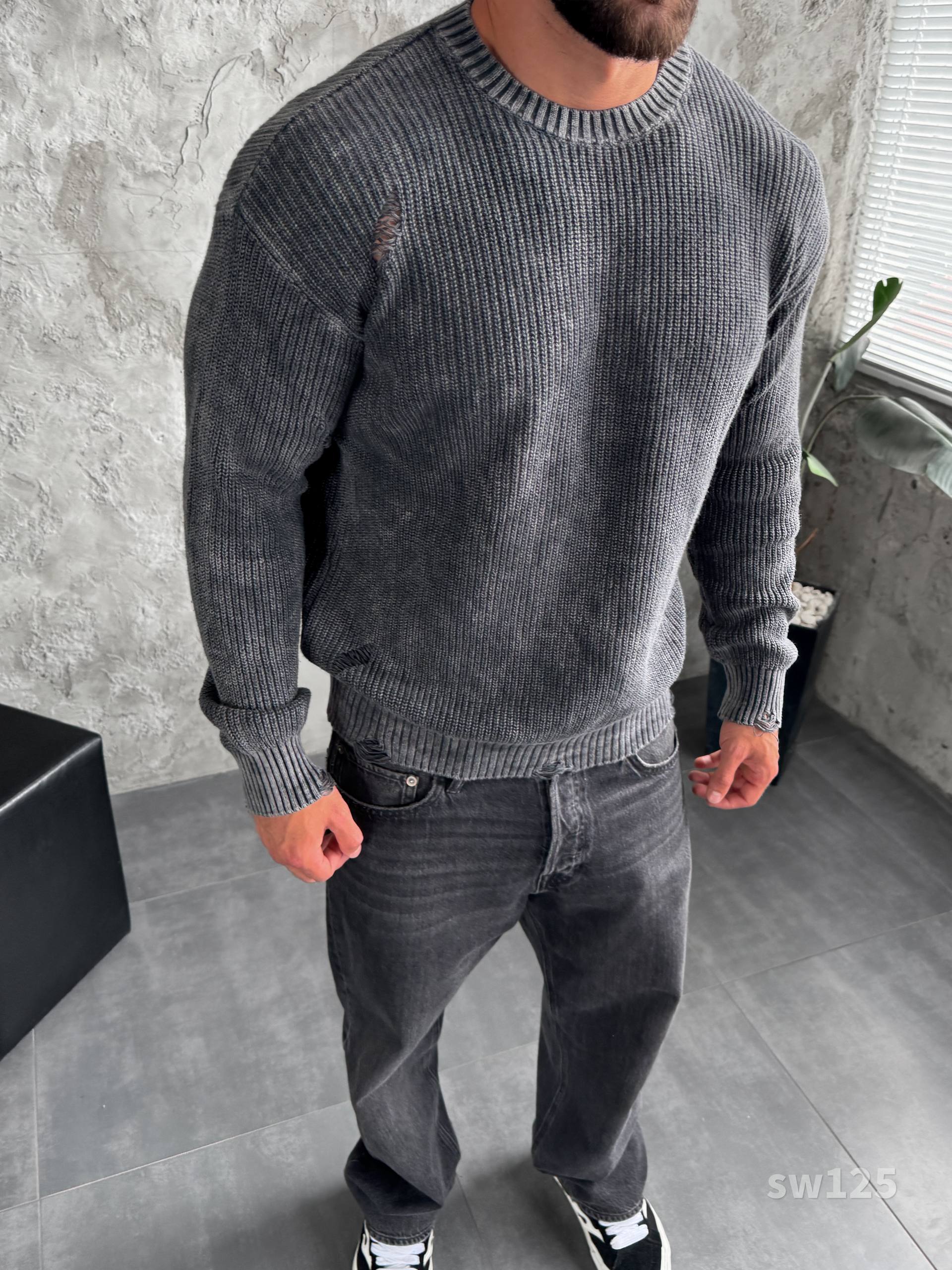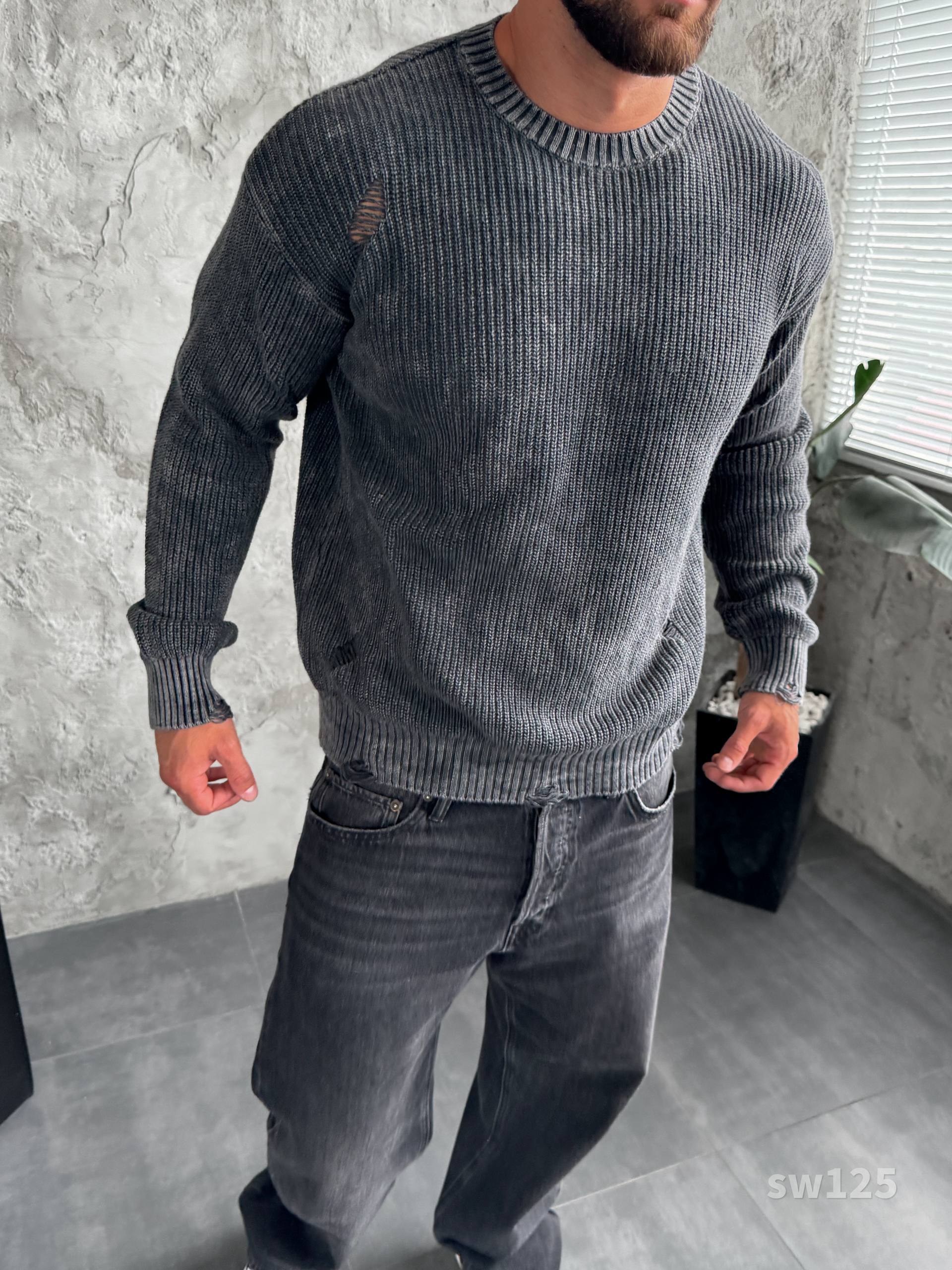 Чоловічий В’язаний Рваний Графітовий Светр Варений Вільного Крою