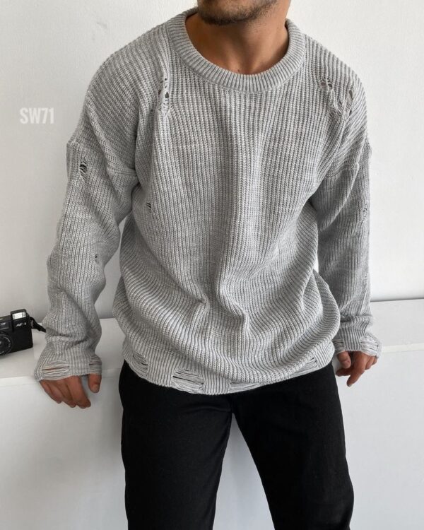 Чоловічий В’язаний Рваний Сірий Светр – Кофта Вільного Крою