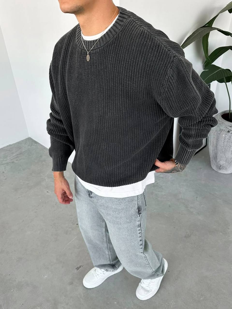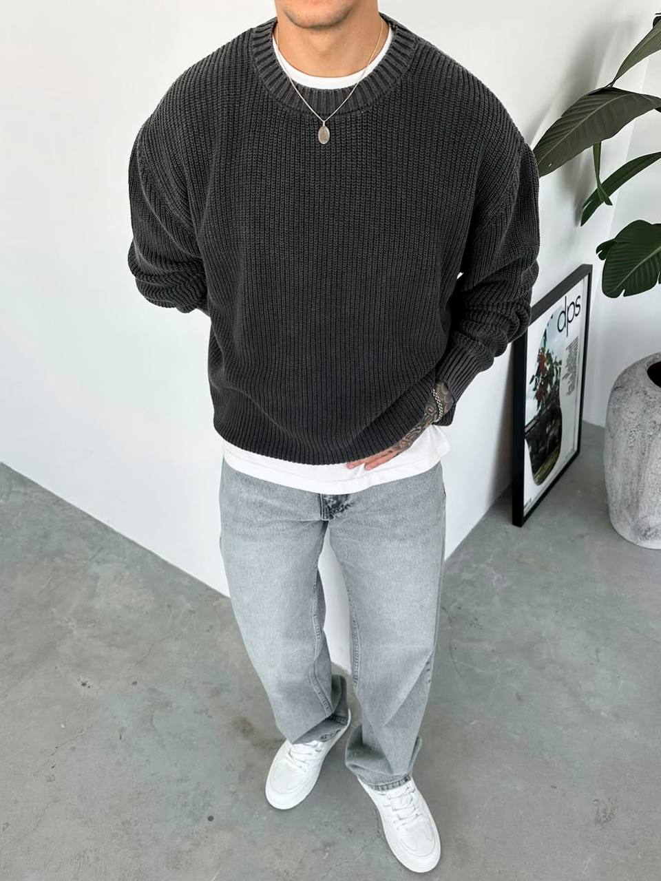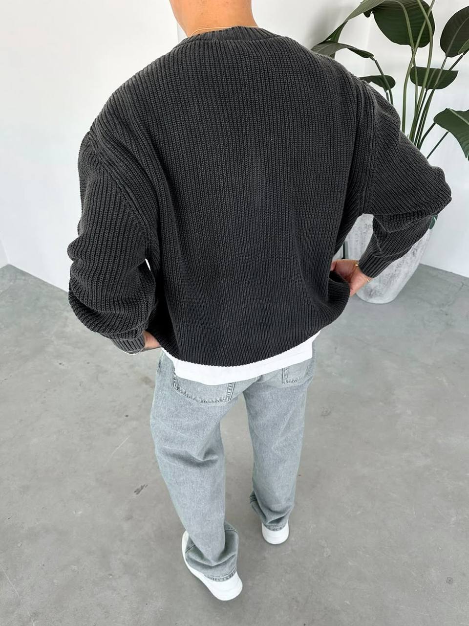Чоловічий В’язаний Темно-Сірий Светр Варений Оверсайз