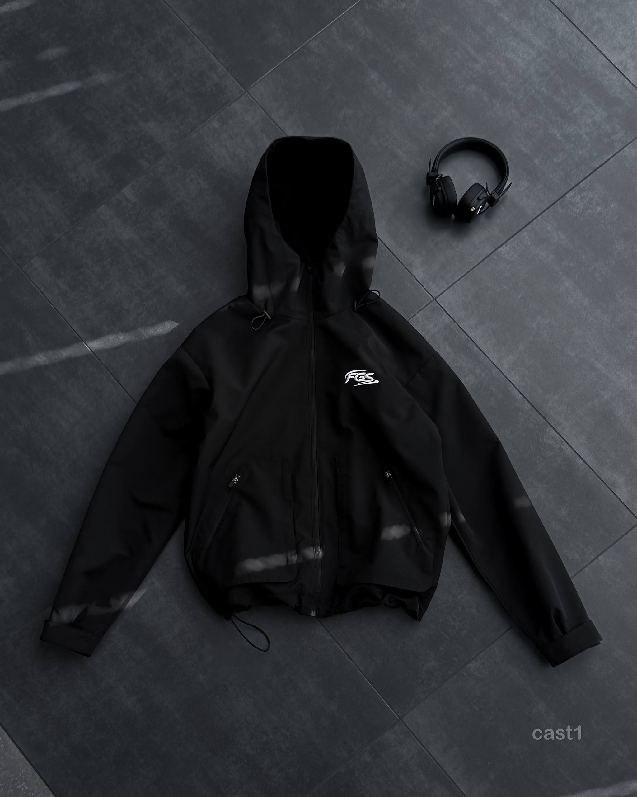 Чоловіча Чорна Вітровка – Водовідштовхувальна з Капюшоном та Липучками на Рукавах