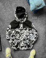 Чоловіча Чорно-Біла Вітровка в Прінт Панди – Вільна з Капюшоном та Манжетами на Липучках