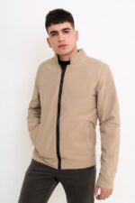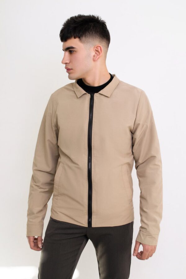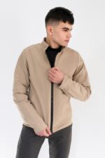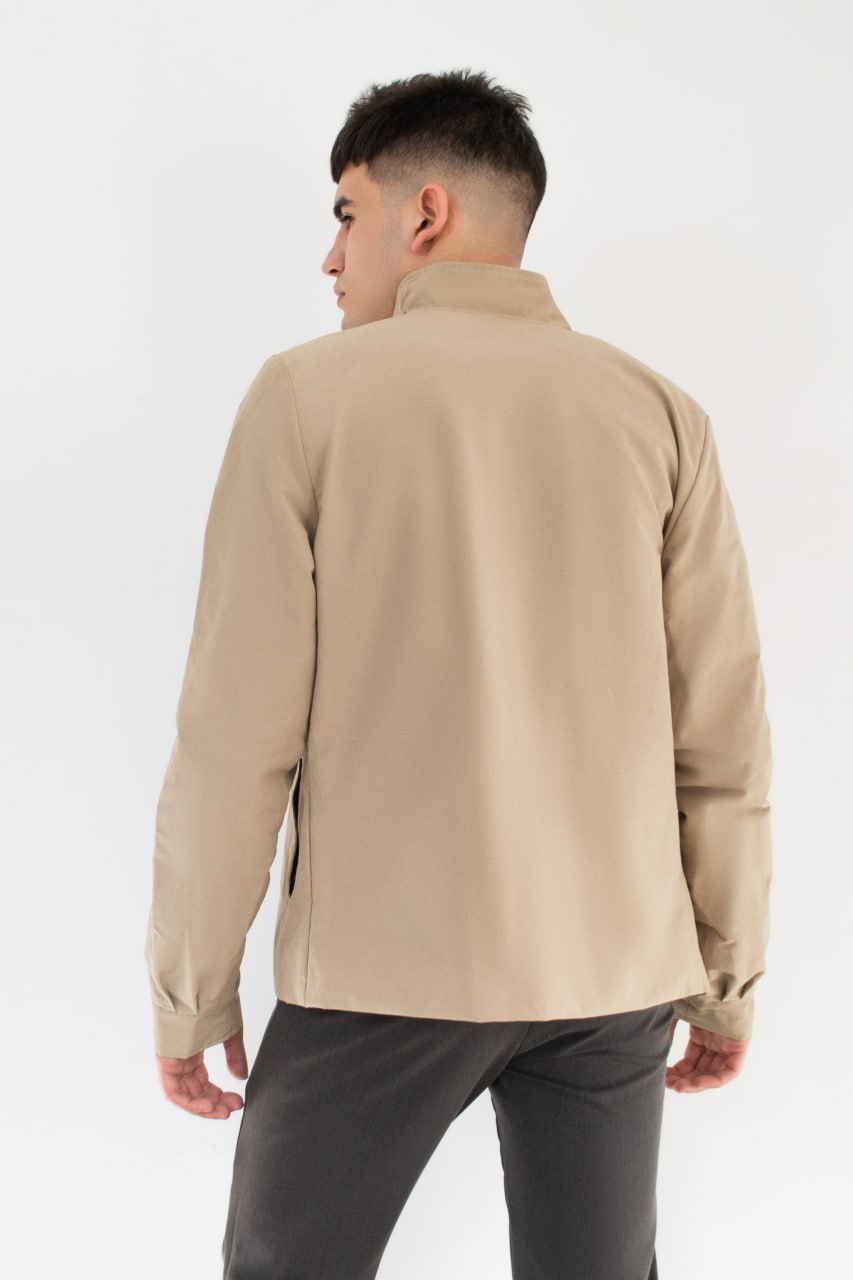 Чоловіча Класична Бежева Вітрівка Прямого Крою на Блискавці з Коміром Стійкою