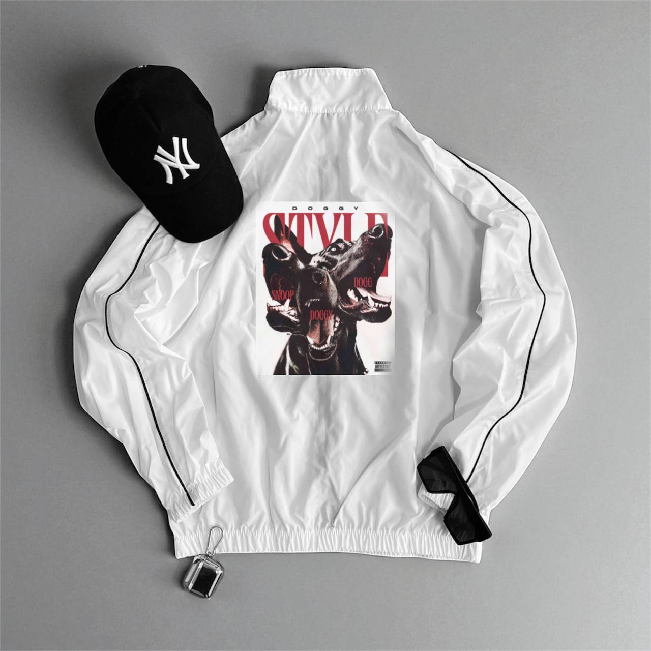 Чоловіча Вільна Біла Вітровка Олімпійка з Кантом та Принтом Доберманом на Спині