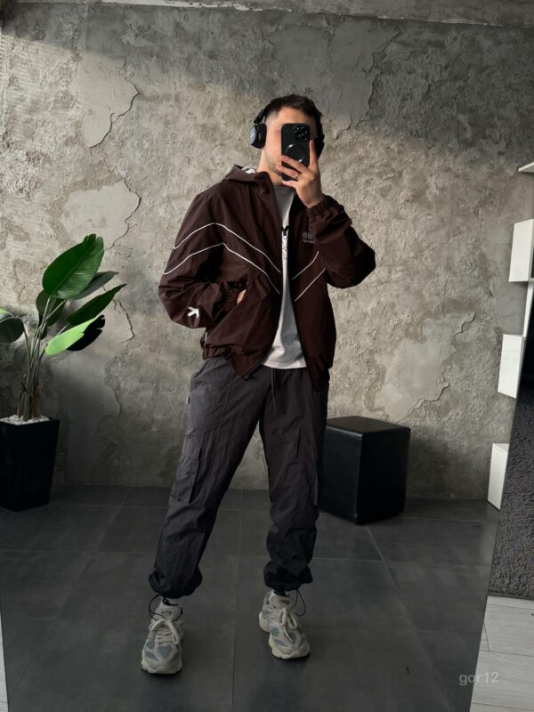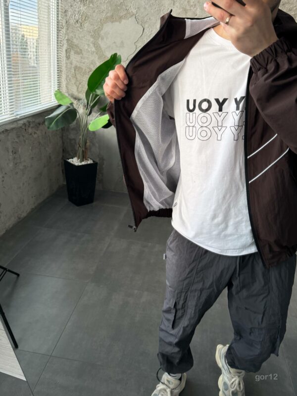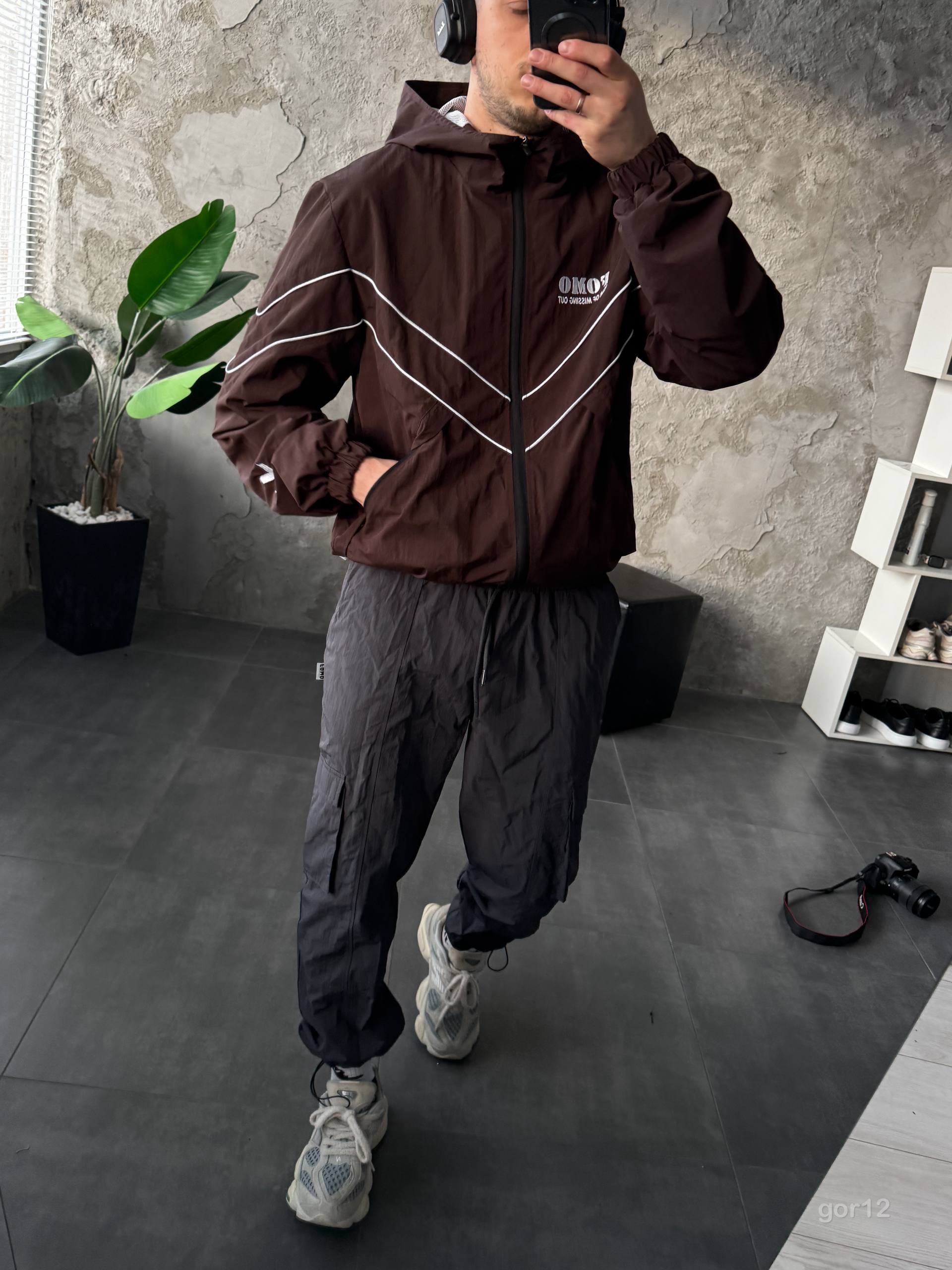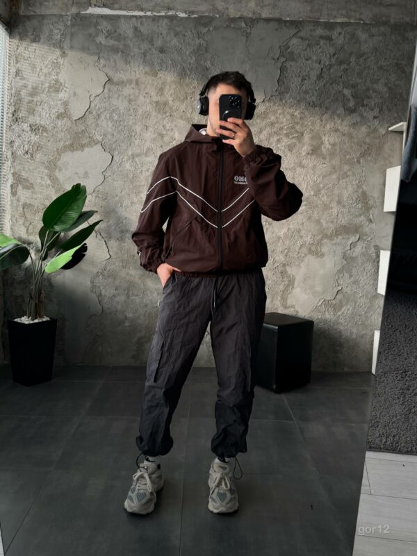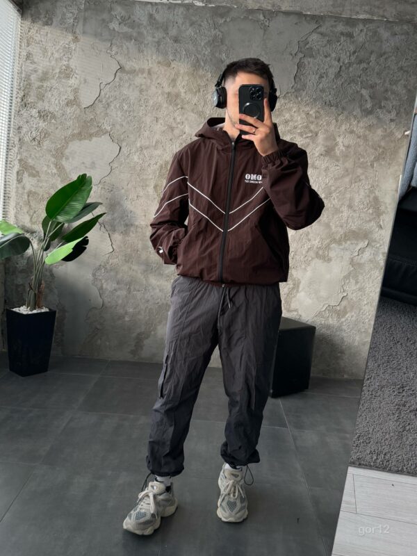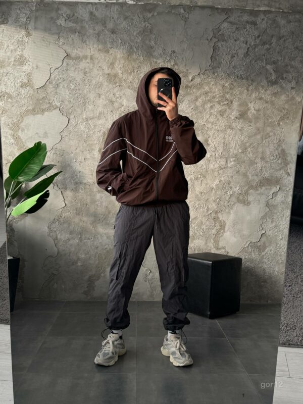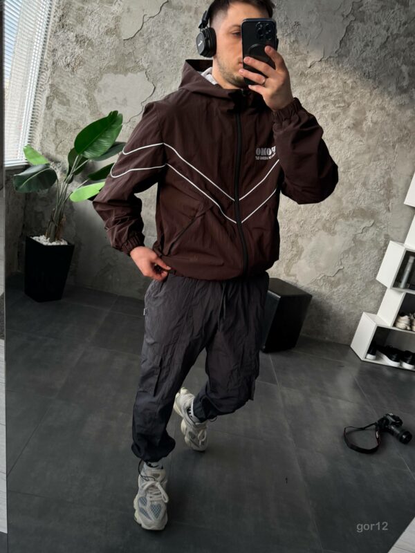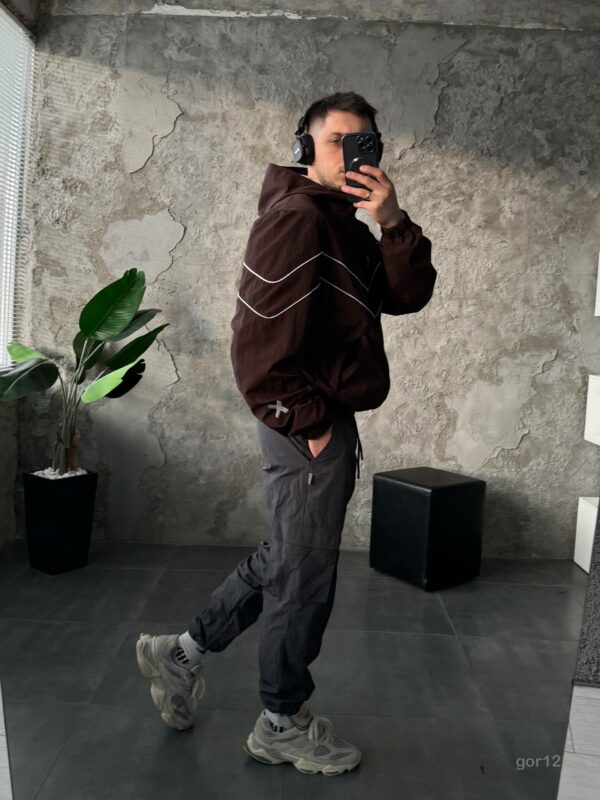 Чоловіча Вільна Коричнева Вітровка на Блискавці з Капюшоном та Білими Смужками