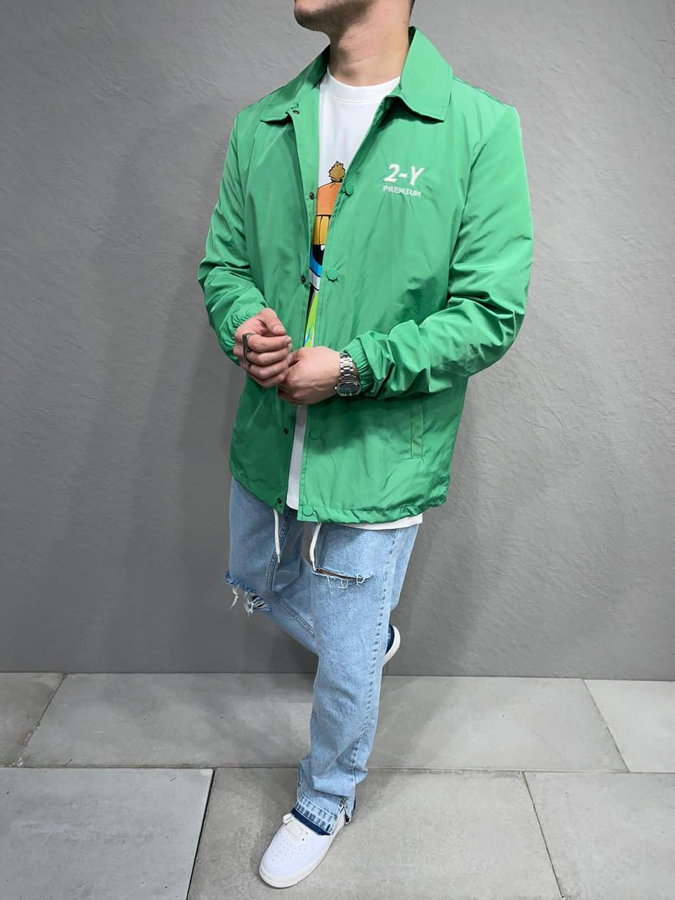 Чоловіча Зелена Вітрівка Вільна – Водовідштовхувальна на Кнопках Заклепках