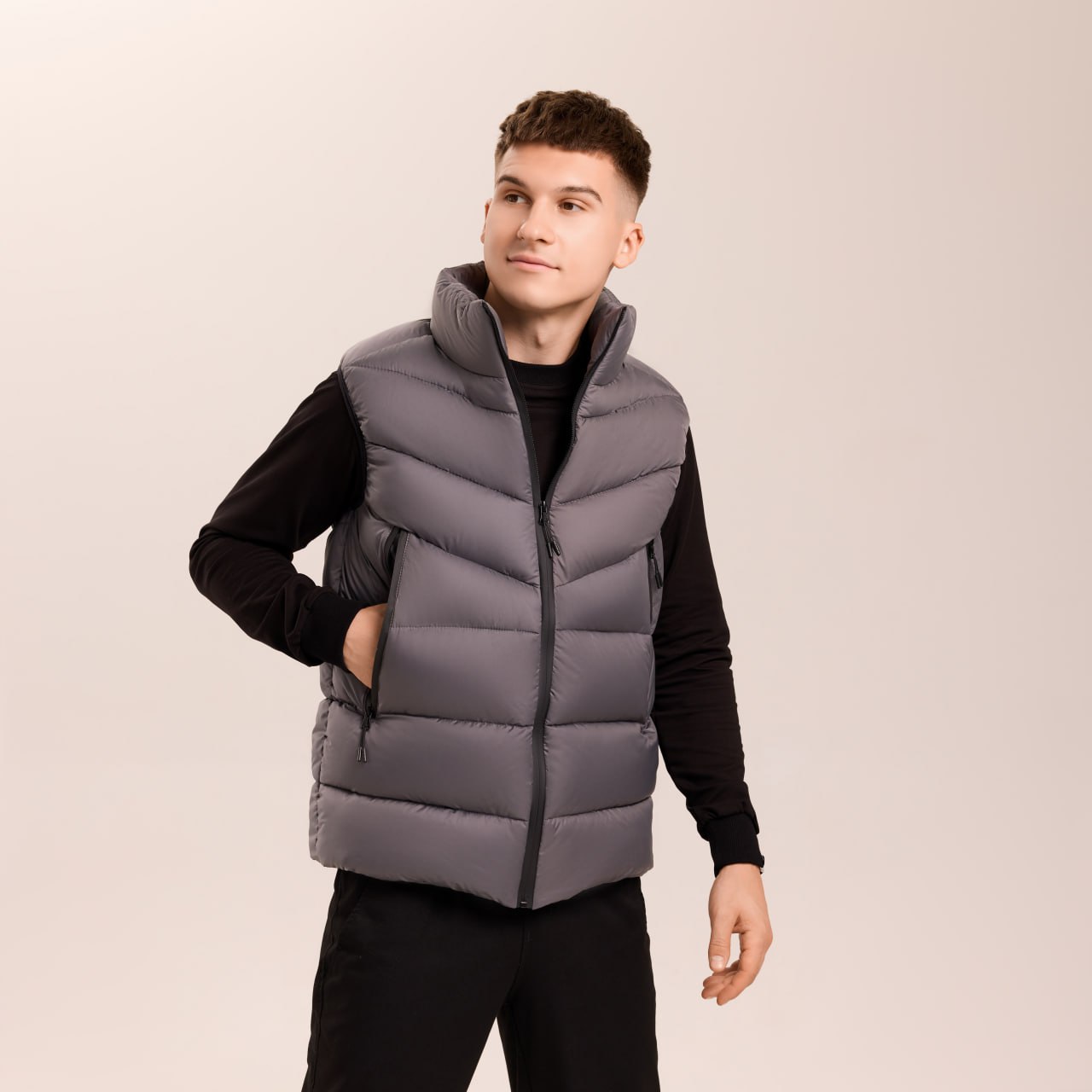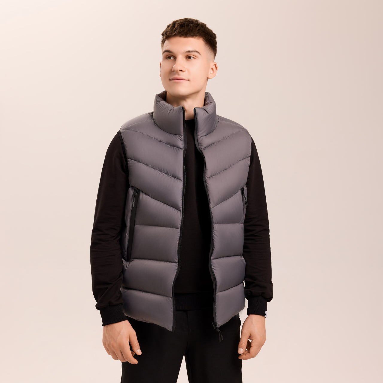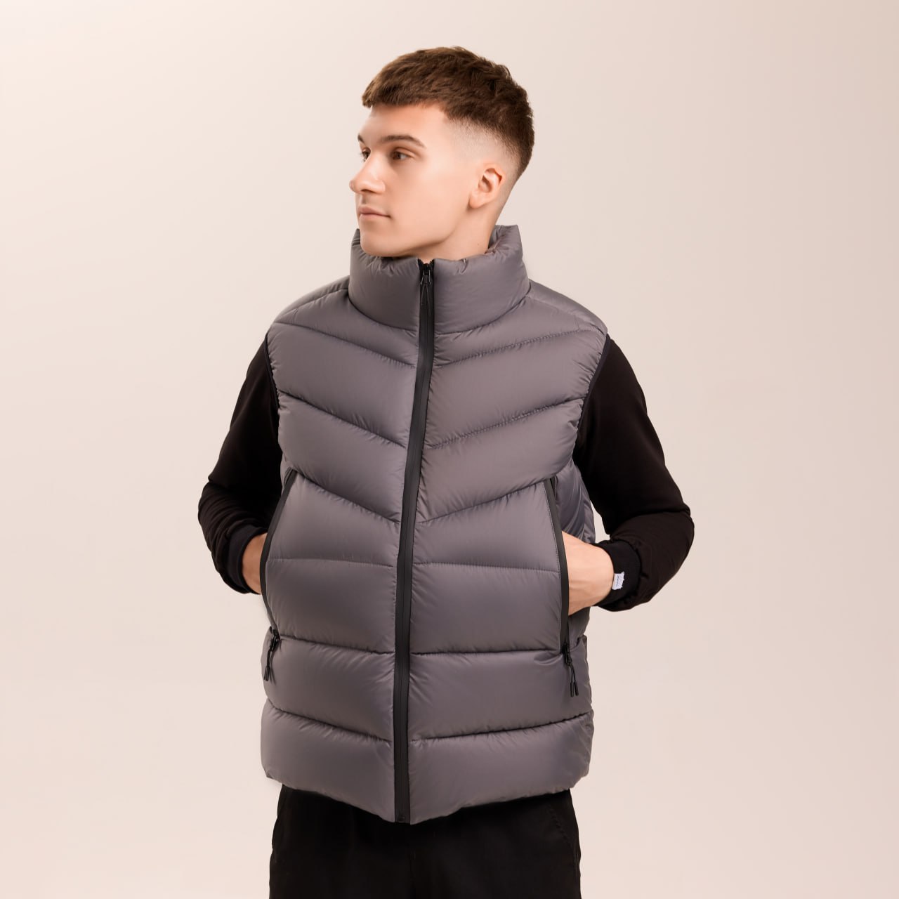 Чоловіча Темно-Сіра Жилетка Безрукавка – Стьобана Дута на Блискавці з Високою Горловиною