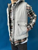 Чоловіча Жилетка Сірого Колір Прямого Крою – Базова з Капюшоном та Накладними Кишенями